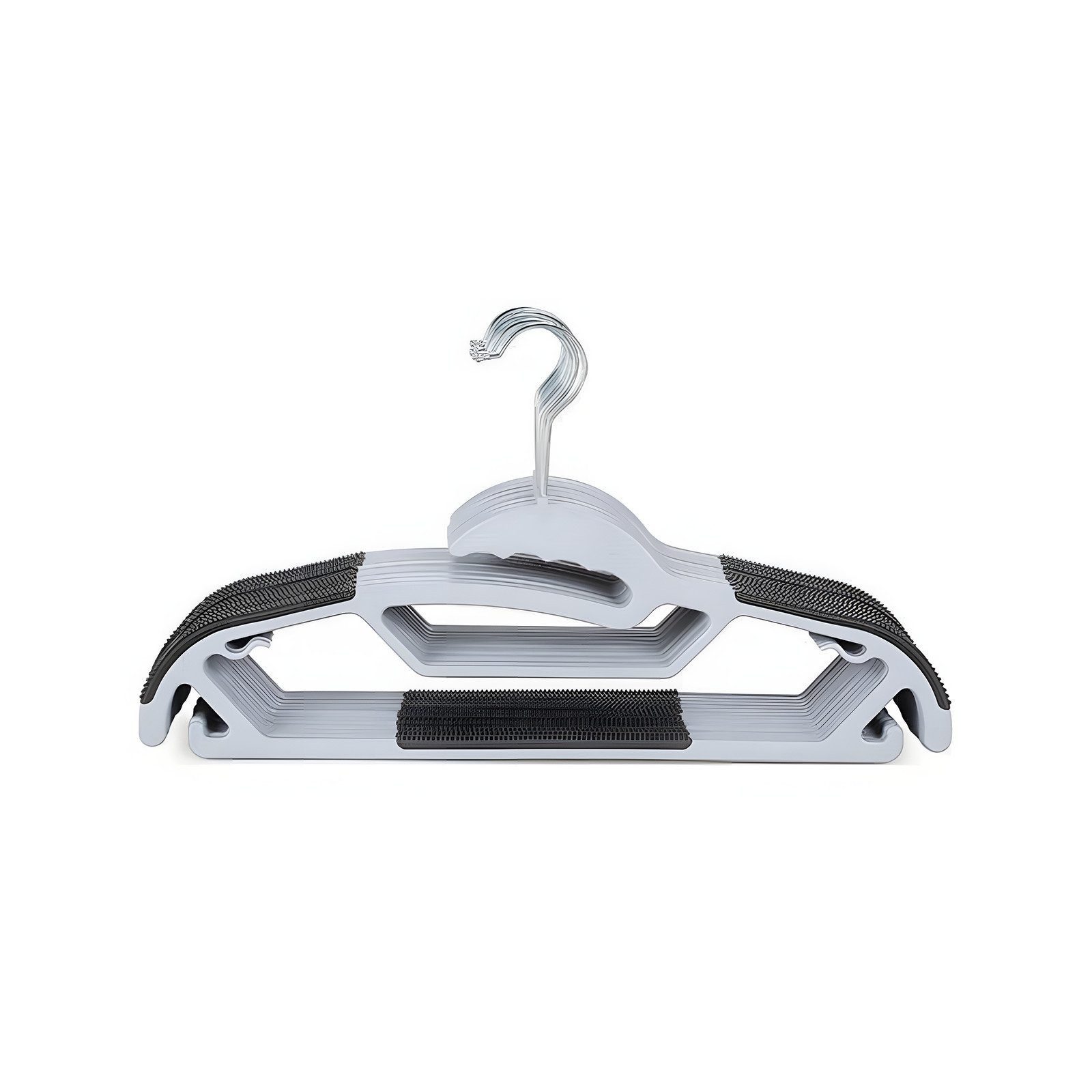 Rutschfeste Gummigriffe an den Schultern und der Hosenleiste sorgen dafür, dass Hemden, Blazer, Hosen und mehr an ihrem Platz bleiben und nicht verknittern.