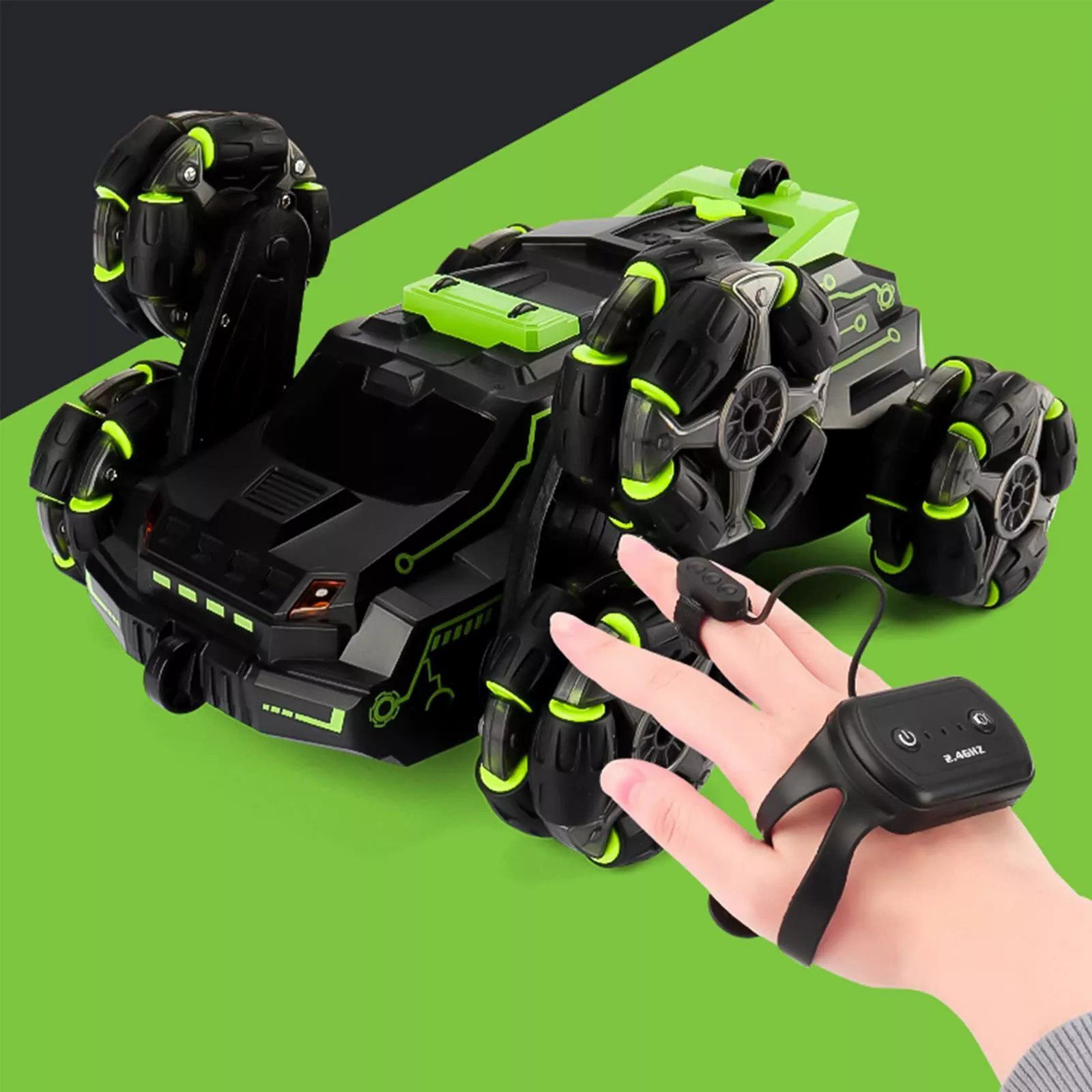 Steuern Sie das Fahrzeug klassisch per 2,4-GHz-Controller oder modern mit Gestensteuerung durch Handbewegung.