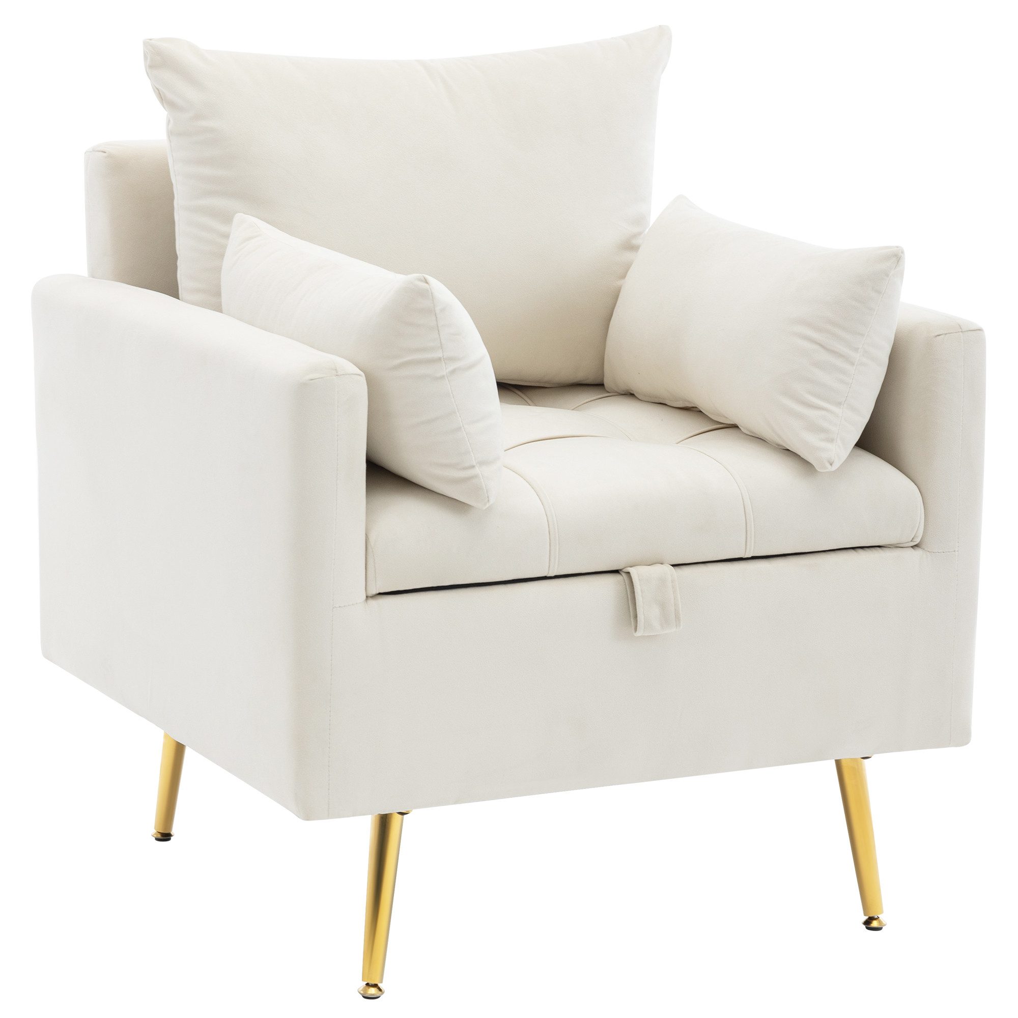 Unter dem Sitzkissen verbirgt sich ein großer Stauraum, ideal für die Aufbewahrung von Zeitschriften, Puppen, oder anderen kleinen Gegenständen. Dieser versteckte Stauraum sorgt dafür, dass Ihr Raum stets aufgeräumt bleibt und Sie Ihre Sachen griffbereit haben, ohne den Platz zu überladen.