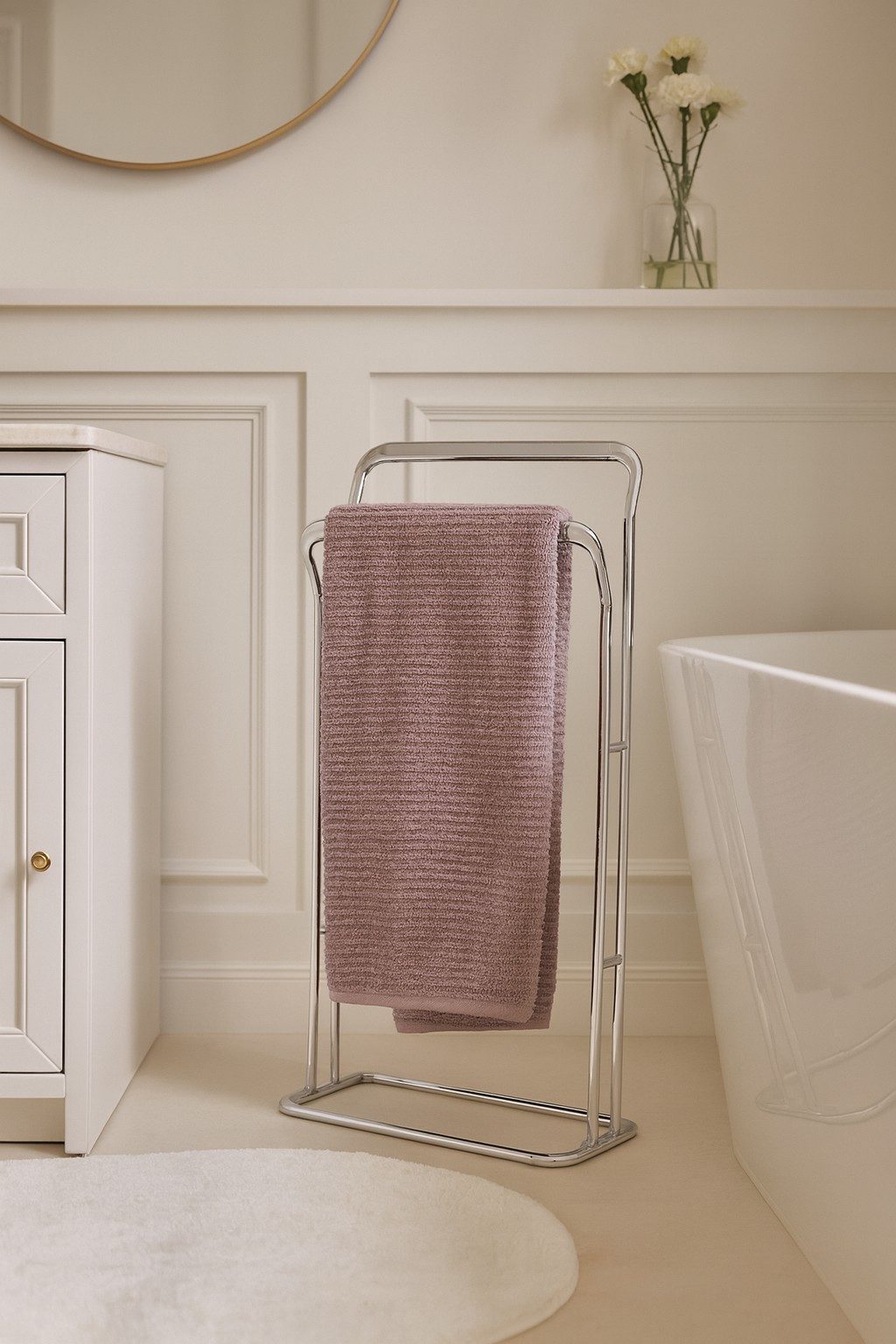 Praktischer Handtuchhalter mit zwei unterschiedlich hohen Stangen – ideal, um mehrere Handtücher griffbereit und platzsparend aufzubewahren. Das stabile Stahlrohr mit glatter, pflegeleichter Oberfläche ist in edlem Chrom gehalten und passt in jedes Badezimmer.