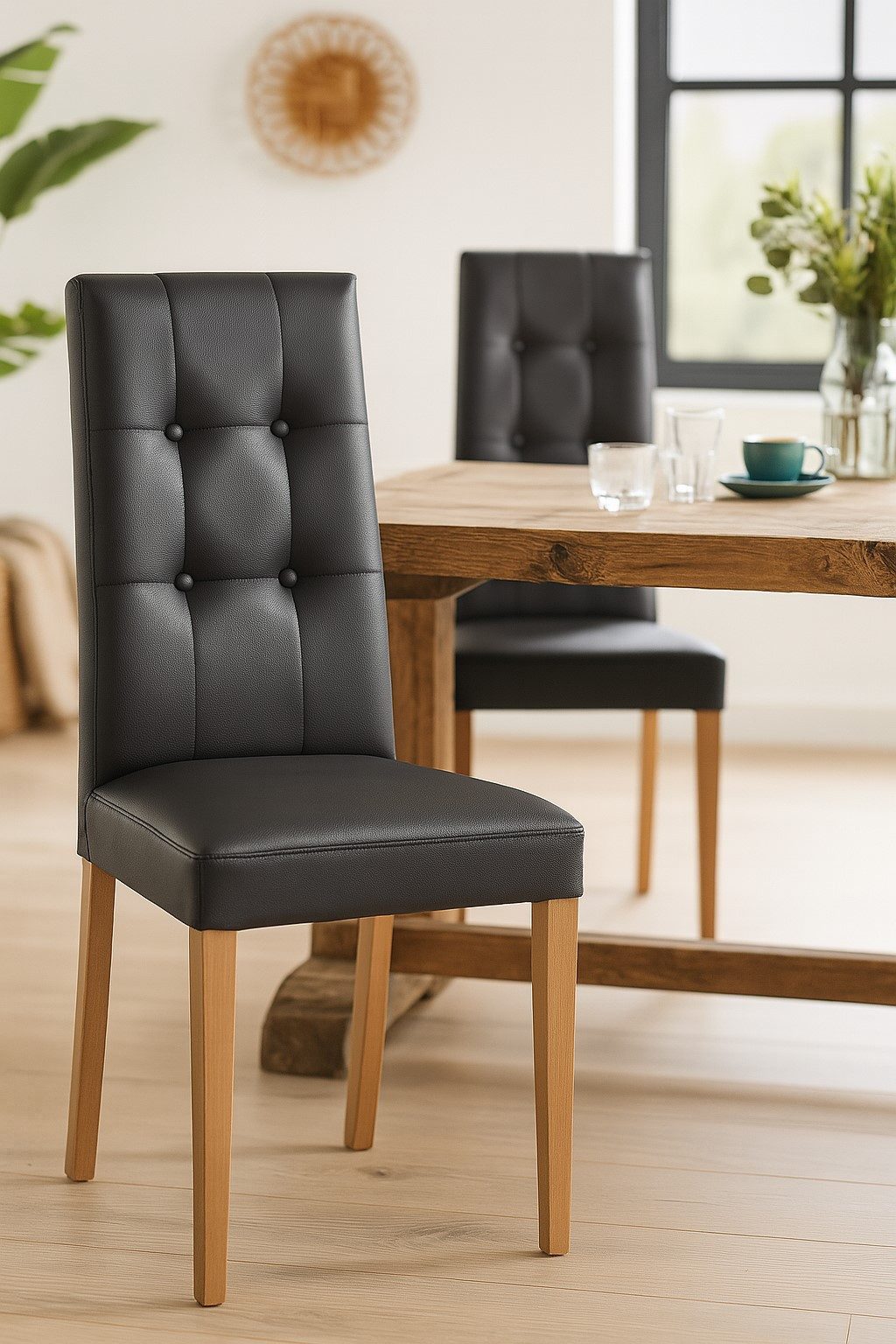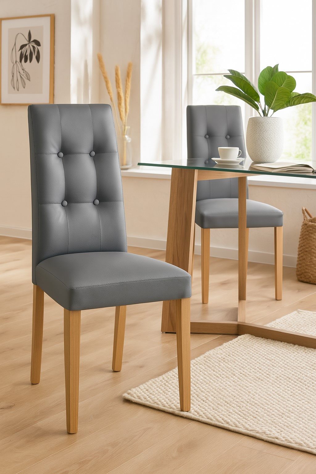 Ob im Esszimmer, in der Küche oder im Wohnbereich – dieses Stuhlset ist vielseitig einsetzbar und ein stilvoller Blickfang in jedem Raum.