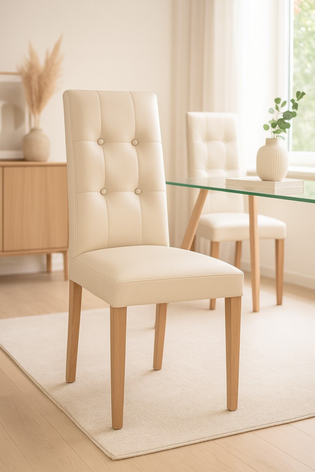 Dieses elegante Stuhl-Set (2 Stück) vereint hochwertige Materialien mit modernem Design. Die Stühle sind mit einem strapazierfähigen Kunstlederbezug (100 % Polyvinylchlorid) ausgestattet und in den Farben Schwarz, Grau, Beige oder Braun erhältlich – passend für jeden Wohnstil.