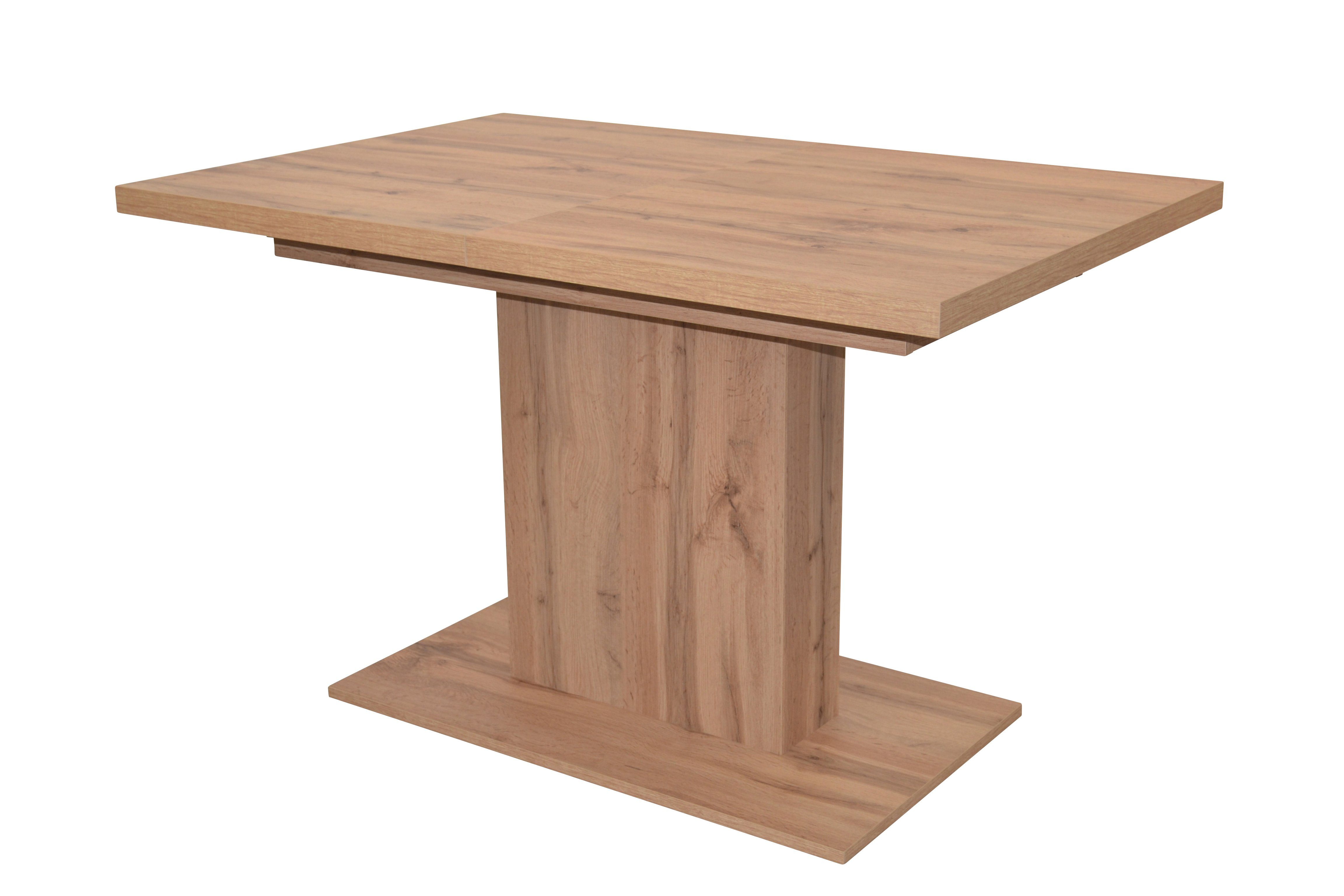 Moderner Esstisch mit Auszugsfunktion (120 bis 160 cm) komplett aus Holzwerkstoff (Melaminplatten) gefertigt und mit einem pflegeleichten, glatten Maleminholzdekor, beschichtet. Die Tischplatte ist in der Mitte geteilt und lässt sich einfach und schnell dank der hochwertigen Metalllaufschienen auseinander ziehen. Darunter eingelegt ist eine ca. 40 cm breite Einlegeplatte, die sich dazwischen einlegen lässt und der schöne Esstisch ist einfach und schnell um 40 cm vergrößert auf eine Gesamtlänge von 160 cm. Lieferbar in drei aktuellen Farbdekoren. Lieferung vom Esstisch erfolgt zur Selbstmontage, inklusive Aufbauanleitung. Maße ca. cm: (B/H/T) 120-160/75/80