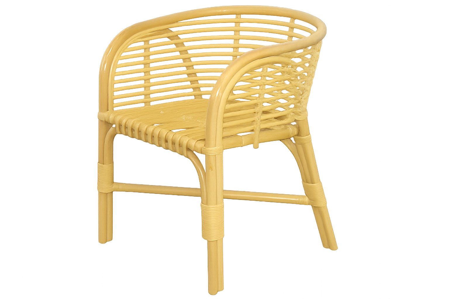 Dieser elegante Rattansessel überzeugt durch seine hochwertige Handarbeit und sein natürliches Design. Komplett aus Rattanrohr gefertigt, wurde der Sessel in Beize beigefarben lackiert und mit einem leichten Schutzlack versehen.