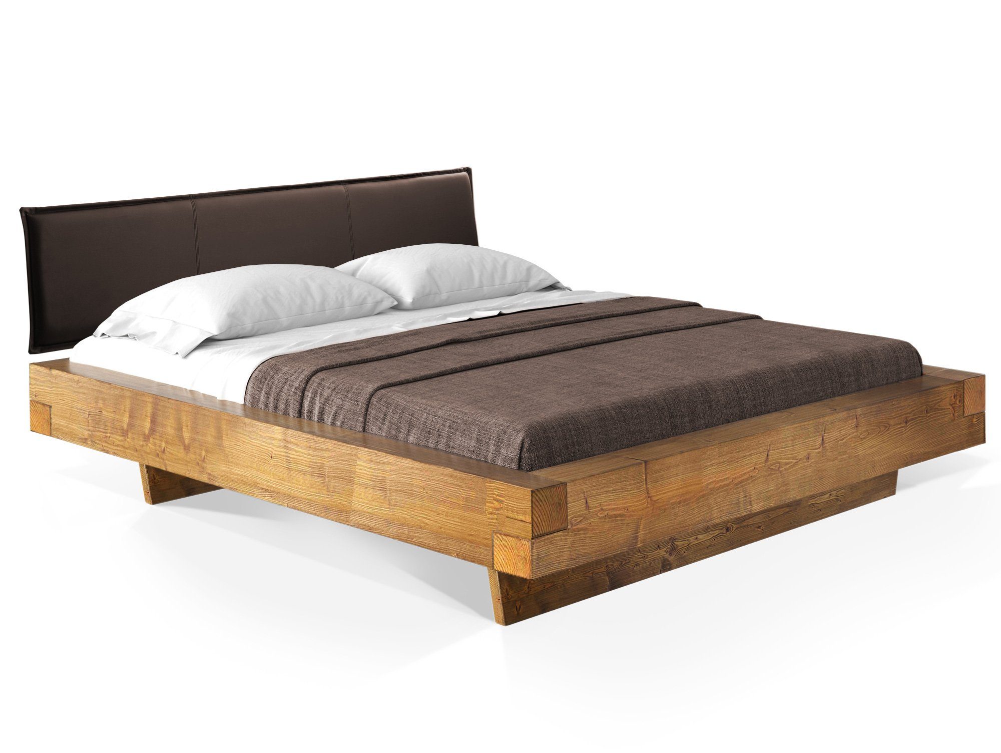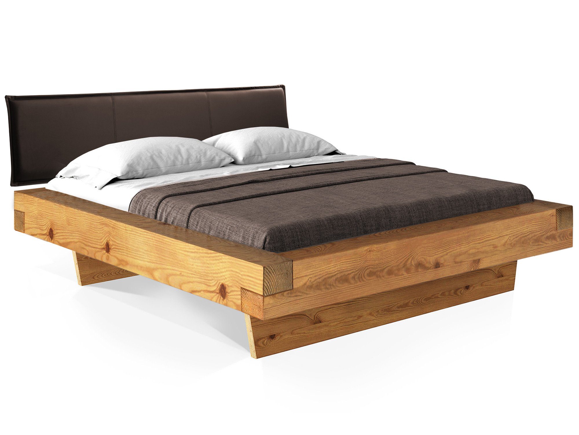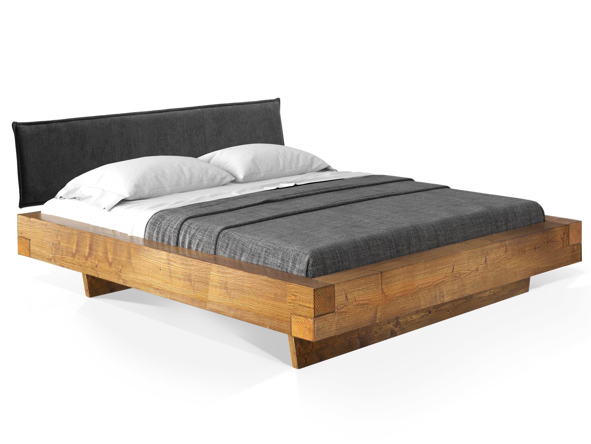 Maße - Fußhöhe:20cm - Einlegetiefe:14cm - Bettrahmenhöhe:36cm - Seitenteilhöhe:16cm - Balkenstärke:16 x 9 cm - Kopfteilhöhe:43cm - Höhe:79cm Design - Holzausführung:Fichte - Holz als Naturprodukt - Risse und Äste sind gewollt - Altholz-Optik - sieht aus wie 100 Jahre gelagertes Holz - Moderner Wangenfuß Eigenschaften - Wir verwenden lösungsmittelfreie Lacke auf Wasserbasis - Schwebende Optik - THERMO-Fichte:;In speziell entwickeltem Verfahren wird das Fichtenholz mit großer Hitze gedämpft und gleichzeitig getrocknet;Komplett ohne chemische Zusätze;100% biologisch; Holz wird durch das THERMO-Verfahren wesentlich härter - Scheuerbeständigkeit:;Kunstleder: >100.000 Scheuertouren;Strukturstoff: 30.000 Scheuertouren - Für Rollroste und Lattenroste mit festem Rahmen geeignet;Auflageleisten Lattenrost: 2.5 x 2.5 cm - Aus eigener Schreinerei - Holz stammt nur aus umliegenden Sägewerken in Bayern - Komforthöhe:Nein Ausstattung - Mit gepolstertem Kopfteil Qualität - Hochwertige Qualität - Made in Germany - Aus eigener Produktion - Material:Massivholz - Oberflächenbehandlung:Gebürstet / Lackiert Lieferumfang - Mit leicht verständlicher Aufbauanleitung - Ohne Lattenrost und Matratze - 1x Bettgestell - 1x Kopfteil Lieferzustand - Montage:Einfache und schnelle Selbstmontage - Montage:Zerlegt Farben - Farbe:Fichte