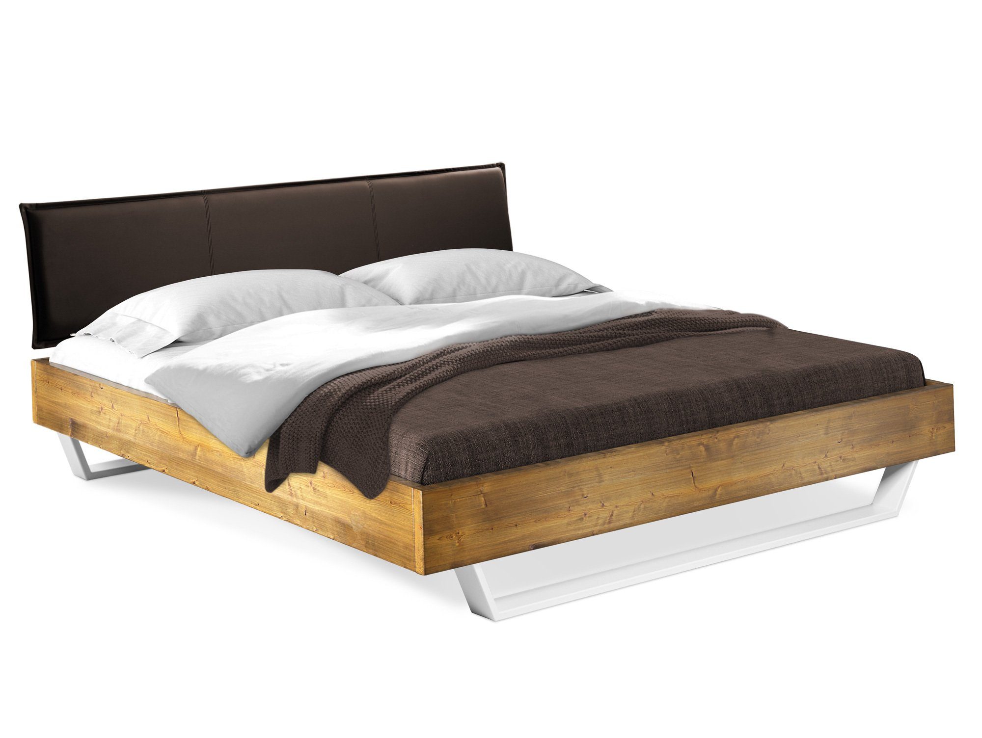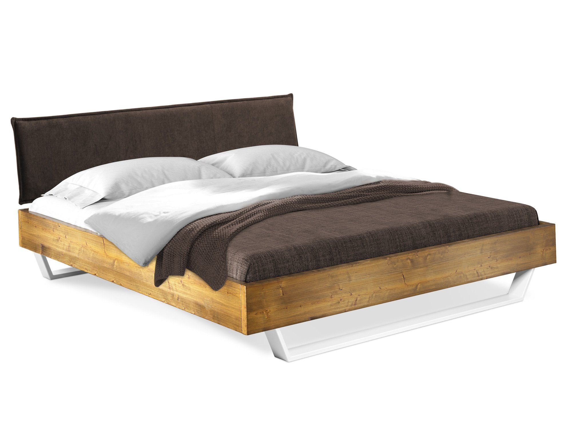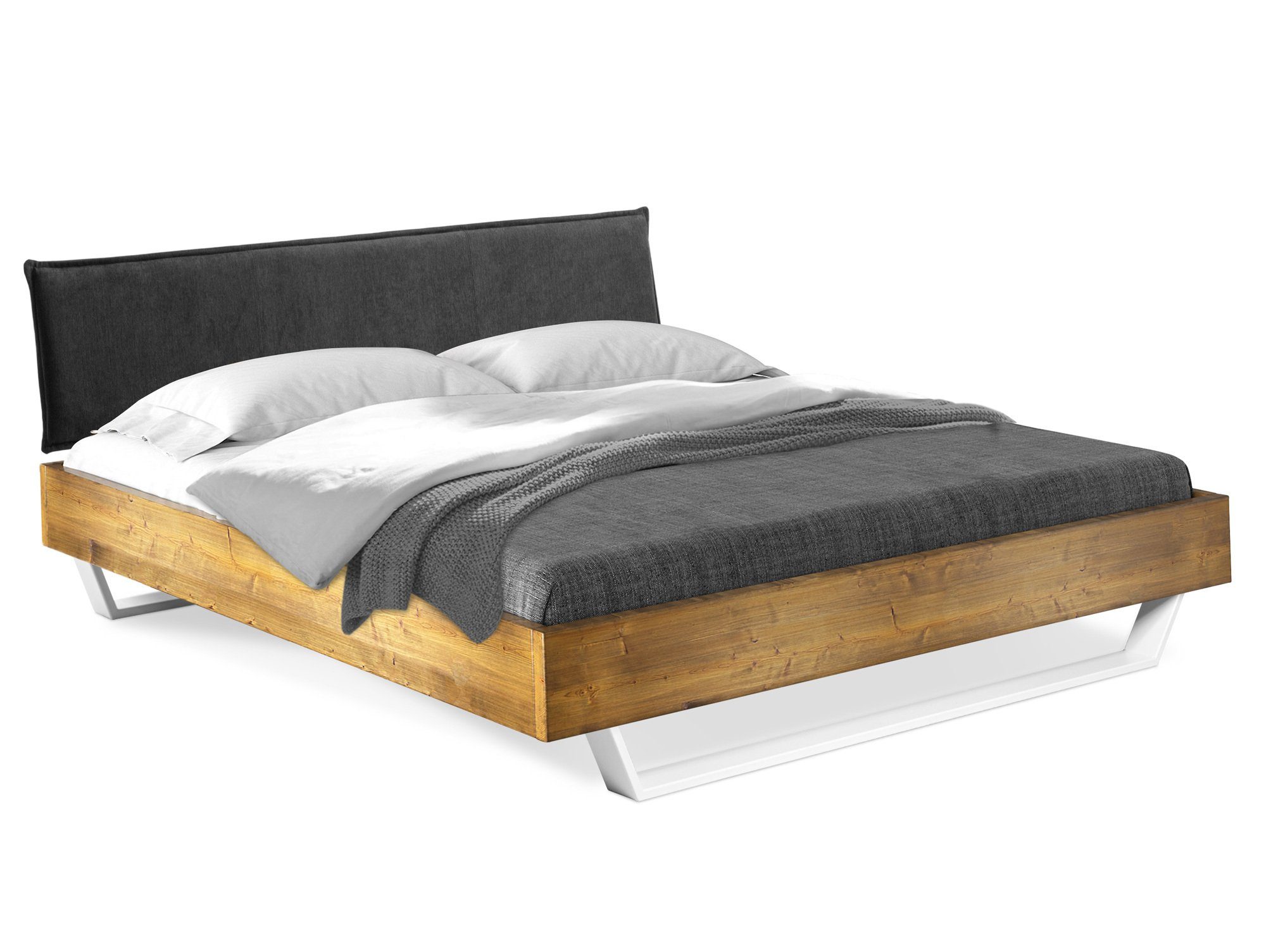 Maße - Seitenteilhöhe:20cm - Einlegetiefe:18cm - Kopfteilhöhe:43cm - Materialstärke:3.5cm - Bettrahmenhöhe:40cm - Fußhöhe:20cm - Fußdicke:8 x 2cm - Höhe:83cm Design - Holzausführung:Fichte - Moderner Kufenfuß, weiß matt lackiert - Holz als Naturprodukt - Risse und Äste sind gewollt - Altholz-Optik - sieht aus wie 100 Jahre gelagertes Holz - Farbe Füße:Weiss Eigenschaften - Holz aus nachhaltigem Anbau - Passende Auflageleisten für Rollroste unter Zubehör bestellbar - Wir verwenden lösungsmittelfreie Lacke auf Wasserbasis - Holz stammt nur aus umliegenden Sägewerken in Bayern - THERMO-Fichte:;In speziell entwickeltem Verfahren wird das Fichtenholz mit großer Hitze gedämpft und gleichzeitig getrocknet;Komplett ohne chemische Zusätze;100% biologisch; Holz wird durch das THERMO-Verfahren wesentlich härter - Scheuerbeständigkeit:;Kunstleder: >100.000 Scheuertouren;Strukturstoff: 30.000 Scheuertouren - Einlegetiefe 4-fach verstellbar (18 / 16 / 13.5 / 11 cm) Ausstattung - Polsterkopfteil - Ab der Размер 140x200 cm mit Mittelsteg Qualität - Made in Germany - Aus eigener Produktion - Hochwertige Qualität - Oberflächenbehandlung:Gebürstet - Material:Massivholz - Oberflächenbehandlung:Lackiert Lieferumfang - Mit leicht verständlicher Aufbauanleitung - Ohne Lattenrost und Matratze - 1x Massivholzbett - 1x Polster-Kopfteil Lieferzustand - Montage:Zerlegt - Montage:Leichte und schnelle Selbstmontage Farben - Farbe:Weiss - Farbe:Fichte
