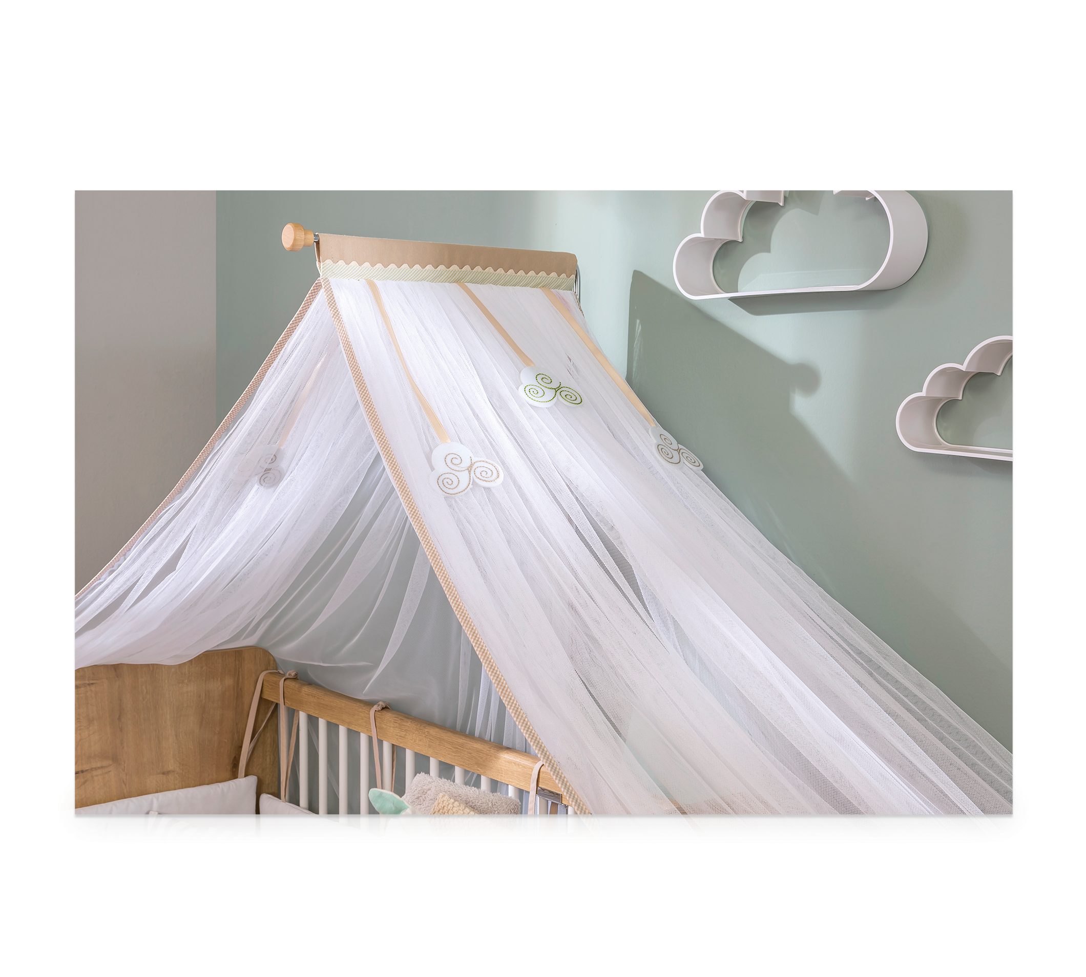 Wie ein zarter Schleier, von Waldgeistern gewebt und mit glücklichen Wünschen bestückt, schützt dieser Betthimmel die Kleinsten während der Nachtruhe.