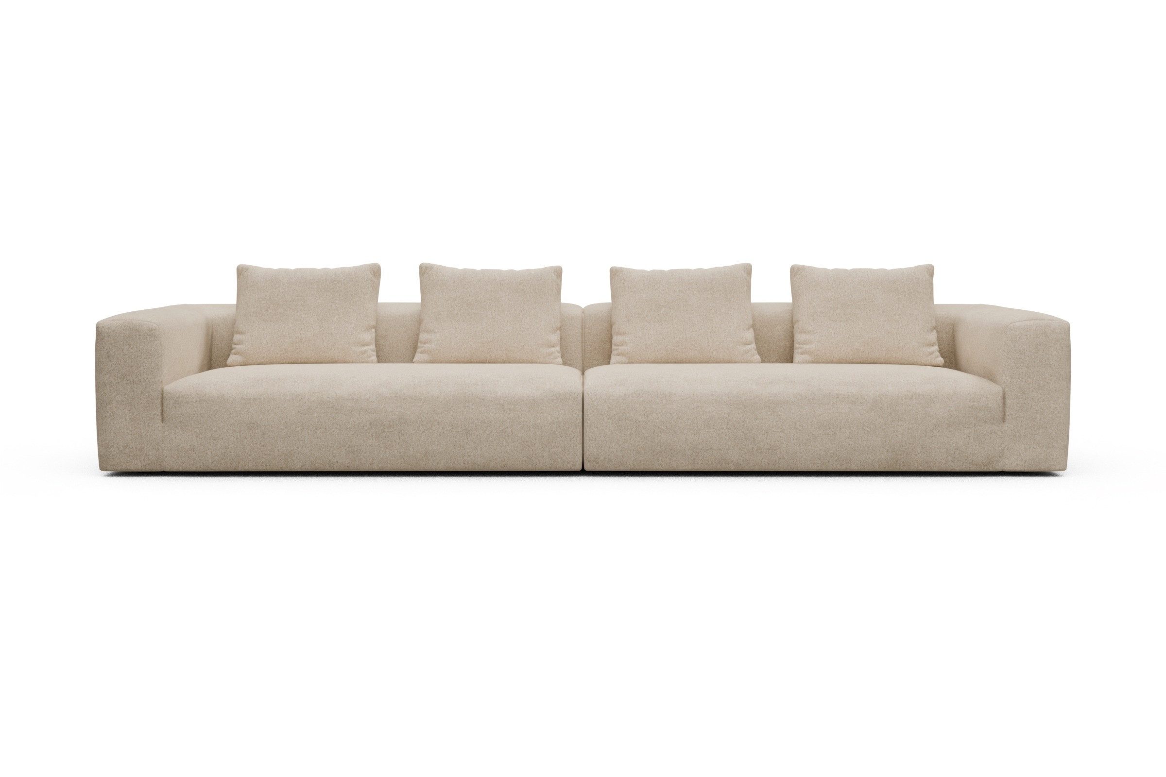 Groß, gemütlich, genial – das Fred Modular XXL Sofa ist nicht einfach nur ein Möbelstück, sondern eher wie ein guter Freund mit XXL-Format. Mit einer Gesamtbreite von 386 cm lädt es zum Lümmeln, Serienmarathon oder spontanen Powernap ein – und zwar nicht alleine: Fünf Sitzflächen warten darauf, gemeinsam erobert zu werden.