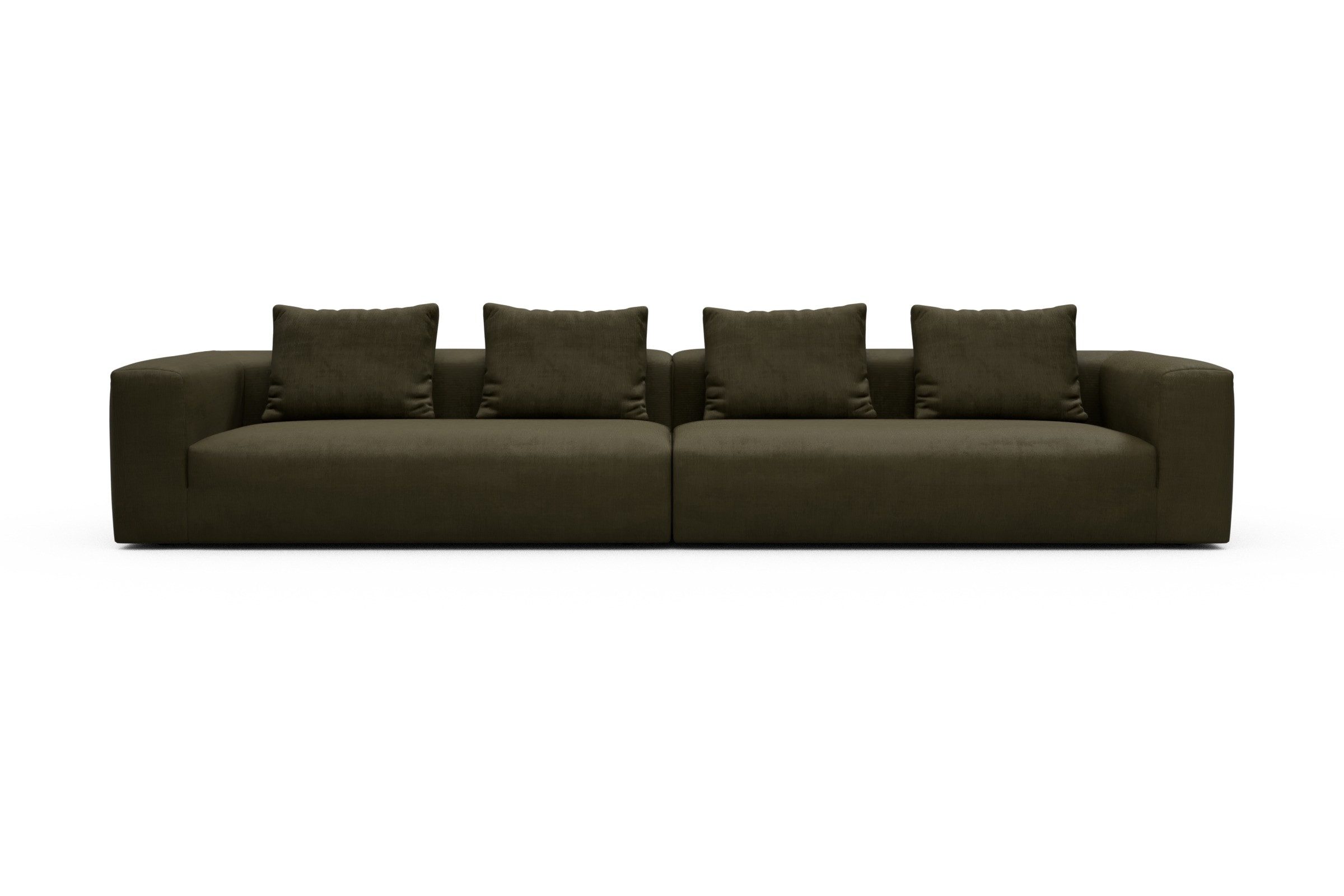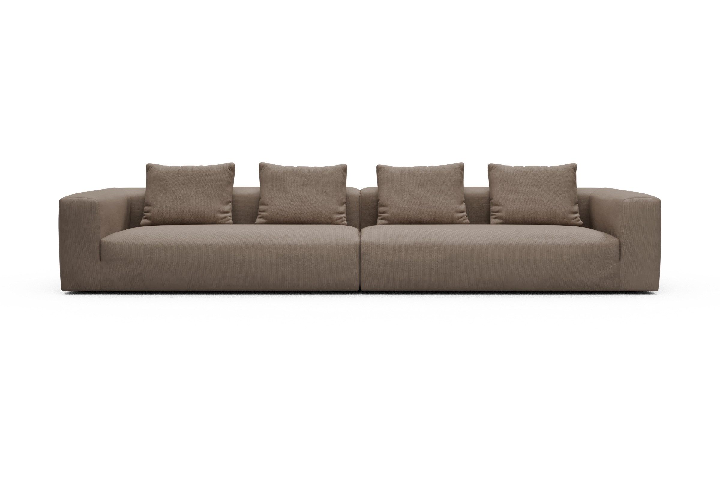 Materialhinweis | Tiefe Proportionen, hohe Rückenkissenoption, modulare Ausführung |