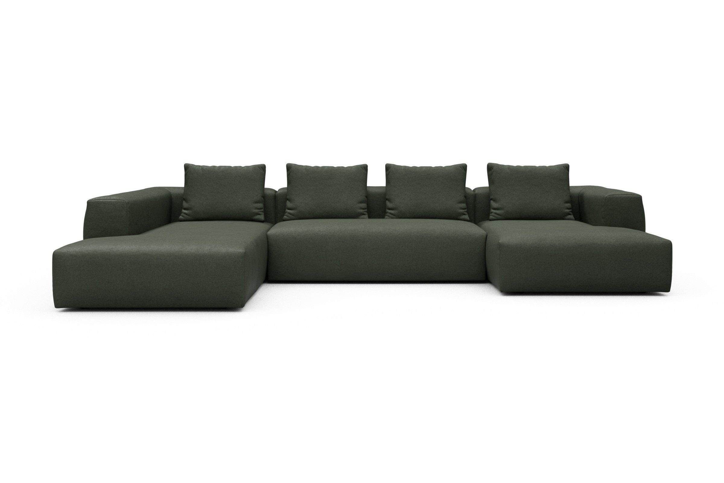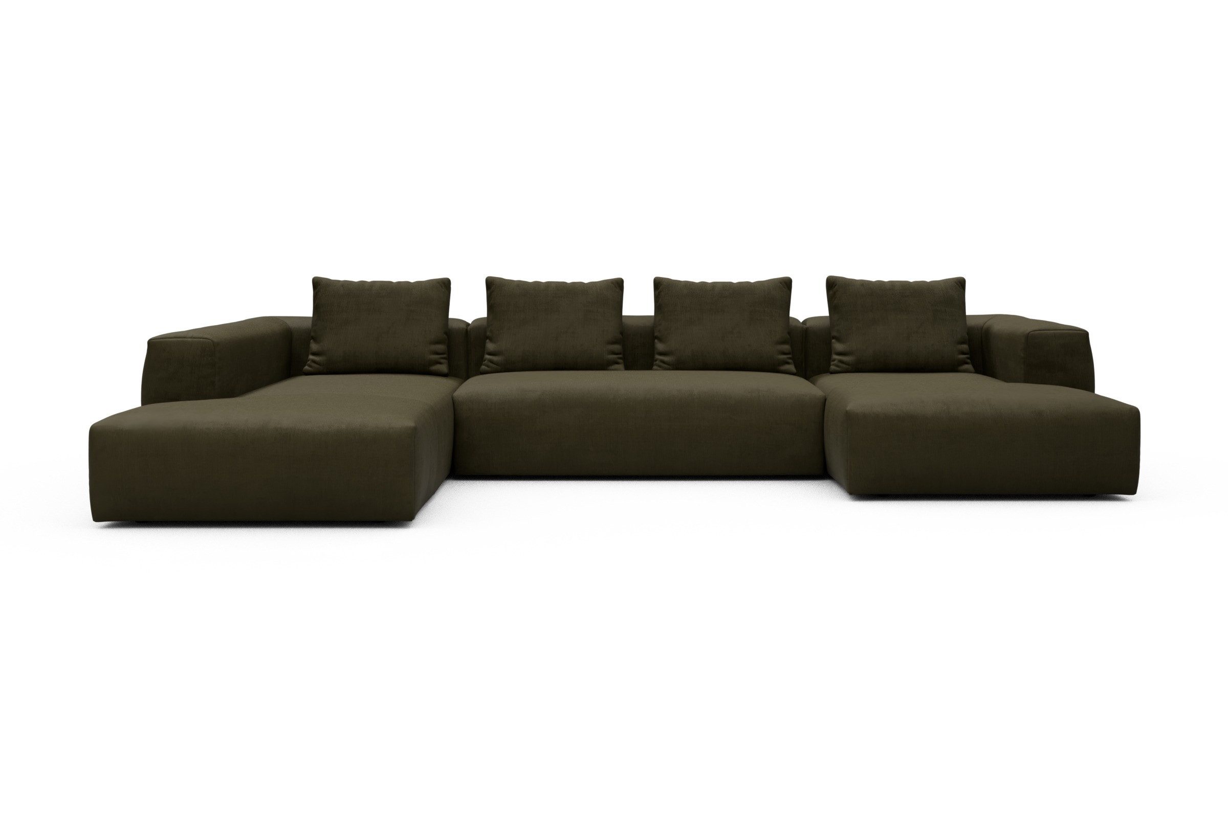 Materialhinweis | Tiefe Proportionen, hohe Rückenkissenoption, modulare Ausführung |