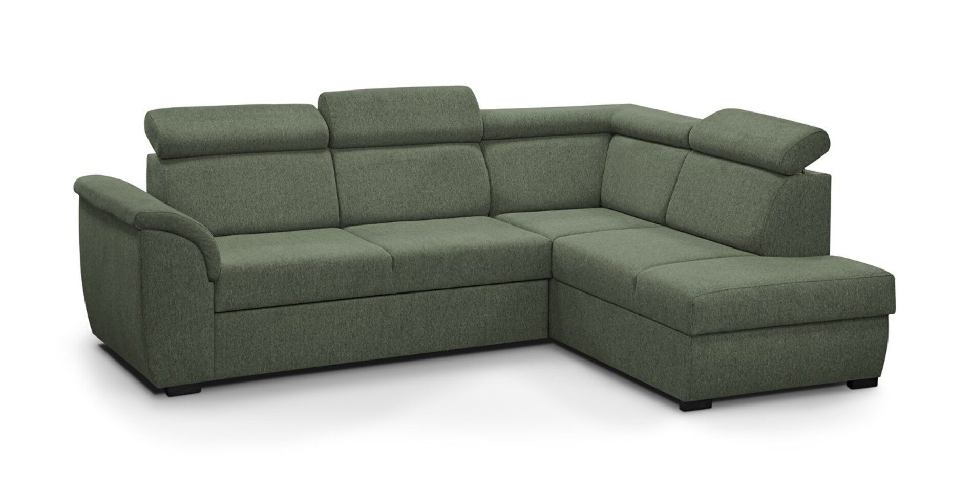 Das moderne Ecksofa MODENA mit einer hohen, bequemen Armlehne und verstellbaren Kopfstützen bietet einen hohen Komfort. Das vorgeschlagene Ecksofa verfügt über einen Sitz aus hochwertigem C30/40-Schaumstoff, der von einer gewellten Feder unterstützt wird, und eine bequeme Rückenlehne. Unter einem Teil des Möbels befindet sich ein Bettzeugbehälter und ein Klappmechanismus für unerwartete Gäste mit einer Liegefläche von 193 cm x 124 cm.