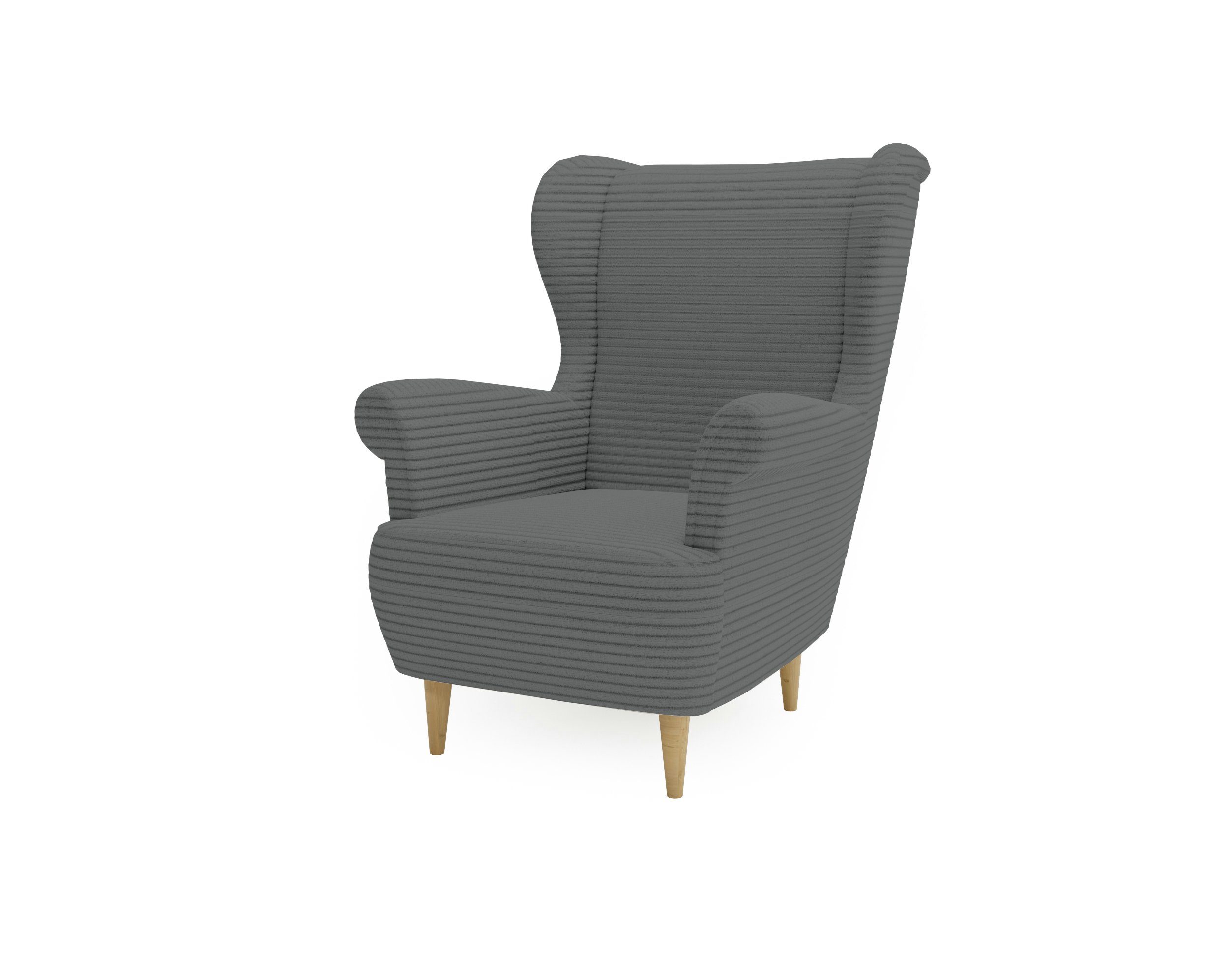 Der bequeme Ohrensessel, bezogen mit Cordstoff, ist der ideale Ruhepol im täglichen Trubel. Auf soliden, hohen Beinen aus Naturholz stehend, bringt er eine Brise Frische in jeden Raum und erleichtert die Sauberhaltung darunter. Seine Farbpalette reicht von eleganter Grautönen bis zu sanften Pastellfarben, was eine perfekte Integration in jede Wohnraumgestaltung ermöglicht. Dieser Ohrensessel ist die ideale Lösung für all jene, die nach häuslicher Entspannung suchen - er bietet Weichheit und Unterstützung, die zum Eintauchen mit einem guten Buch oder einer Tasse Tee einladen. Mit ihm kann jeder seine eigene Komfortzone genießen und den täglichen Stress abbauen. Stellen Sie sich vor, wie dieser Sessel eine gemütliche Ecke in Ihrem Zuhause schafft, indem er nicht nur Bequemlichkeit bietet, sondern auch Charme zu Ihrer Inneneinrichtung hinzufügt.
