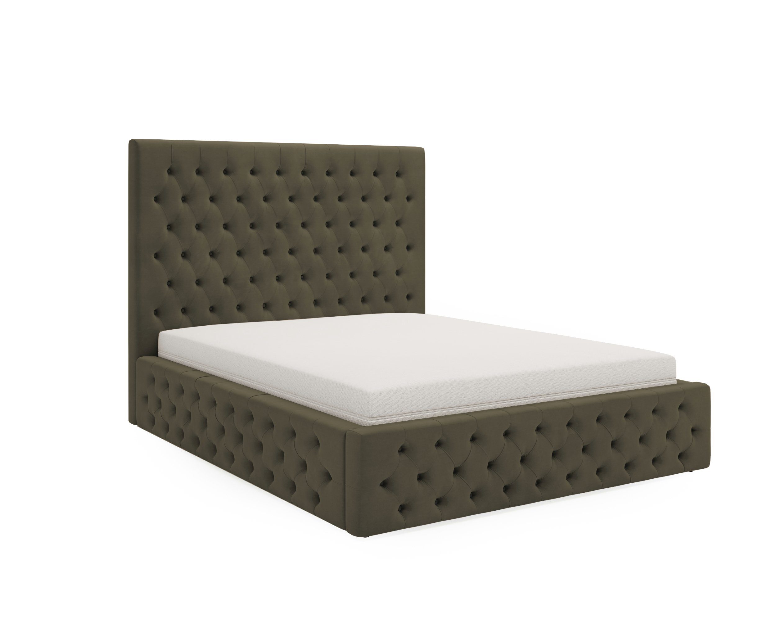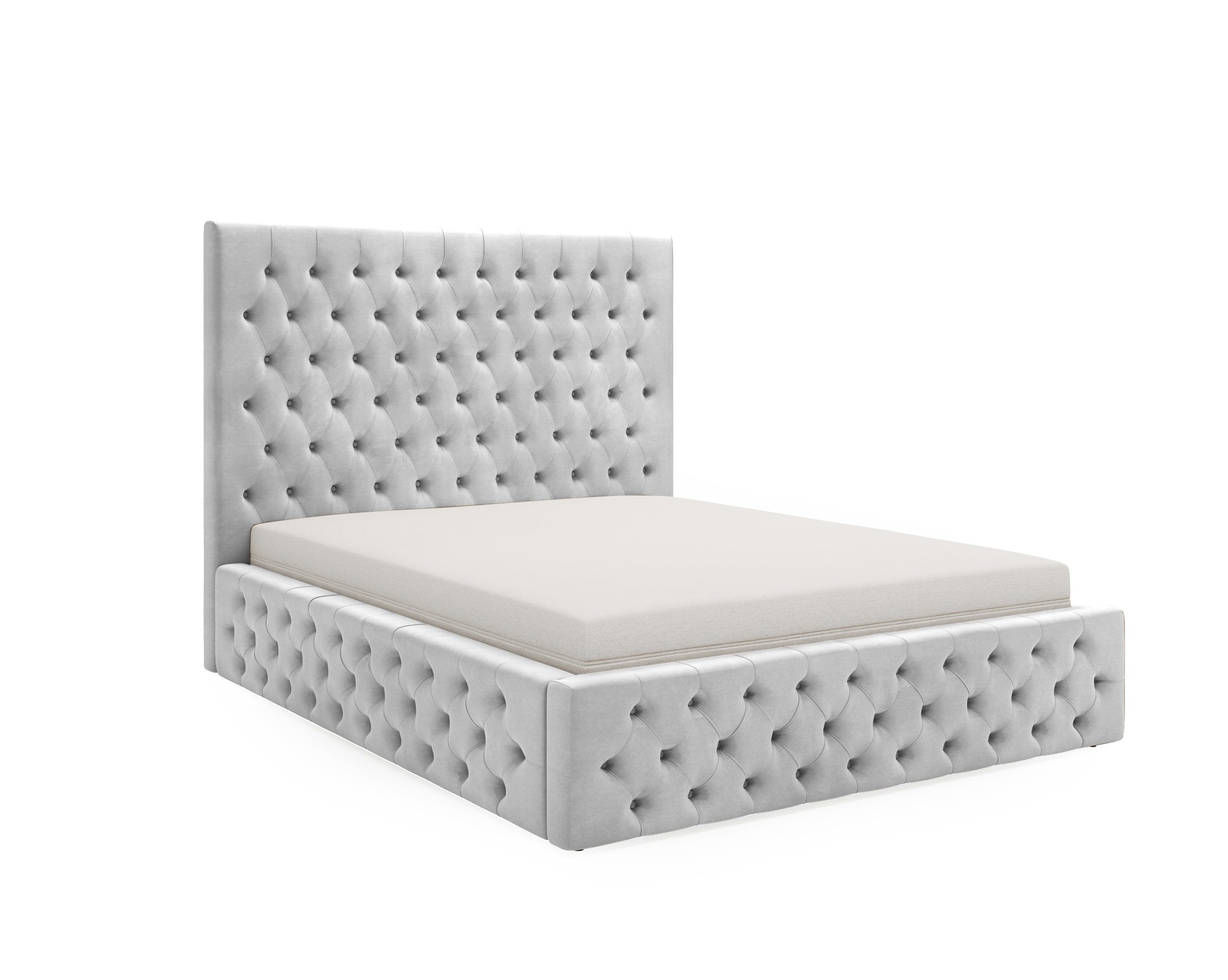 Das Jones-Bett im Chesterfield-Stil ist die Quintessenz von Klassik und Komfort. Es zeichnet sich durch ein elegantes, hohes Kopfteil mit charakteristischer Knopfheftung aus, die jedem Innenraum einen luxuriösen Charakter verleiht. Der praktische Bettkasten bietet zusätzlichen Stauraum, was besonders nützlich ist, um Ordnung zu halten. Die Verfügbarkeit in vier Größen und eine breite Farbpalette ermöglichen eine perfekte Anpassung an jedes Schlafzimmer, von modern bis traditionell. Ein Jones-Bett zu besitzen bedeutet nicht nur Schlafkomfort, sondern auch eine erhebliche Erleichterung des täglichen Lebens, die zu einer besseren Raumorganisation beiträgt. Stellen Sie sich vor, wie es in Ihrem Zuhause aussehen würde, wo es zum Mittelpunkt des Schlafzimmers wird und jede Nacht einen ruhigen Schlaf gewährleistet.