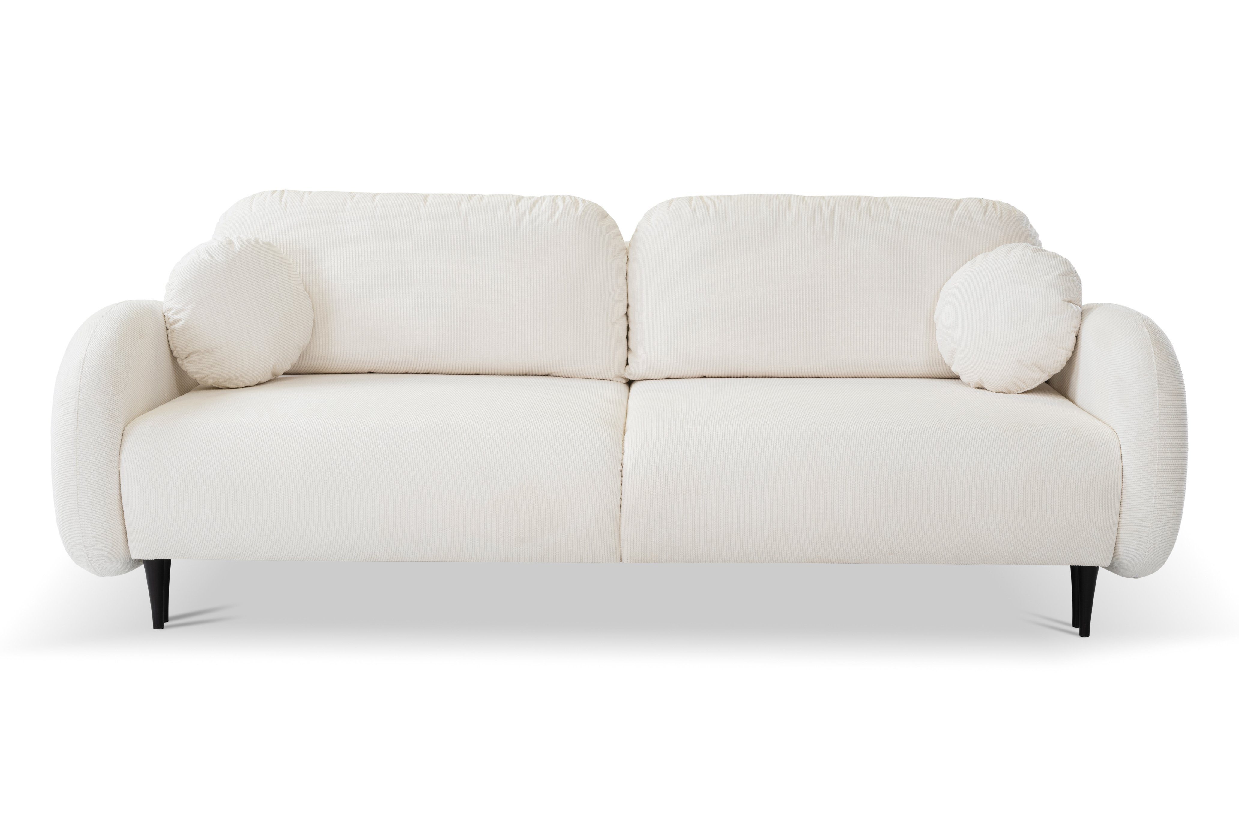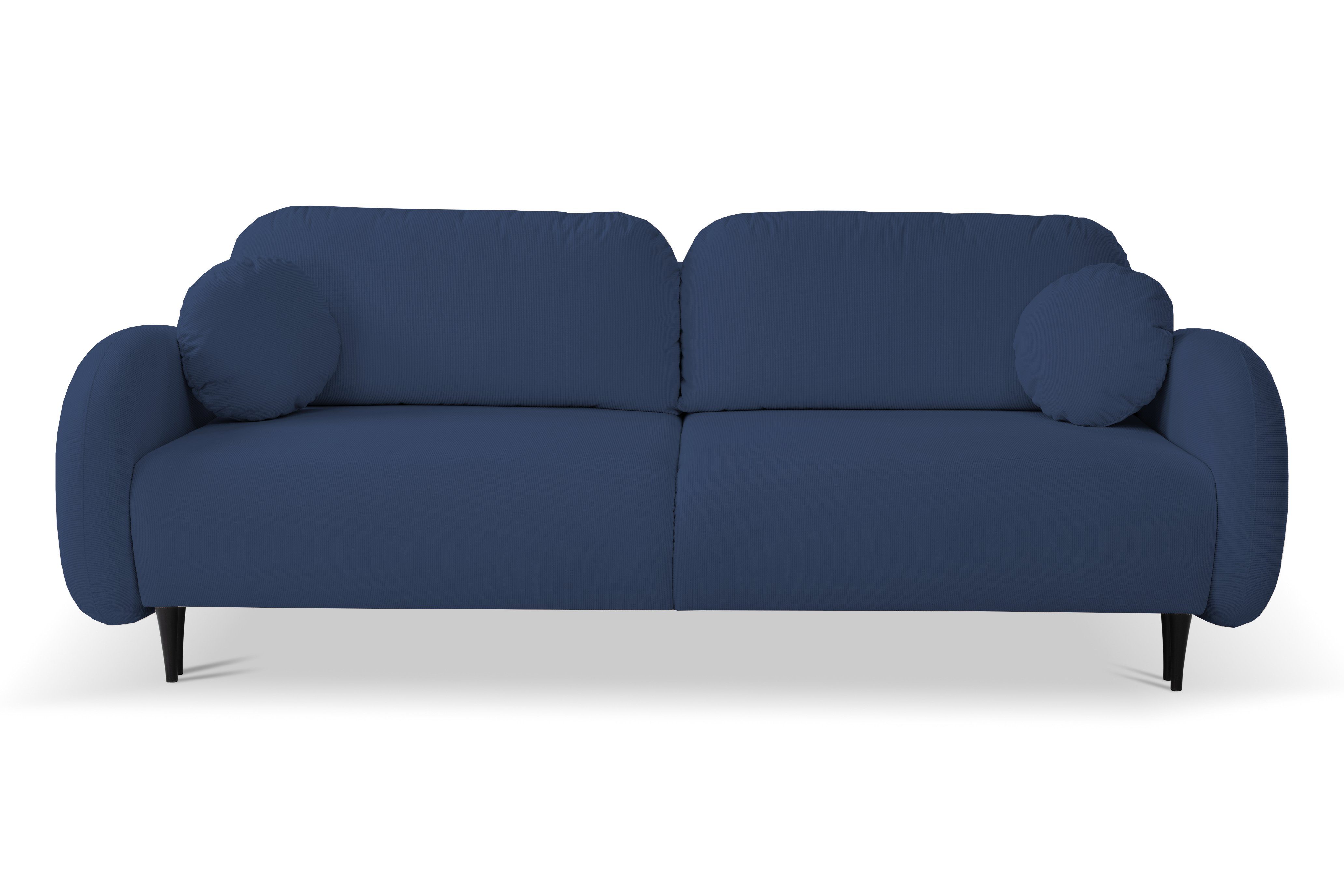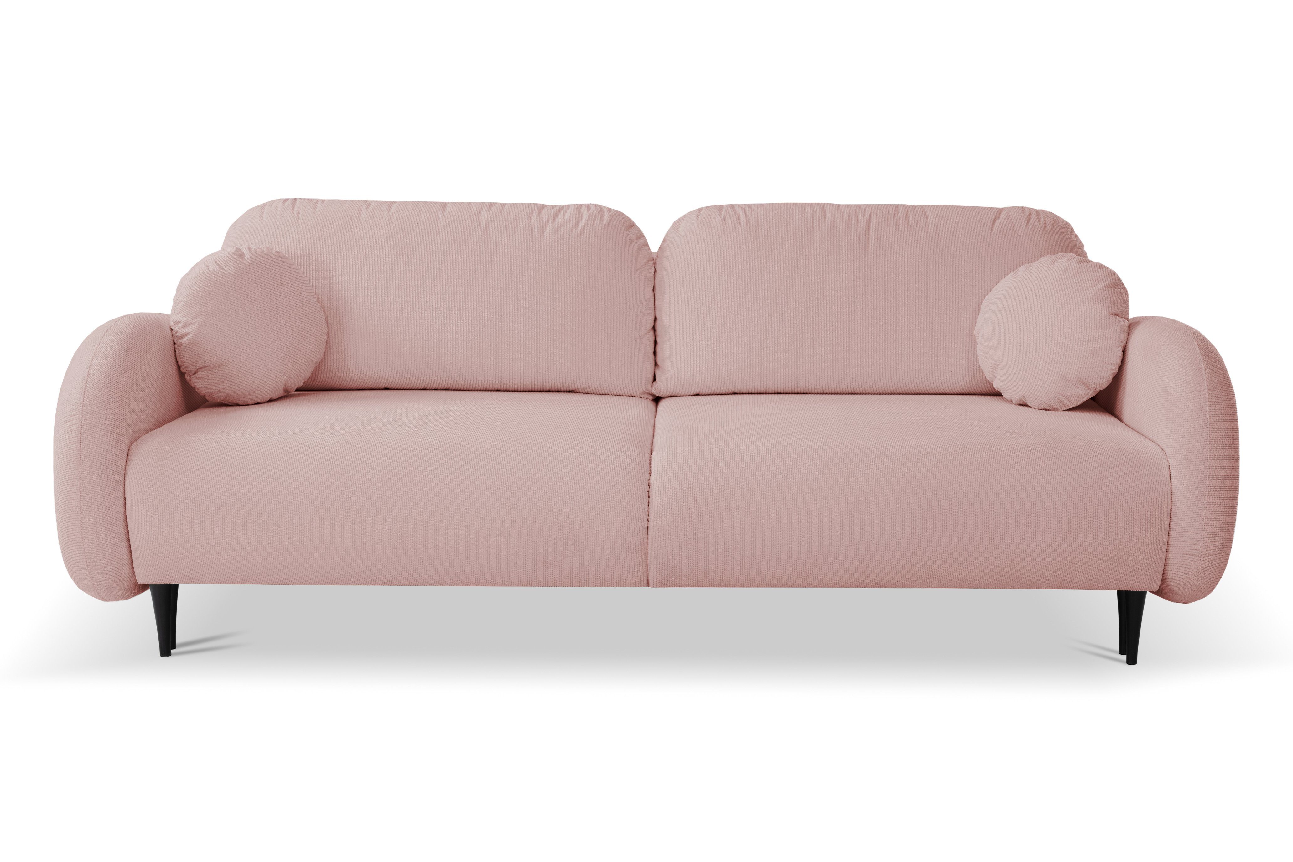 Das Designersofa PUCH mit seiner abgerundeten Form ist ein Möbelstück mit einzigartigem Charakter. Sein dezentes Design, die abgerundeten Armlehnen und die weichen Kissen laden zu langen Stunden der Entspannung ein. Das Sofa Puch hat eine solide Konstruktion aus Holz und Spanplatten, seine Füllung besteht aus federndem und bestem PUR-Schaum und Wellenfedern, und seine Stabilität wird durch Holzbeine verstärkt, die auch eine schöne Dekoration sind - sie verleihen Leichtigkeit und Charme im Scandi-Stil. Außerdem verfügt das Sofa über ein packbares Bettzeugfach und die Möglichkeit, es auszuklappen, und die Schlaffunktion ist dank der klappbaren Stützmechanismen sehr einfach zu bedienen.