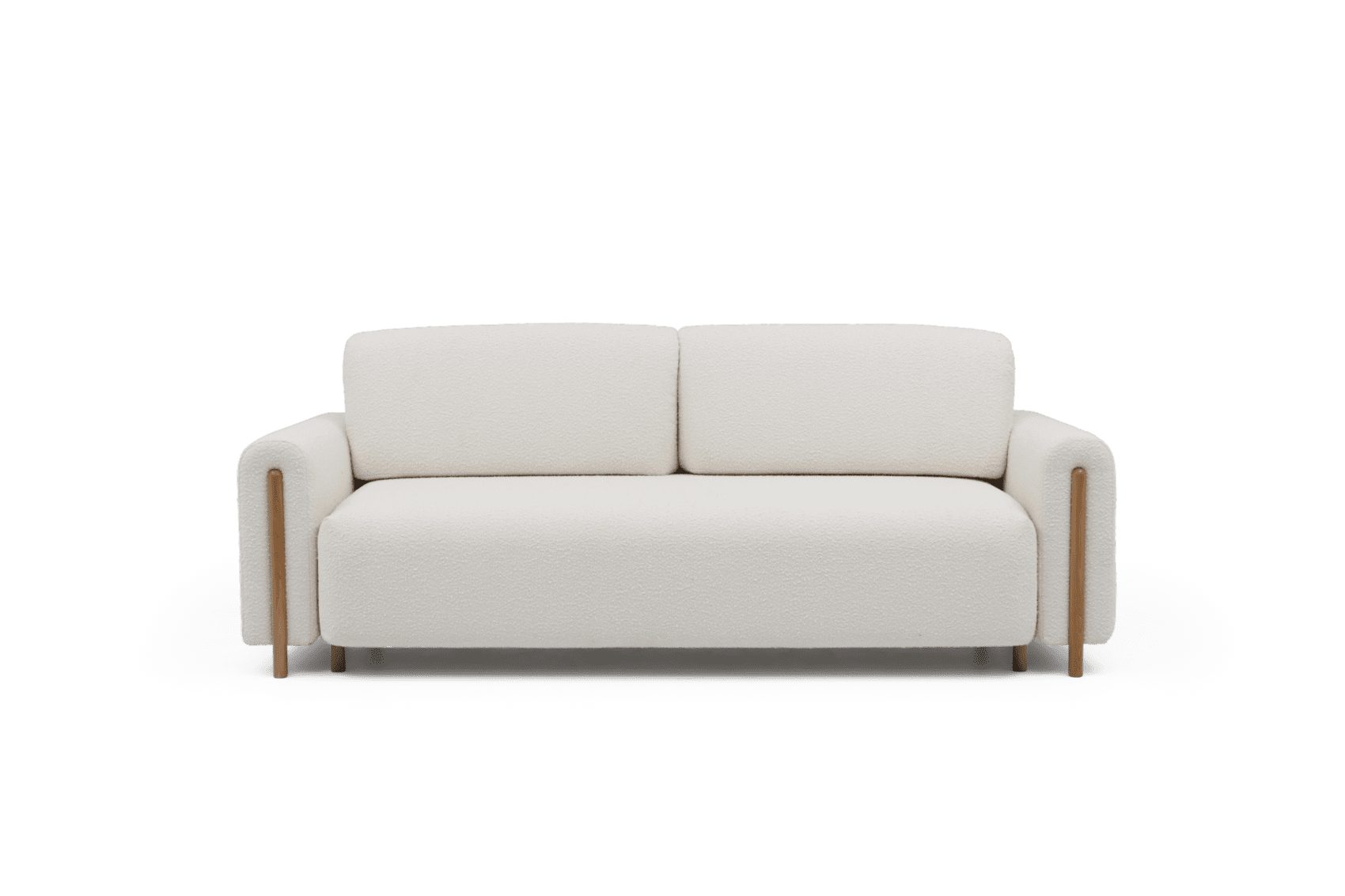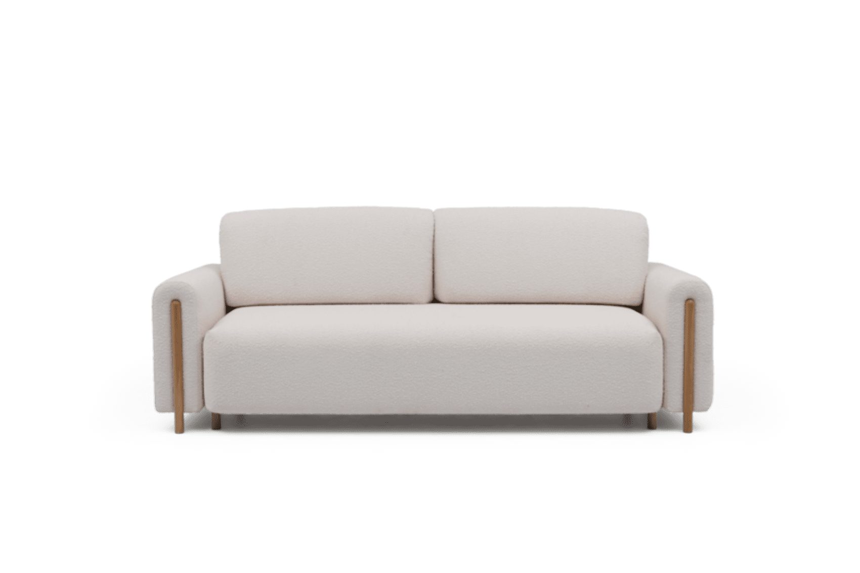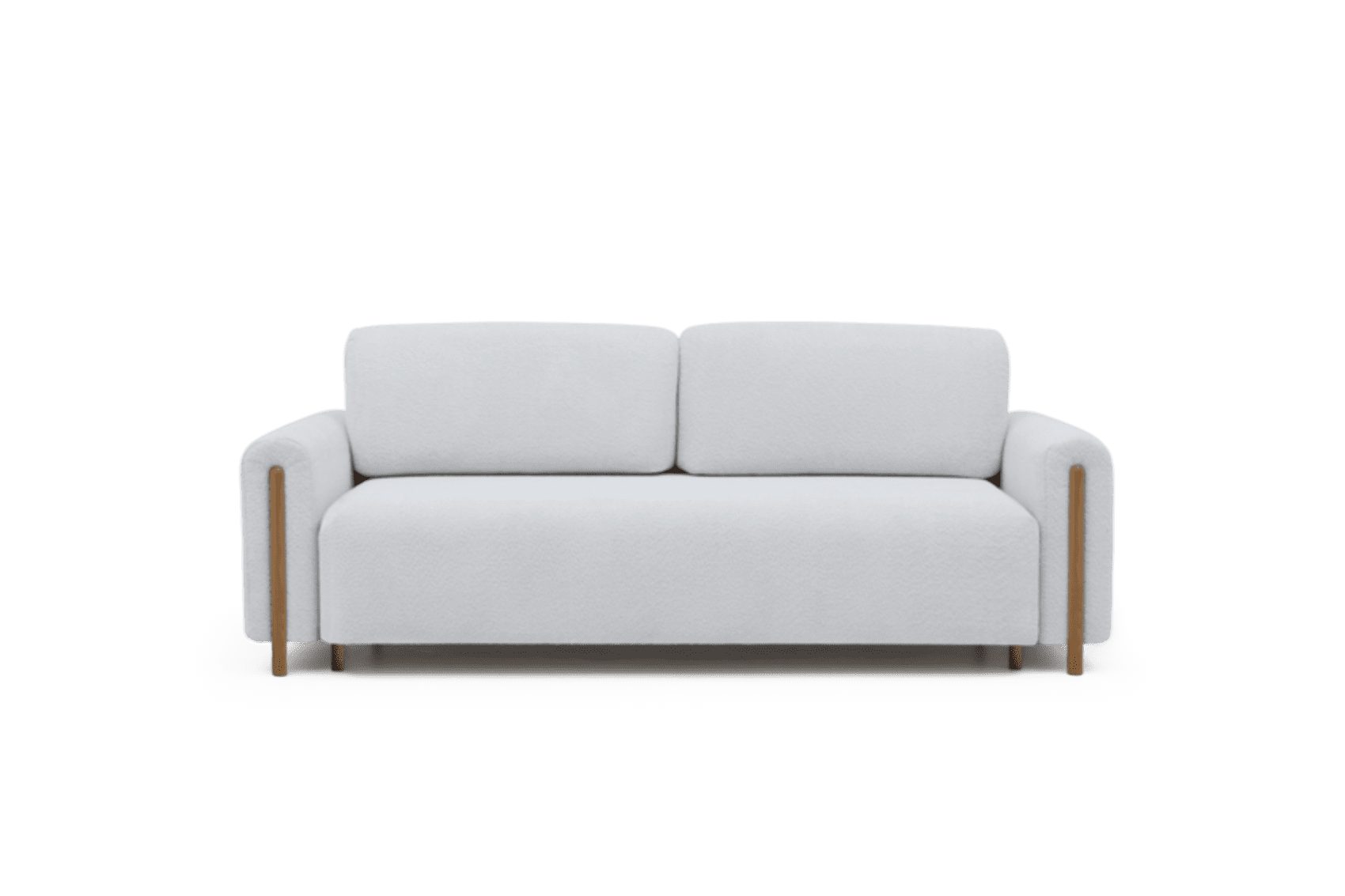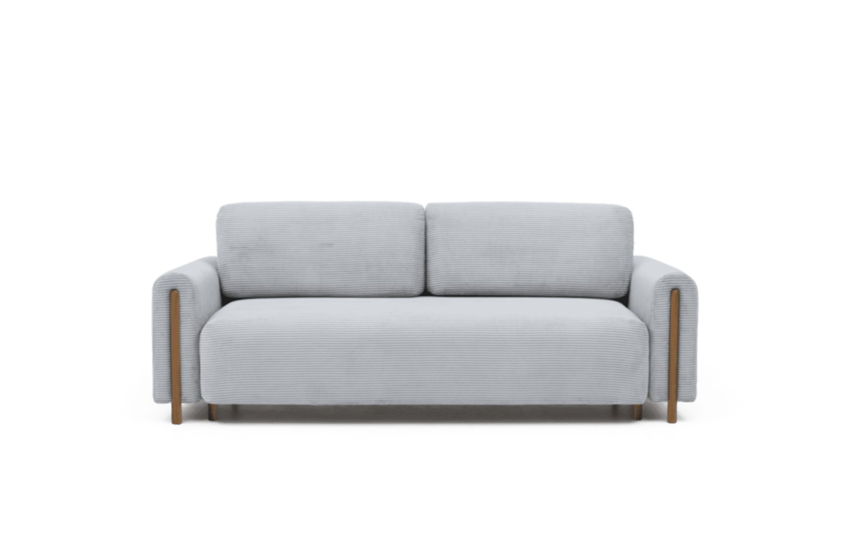 Die hohen Holzbeine verleihen dem Schlafsofa eine besondere Leichtigkeit und lassen den Raum luftiger wirken. Sie passen perfekt zu verschiedenen Einrichtungsstilen – von modern und minimalistisch bis hin zu skandinavisch oder klassisch. Die harmonische Farbgebung sorgt für eine elegante Note und fügt sich nahtlos in jedes Wohnkonzept ein.