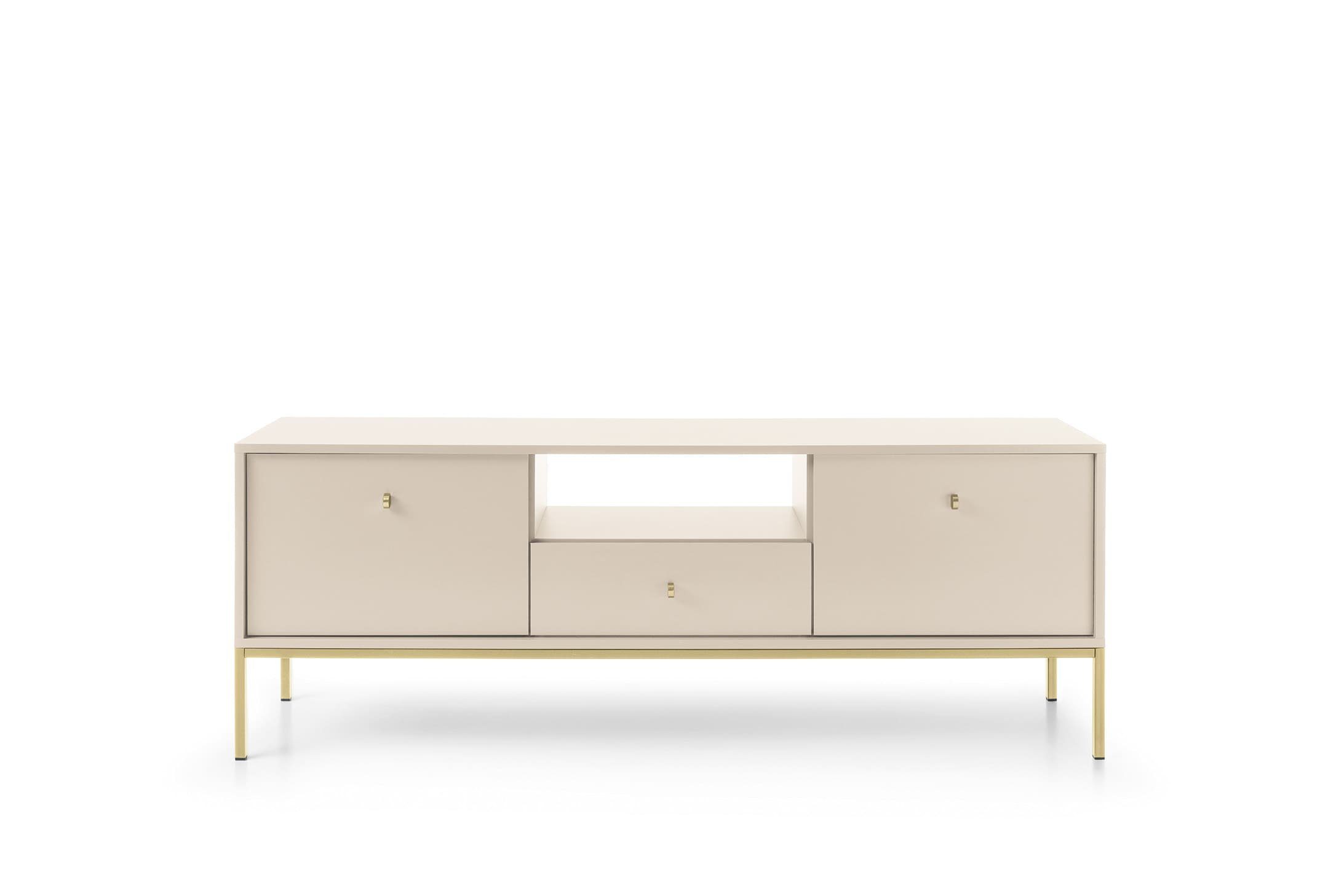 Der TV-Schrank aus der MELODY-Kollektion bietet zwei geschlossene Schränke, ein offenes Regal und eine Schublade, in denen Sie elektronische Geräte, Dokumente oder anderes nützliches Zubehör erfolgreich unterbringen können. Sein schlichtes Design wurde durch kleine Griffe bereichert, wodurch das Ganze seinen modernen und minimalistischen Look behält.