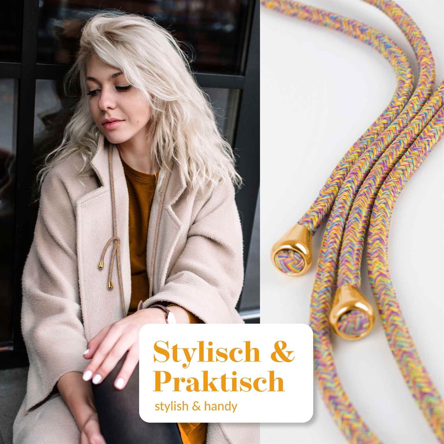 Besondere Merkmale | Umhängeband mit Karabiner Handy Kette zum Umhängen Band abnehmbar |