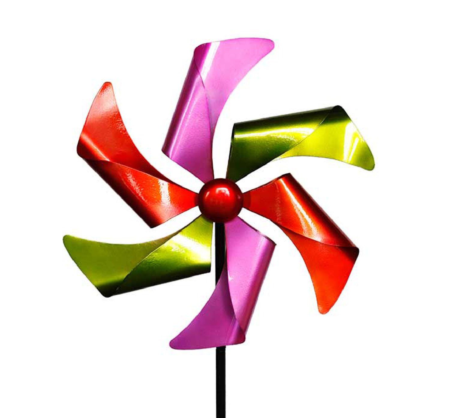 Das XL Windrad aus Metall ist liebevoll produziert und lackiert worden. Das Windspiel wird mit dem dazugehörigen Stab geliefert. Durch seine Farbenvielfalt ist das sich drehenden Windrad wunderschön anzusehen. Mit einer Kompletthöhe von ca. 140 cm und einem Durchmesser von ca. 38 cm ist es imposant in seiner Erscheinung.