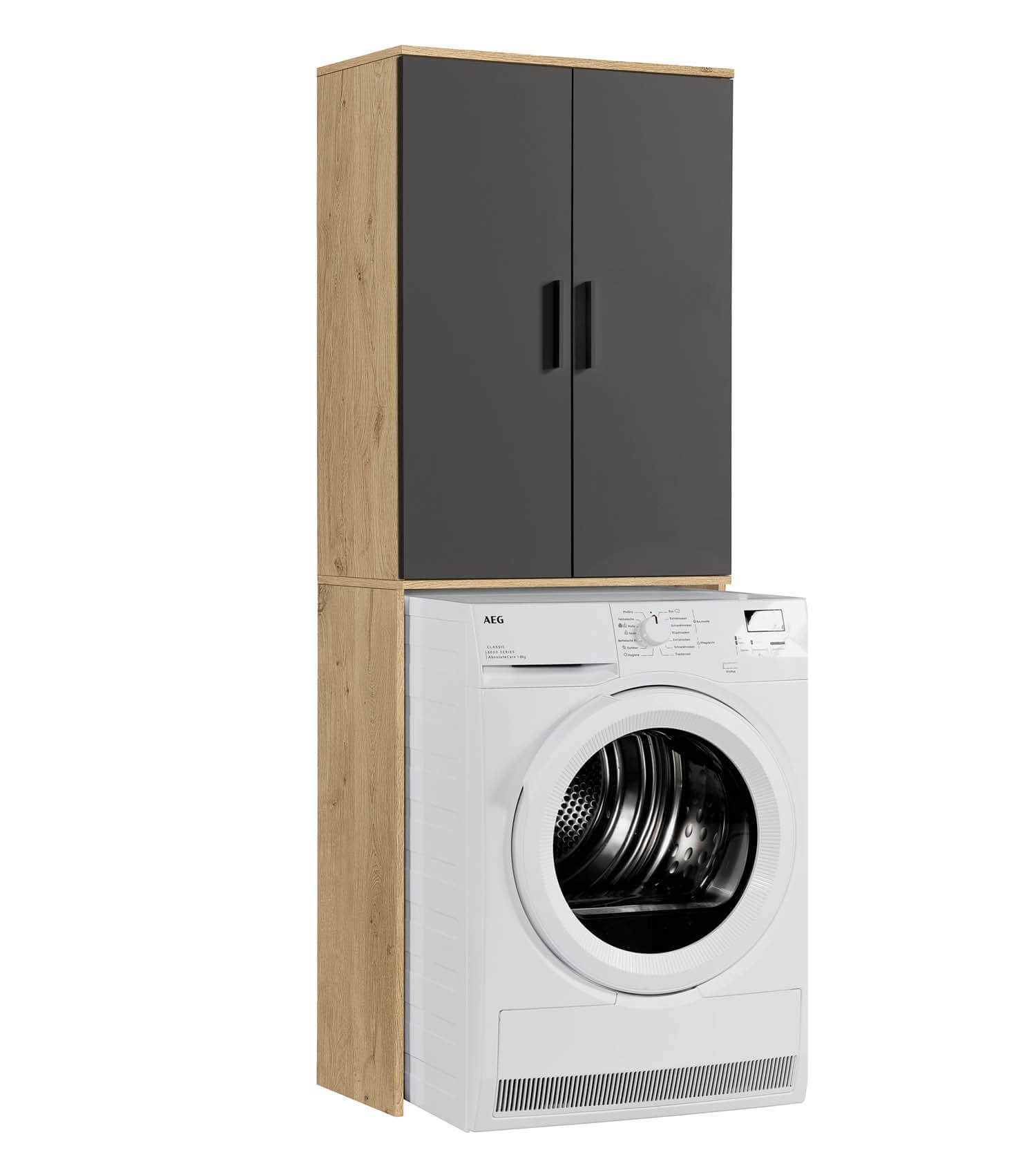 Materialeigenschaften | Korpus und Fronten aus hochwertigem Spanplatten-Holzwerkstoff aus europäischen Wäldern. Matte, strapazierfähige & pflegeleichte Melaminbeschichtung in Alpinweiß, Anthrazit und Eiche-anthrazit |