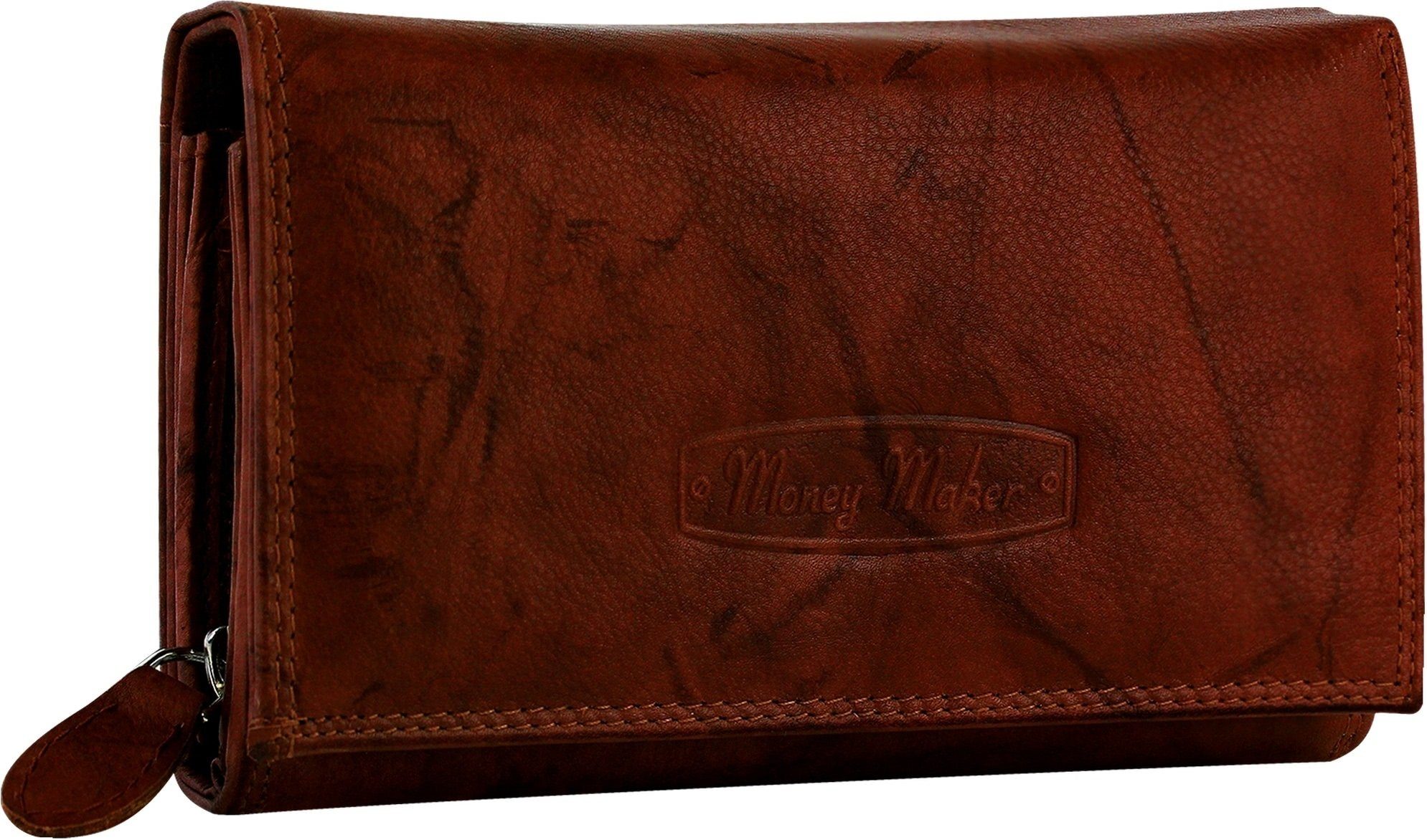 Braunes Leder Portemonnaie, Geldbörse im Querformat der Marke: Money Maker