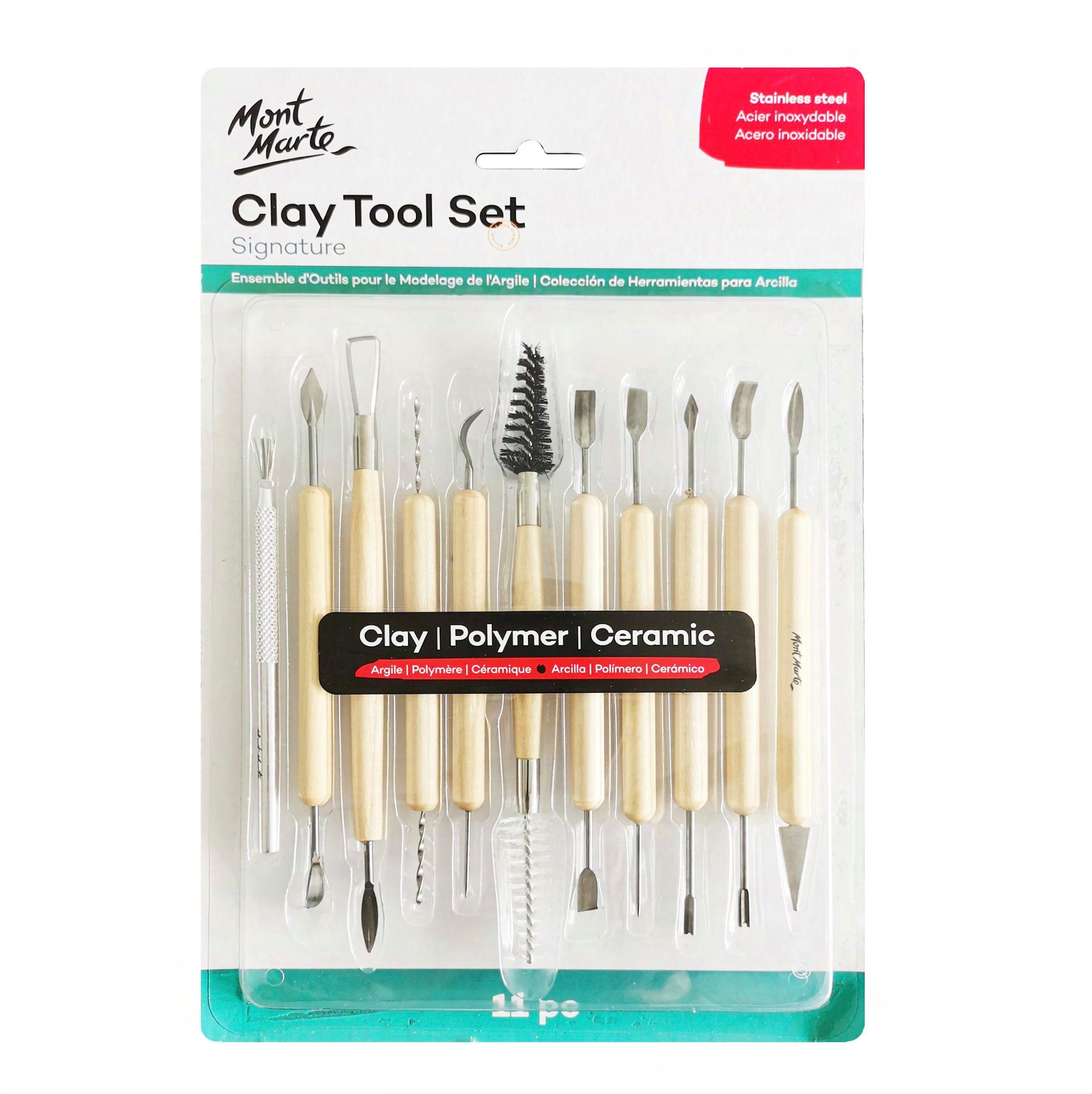 Das 11-teilige Modellierwerkzeug-Set von MONT MARTE enthält eine hervorragende Auswahl an hochwertig verarbeiteten Sculpting Tools in verschiedenen Größen. Sie können verwendet werden für feuchten Ton oder andere Rohmasse. Jedes Werkzeug besteht aus lackierten Hartholzgriffen mit langlebigen Stahlspitzen.
