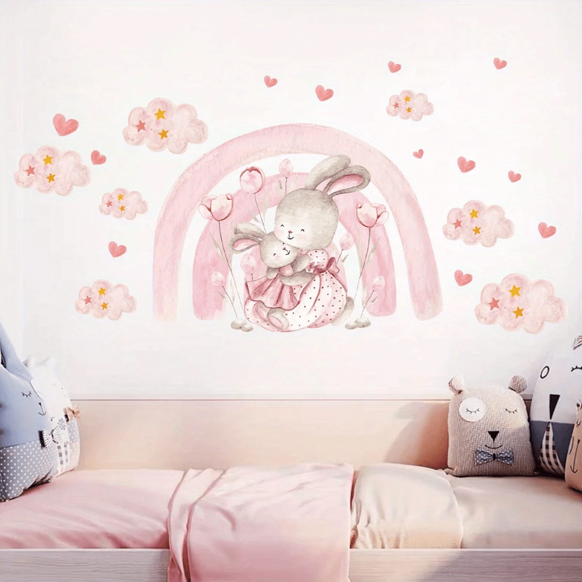 Lieferumfang | 1x Wandaufkleber mit rosa Regenbogen Herz Wolke Kaninchen |