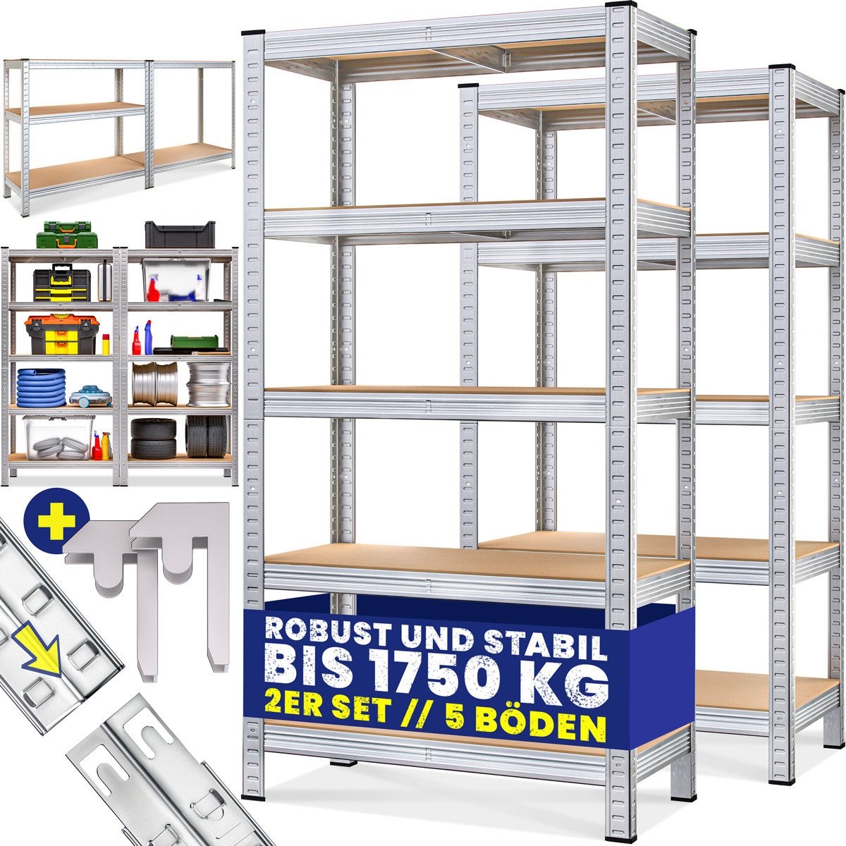 Mit dem MONZANA® Schwerlastregal bringst du Ordnung in deine Garage, Werkstatt, Lagerraum oder Keller. Das Lagerregal besteht aus hochwertigem verzinktem Stahl. Die Böden sind aus fünf umweltfreundlichen MDF-Platten und pro Ebene belastbar bis 175 kg mit einer Gesamttragkraft von 875 kg.