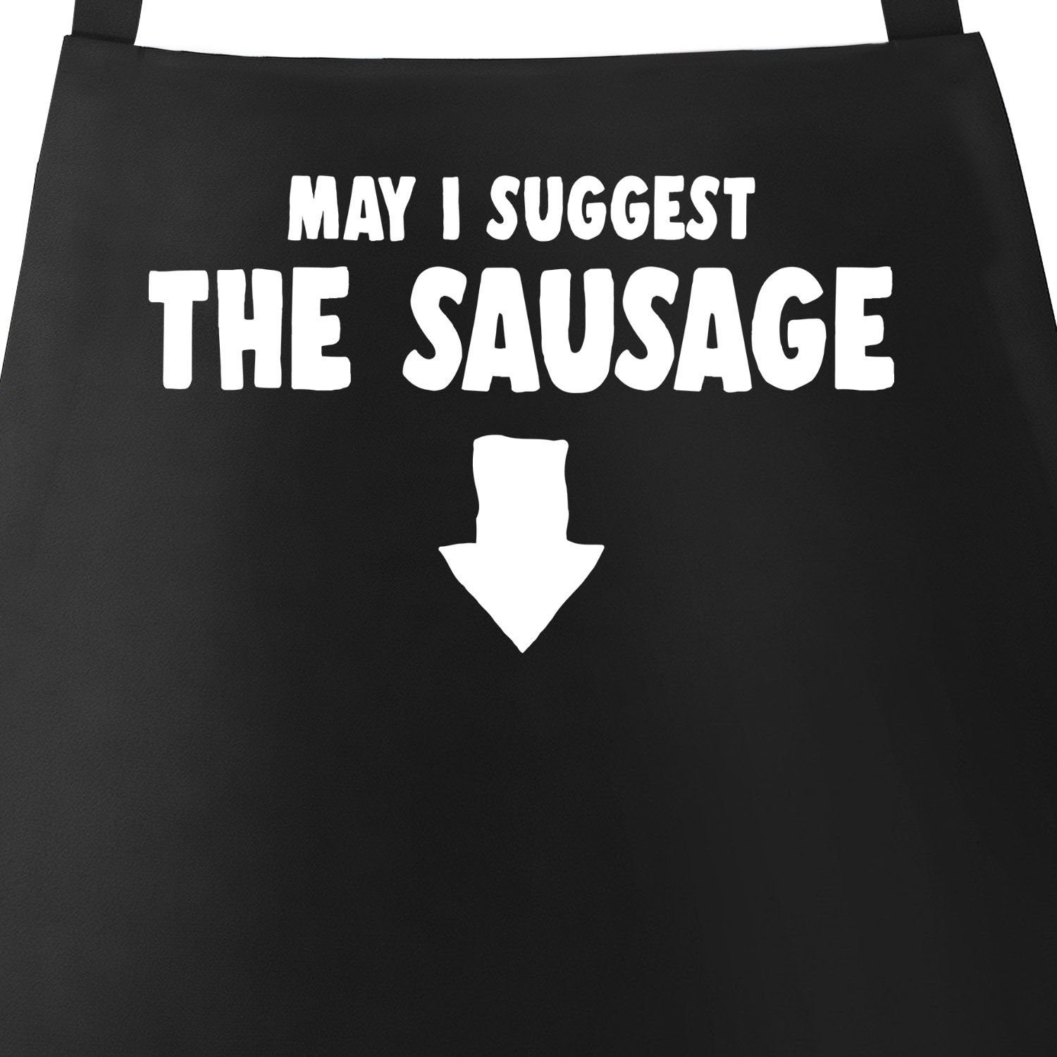 Grillen - die Männerdomäne schlechthin. Bier, Fleisch, Grill. Mehr braucht “Mann” nicht. Die Grillschürze mit dem witzig zweideutigen Spruch "May I suggest the Sausage" sorgt für die richtigen Lacher zur Grillfeier!