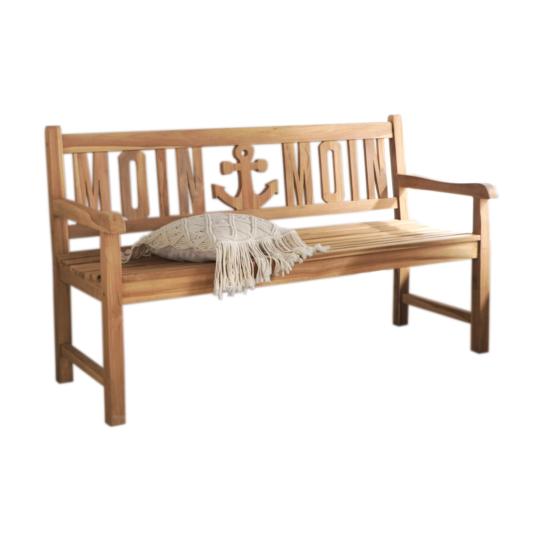 Entdecken Sie unsere stilvolle Sitzbank mit der charmanten Beschriftung "MOIN MOIN" und einem maritimen Anker im Rücken. Diese Bank aus hochwertigem, legal zertifiziertem Teakholz vereint Funktionalität und Ästhetik und ist sowohl für den Innen- als auch den Außenbereich geeignet. Mit einer Длина von 150 cm bietet sie ausreichend Platz für entspannte Momente im Garten, auf der Terrasse oder im Wohnraum. Genießen Sie die Kombination aus zeitlosem Design und nachhaltigem Material – perfekt für alle, die das Besondere lieben!