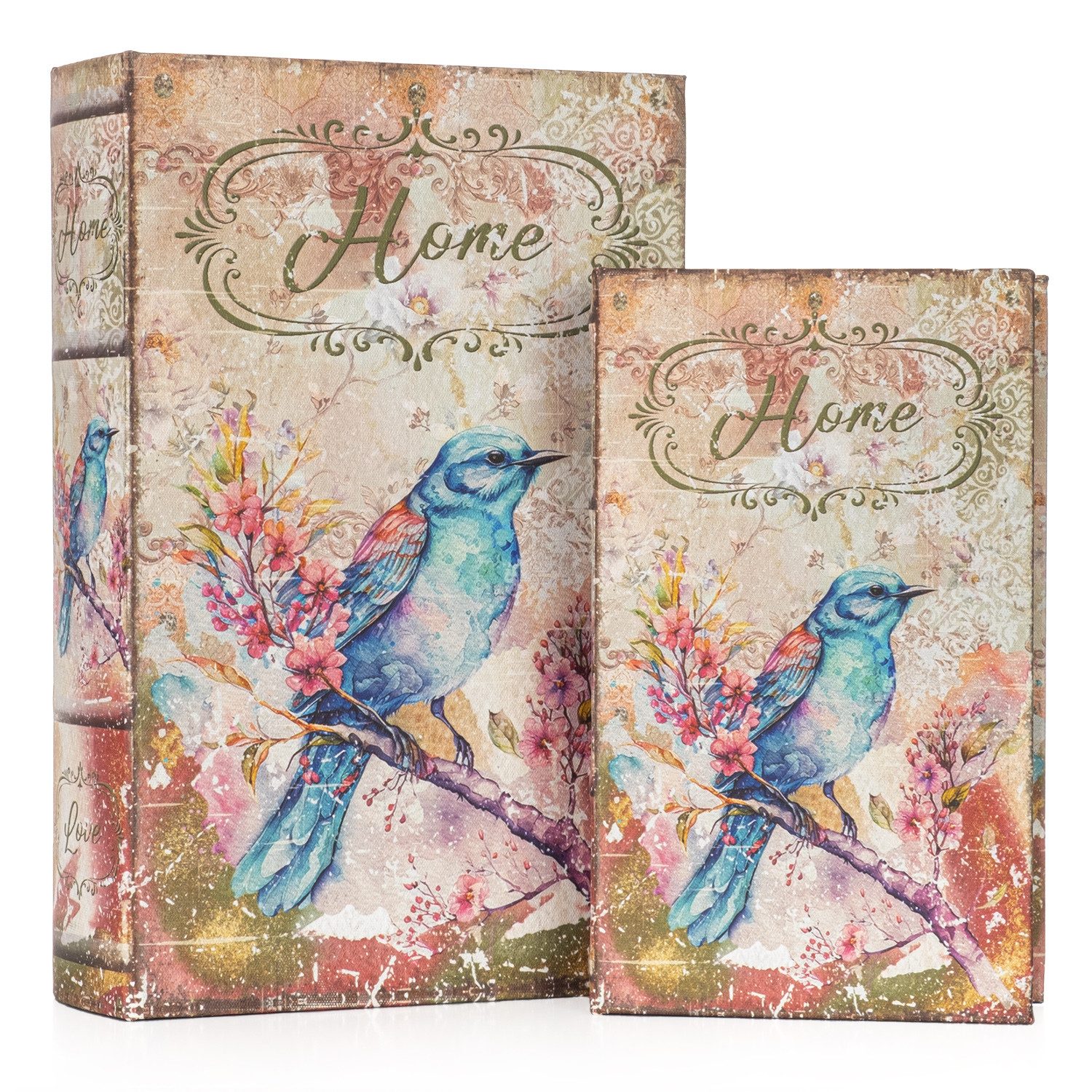 Romantisches Design - 2-teiliges Buchhüllen-Set mit Vogel- & Blumenmotiv im Shabby-Chic-Stil - ein stilvolles Deko-Highlight für Regal Wohnzimmer oder Büro.
