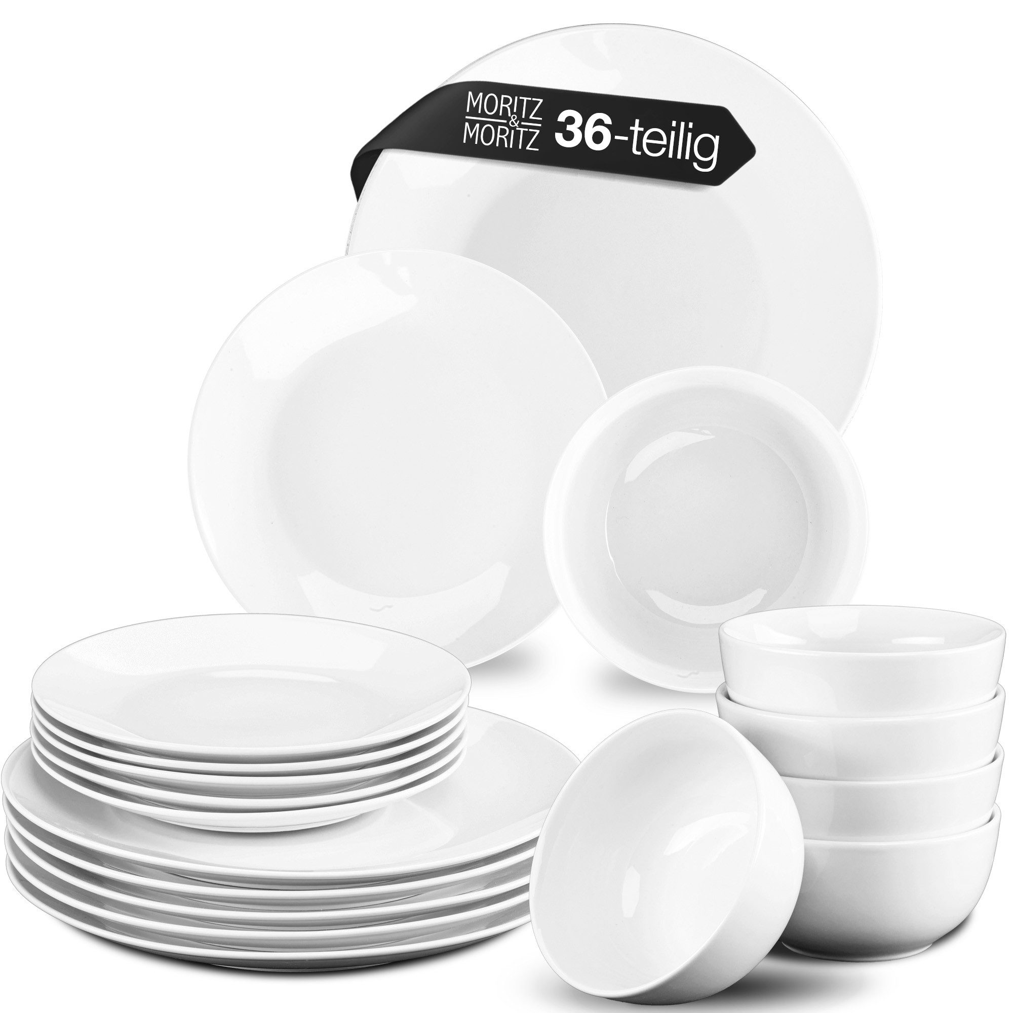 KOMPLETTSET – Dieses umfangreiche Tafelservice 12 Personen modern beinhaltet 12 große Taller (Ø 27 cm, 3 cm Höhe), 12 kleine Teller (Ø 20,5 cm, 2,5 cm Höhe) und 12 Schüsseln (Ø 14 cm, 7 cm Höhe, ca. 500 ml Füllmenge) – perfekt für eine vielseitige Tafelkultur ALLE GELEGENHEITEN ABDECKEN – Mit 12 Speiseteller für Abendessen mit Freunden und Familie, 12 Kuchenteller für süße Momente und 12 Bowls für kulinarische Kreativität ELEGANTES PORZELLAN – Hergestellt aus hochwertigem Porzellan, verleiht das Geschirr Set 36 teilig Ihrem Tisch klassische Eleganz und präsentiert Ihre Gerichte stilvoll SPÜLMASCHINENFEST – Genießen Sie nicht nur Ihre Mahlzeit, sondern auch die bequeme Reinigung danach. Dieses Geschirrset weiß 12 Personen ist speziell für die Verwendung in der Spülmaschine konzipiert, sodass Sie sich nach dem Essen nicht mit mühsamer Handwäsche herumschlagen müssen ERWEITERBAR UND GASTFREUNDLICH – Kombinieren Sie dieses Kombiservice 12 Personen mit anderen Moritz & Moritz Geschirrteilen, um Ihre Tischdekoration zu perfektionieren und Ihre Gäste stilvoll zu bewirten