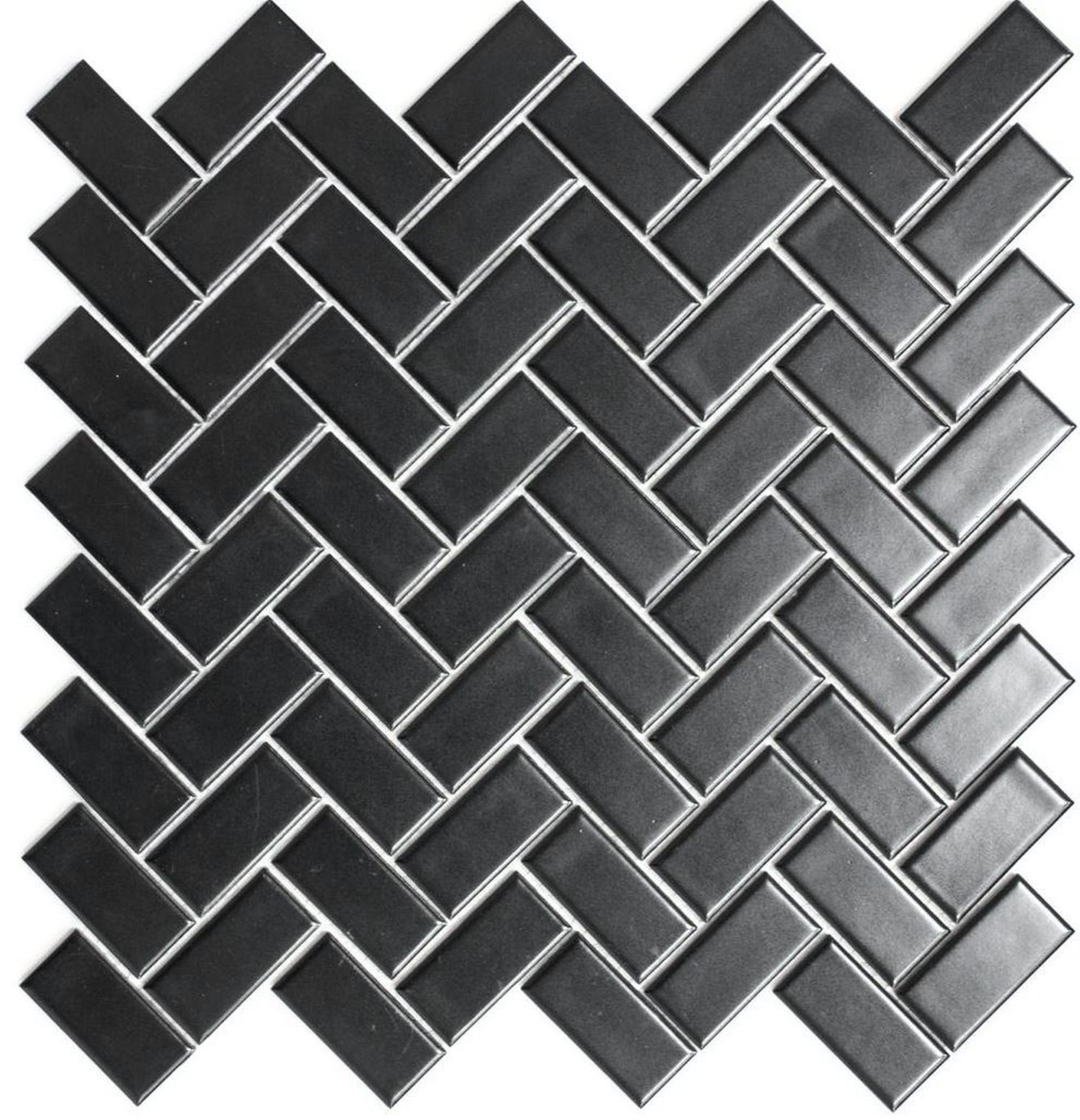 Mosaik Fliese Keramik Fischgrät schwarz matt Wandfliesen Badfliese MOS24-CHB06BM