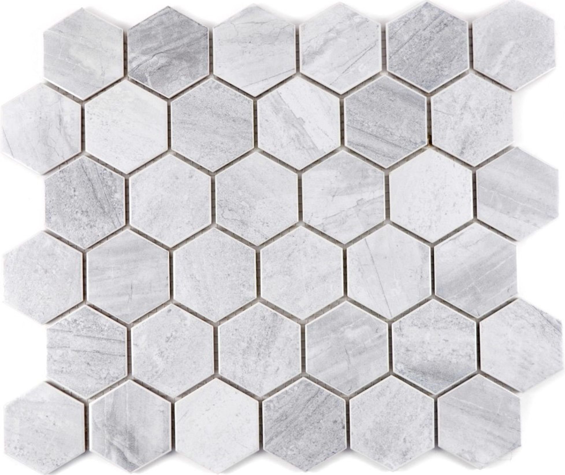 Mosaik Fliese Keramik Hexagon Travertin grau matt Fliesenspiegel Küche Spritzschutz Badfliese Wandfliese - MOS11G-0202