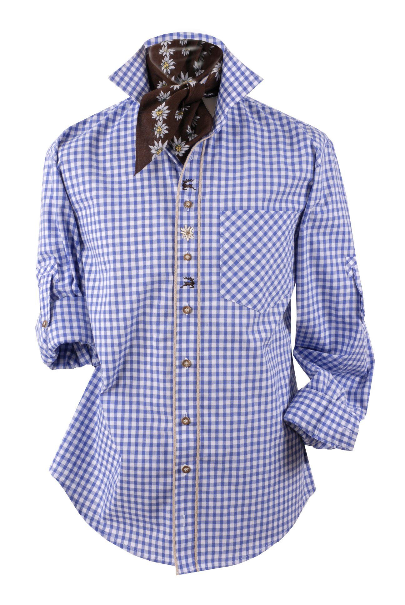 Trachtenhemd Trachtenhemd Herren Edelweiß kariert Karo Hirsch Langarm Kurzarm Blau