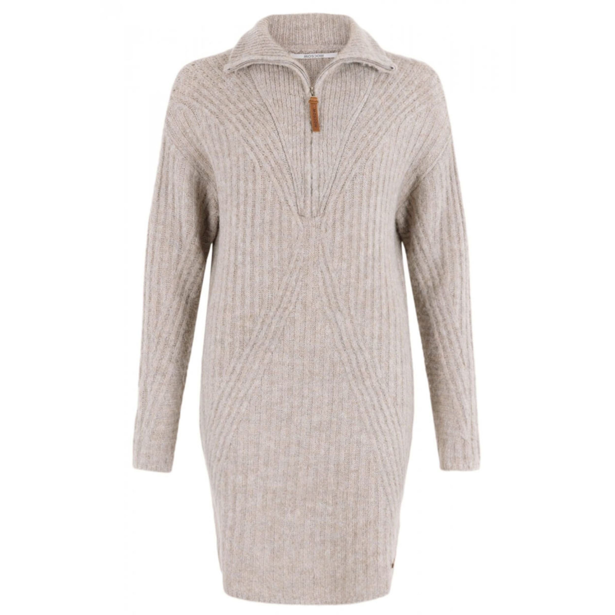 Kleid Kamila besteht aus einer weichen Wollmischung und recyceltem Polyester. Das Kleid hat einen hohen Kragen mit Reißverschluss auf der Brust. Der niedrige Schultereinsatz sorgt für zusätzlichen Tragekomfort. Das Kleid hat eine normale, gerade Passform. Es sitzt perfekt und besticht wie alle Moscow Designs durch sehr gute Qualität und Langlebigkeit. Moscow Textilien sind gemacht für viele Tragesaisons - weg von schnellem Modekonsum und hin zu Langlebigkeit in Sachen Bekleidung! Dazu möchten wir unseren Beitrag leisten.