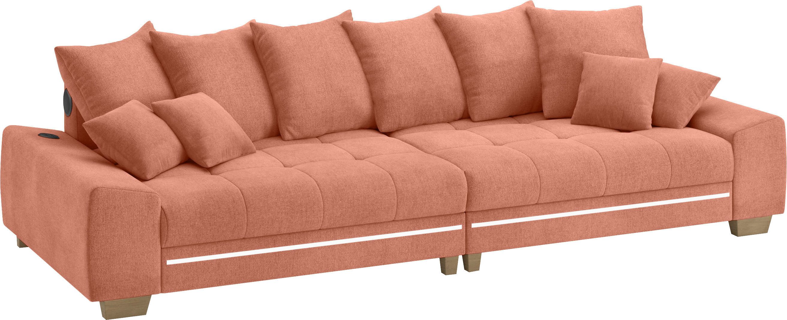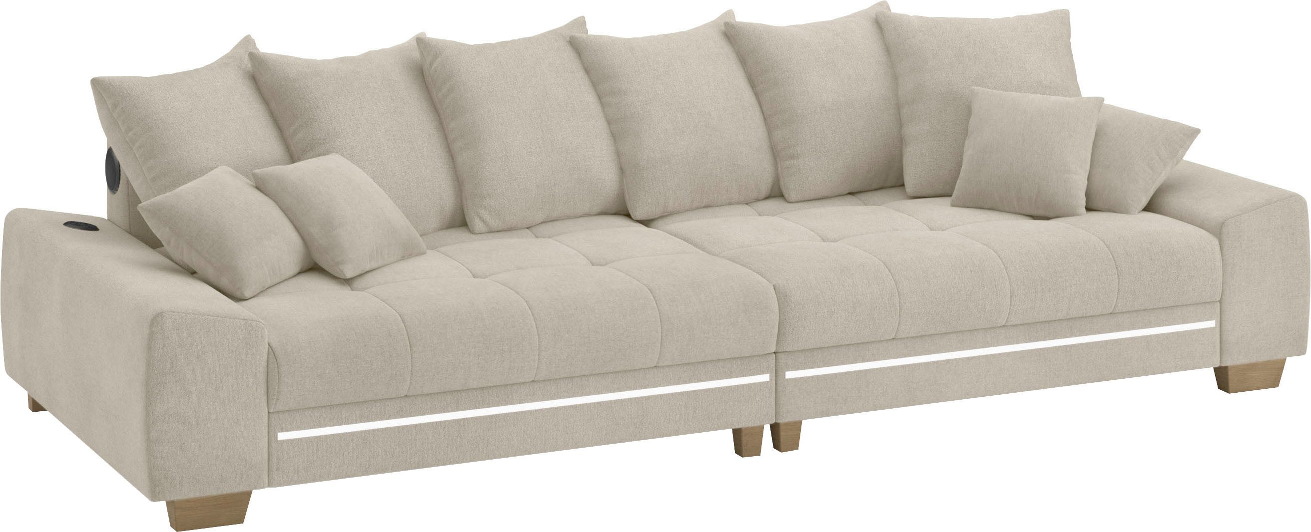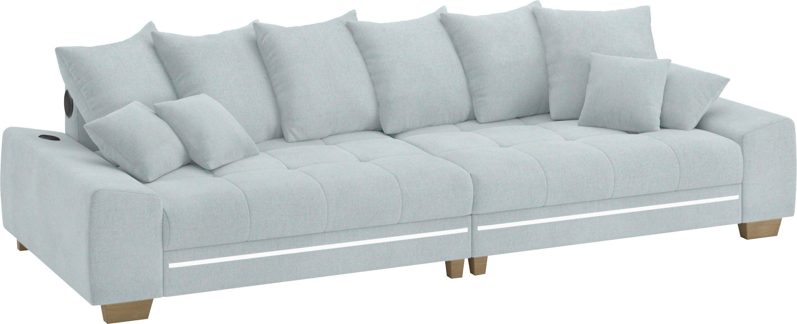 Lieferumfang | 4 Zierkissen 6 Rückenkissen Bigsofa mit Kaltschaum, RGB-LED Beleuchtung inkl. Fernbedienung und Bluetooth-Soundsystem mit Subwoofer und USB-Port |