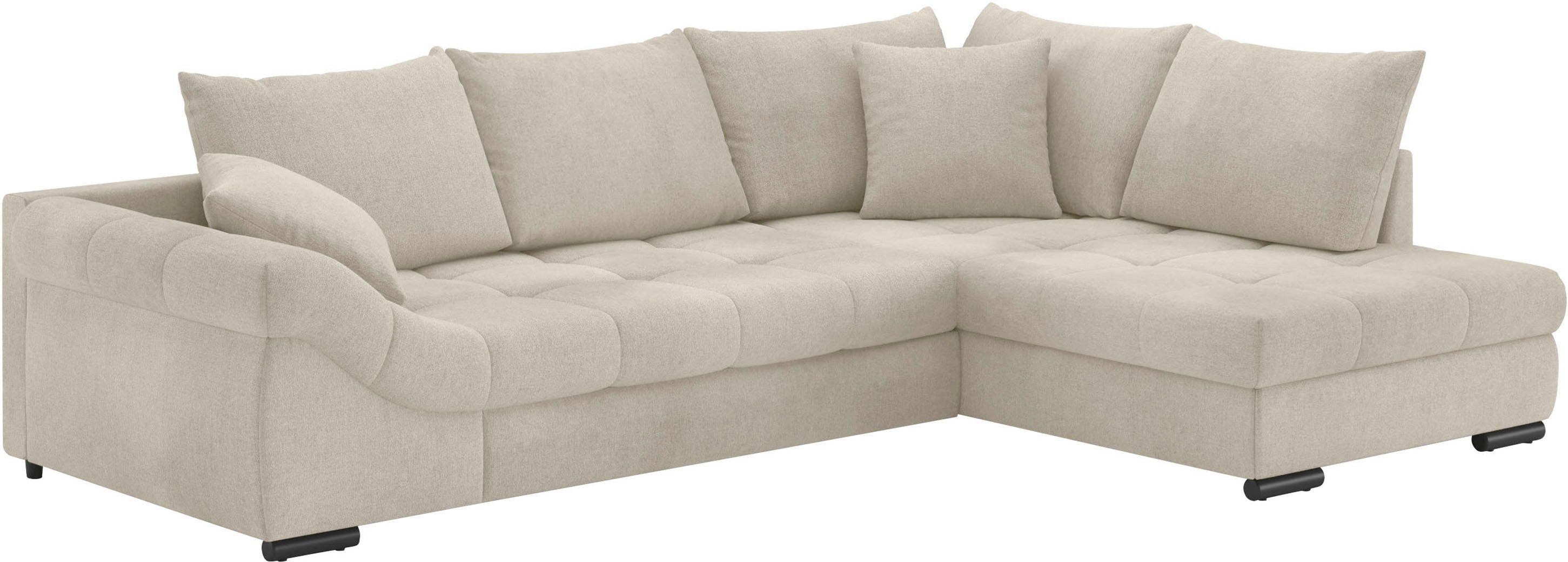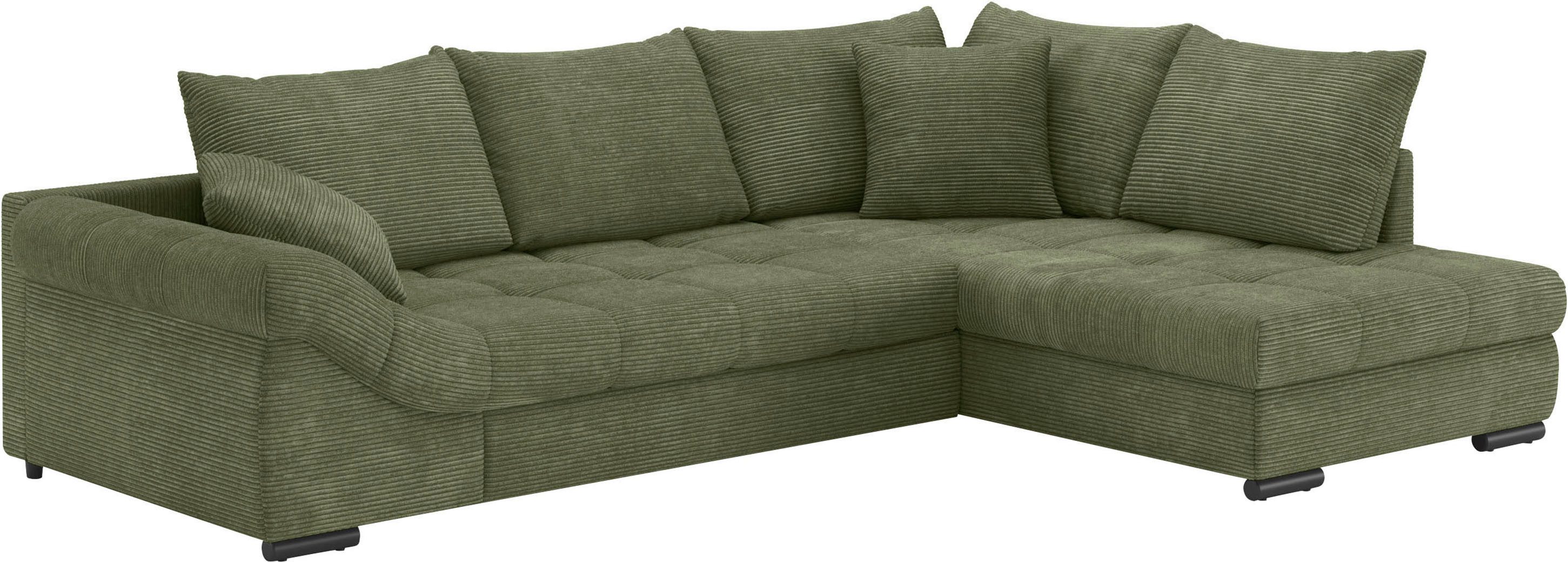 Dieses Ecksofa »Всеgro, L-Form« von Mr. Couch bietet dir dank der Wellenunterfederung hohen Sitzkomfort und Tragfähigkeit. Zudem handelt es sich hierbei um ein echtes Platzwunder, da es mit einer ausziehbaren Liegefläche versehen und somit Schlaf- und Ruhezone in einem ist. Was dir auch zu Gute kommt, ist das passende Rückenkissen, das nicht nur ein schönes Deko-Element ist, sondern auch für noch mehr Komfort sorgt. Beim Ecksofa befindet sich die Ottomane, von vorne betrachtet, rechts. Der Bezug aus Microfaser ist durch die feine Faserzusammensetzung sehr belastbar und weich. Aus Liebe zum Detail wurde dieses Modell von Hand angefertigt.