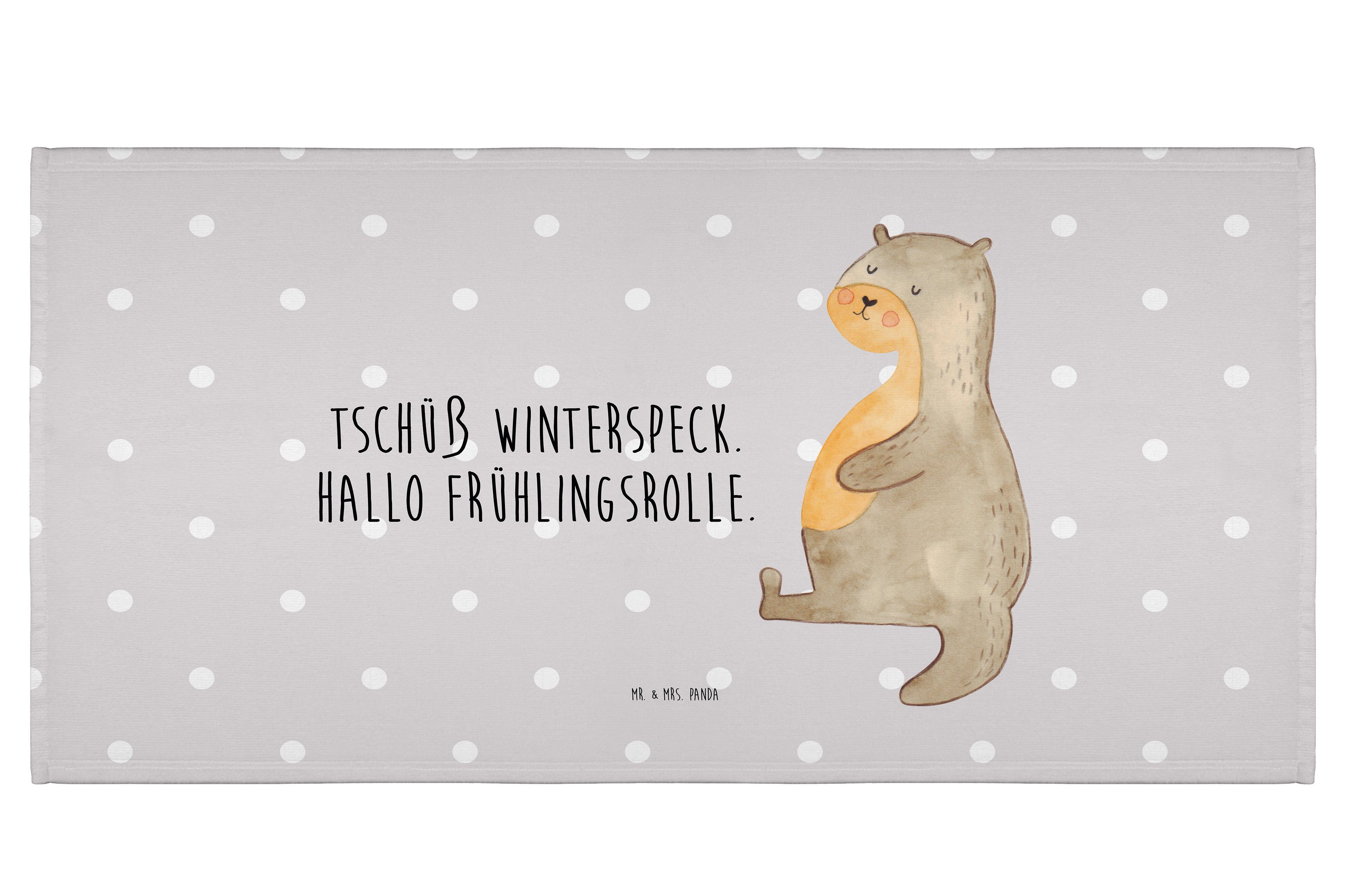 Mr. & Mrs. Panda Seeotter Wandbild - Lustiger Otterspruch als Geschenk & DekorationSchau dir Otter Bauch an und du fühlst dich gleich happy: Der niedliche Otter mit dem dicken Bauch und dem zufriedenen Lächeln strahlt Entspannung und Gemütlichkeit aus. Auf dem Sofa, im Kinderzimmer oder als süßes Mitbringsel – das von Mr. & Mrs. Panda handgezeichnete Motiv verbreitet gute Laune und sorgt für entspannte Stunden.