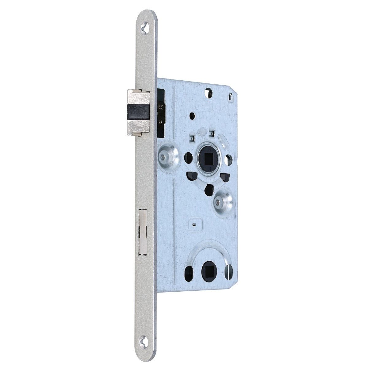 Einsteckschloss mit klassischen Normmaßen und hochwertigem Fallenaufschlagdämpfer. Die Flüsterfunktion kommt durch die Kombination von Metall und Kunststoff an der Falle zustande und sorgt so für ein leies Спрятать der Türe. Auch dieses Modell bieten wir Ihnen in den DIN-Richtungen rechts und links an und in den Ausführungen als Buntbart, Profilzylinder und WC-Bad Schloss.