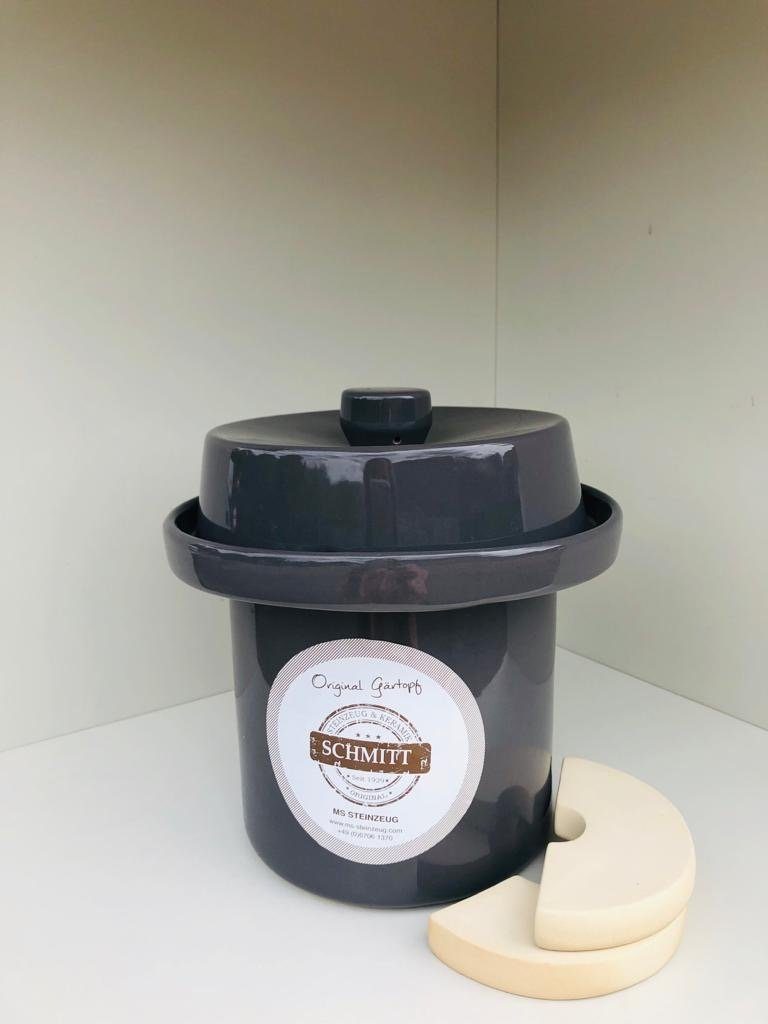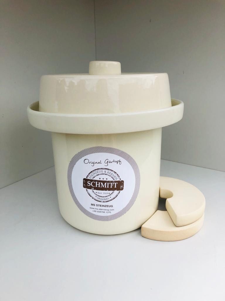MUST-HAVE: Der Gärtopf von MS-Steinzeug ist bestens geeignet für die Fermentation von Gemüse, Kräuter und Gewürzen für eine Vitamin und Vitalstoffreiche Ernährung. Die Milchsäuregärung wertet das fermentierte Lebensmittel auf Ideal für Veganer und Vegetarier. FERMENTIEREN: Sauerkraut, Bohnen, Gurken, Kombucha uvm. eignen sich perfekt zum fermentieren. Fangen Sie an, Ihre Lebensmittel wieder selbst ohne Chemie im eigenen Einmachtopf mit Hilfe der Milchsäuregärung zu produzieren. Lange haltbar - Konservendosen ade! ANWENDUNG: Topf ausspülen, befüllen und die mitgelieferten Steine fest auf das Gemüse drücken. Deckel auf den Topf legen und die Wasserrinne mit Wasser füllen, wodurch der Topf luftdicht abgeschlossen ist. REINIGUNG & PFLEGE: Die glatte schöne Glasur (Bleifrei, Kadmiumfrei) sorgt für eine unkomplizierte Reinigung des Topfes nach Gebrauch. Hinweis: Spülmaschinengeeignet. Extra breite Wasserrinne! Unsere Töpfe sind bei 1250 ° gebrannt.