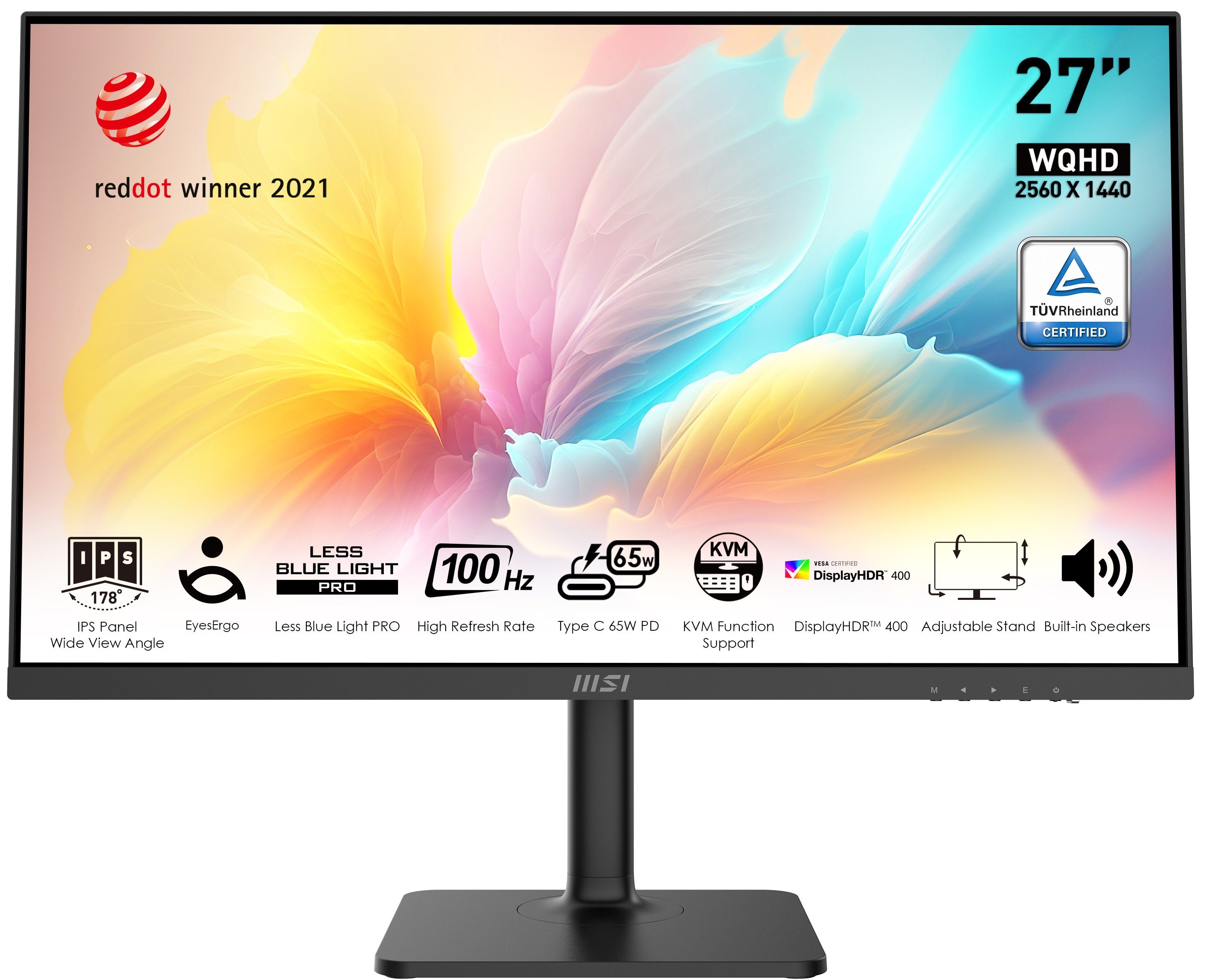 Als idealer Monitor für professionelle Anwendungen vereint der MSI Modern MD272QXPDE ein schlichtes und modernes Design mit optimaler Bildqualität. Dank der 27 Zoll großen Bildschirmdiagonale und WQHD- Auflösung (2560x1440) behältst du stets den Überblick – egal ob du Bilder und andere Medien bearbeitest oder alltägliche Office-Aufgaben erledigst. Das IPSPanel bietet eine brillante Farbdarstellung, optimale Helligkeitswerte und eine hohe Blickwinkelstabilität. Vielfältige Anschlussmöglichkeiten erlauben es, mühelos mehrere Geräte am