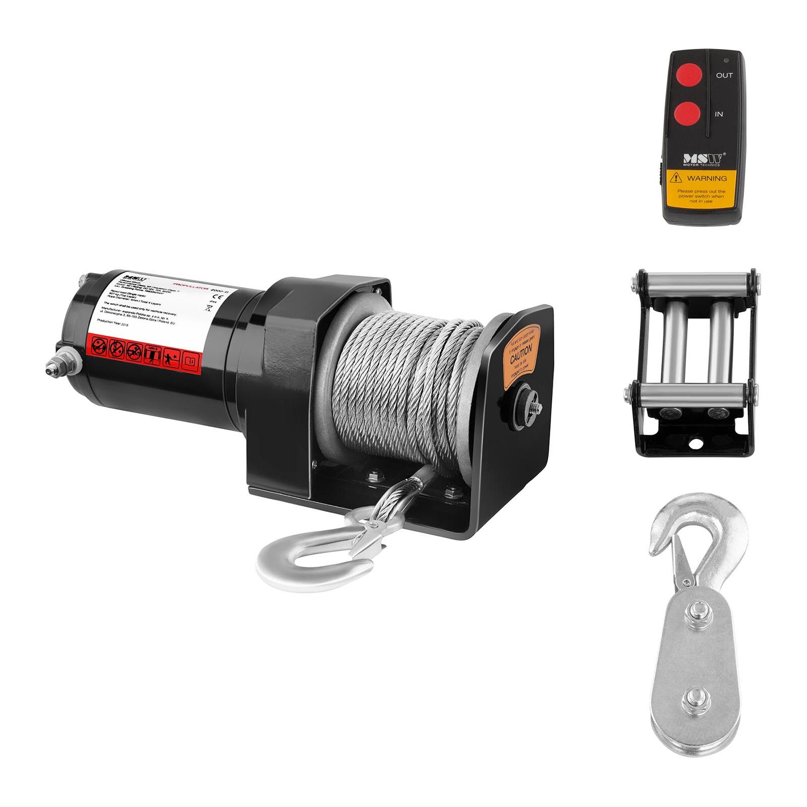 MSW Seilwinde 907 kg 12 V Elektrische Motorwinde Umlenkrolle Fernbedienung
