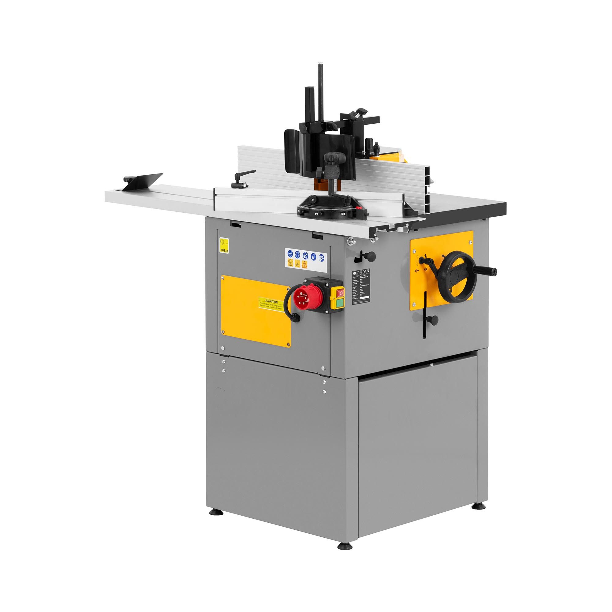 Die Tischfräse von MSW erfüllt mit kraftvollen 1500 W bei einer Spannung von 400 V höchste Ansprüche an Leistung, Geschwindigkeit und Präzision. Die vier einstellbare Drehzahlen (1400, 4000, 6000 und 9000 U/min) ermöglichen jederzeit maximale Flexibilität für verschiedenste Materialien und Arbeiten. Mit einem 30 x 105 mm messenden Fräskopf bei einer Öffnung von 160 mm sowie einem Hub von 110 mm und einem zwischen 0 und 105 mm einstellbaren Fräsbereich ermöglicht die Tischfräsmaschine jederzeit exakte Ergebnisse. Dank verstellbaren Führungsanschlags und einer robusten Abdeckung schützt die Maschine Ihre Hände bei jedem Fräsvorgang. Der um 650 mm verschiebbare Schlitten verbessert die Kontrolle über das Werkstück und reduziert das Rückschlagrisiko.