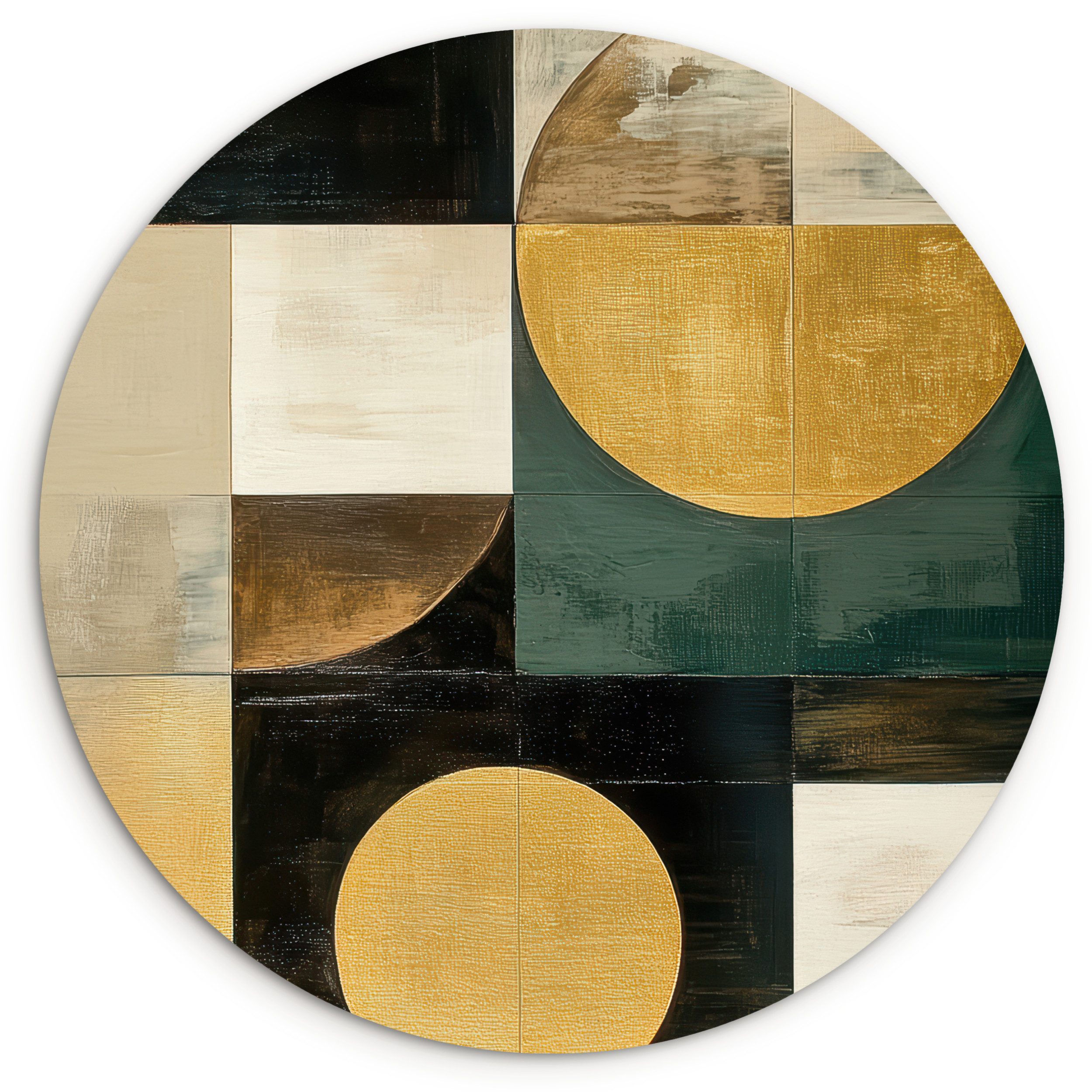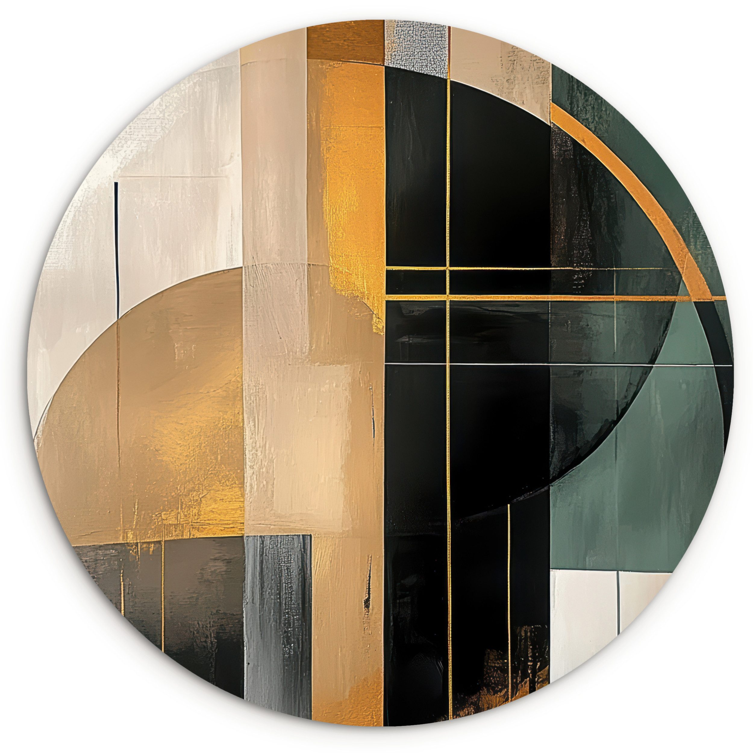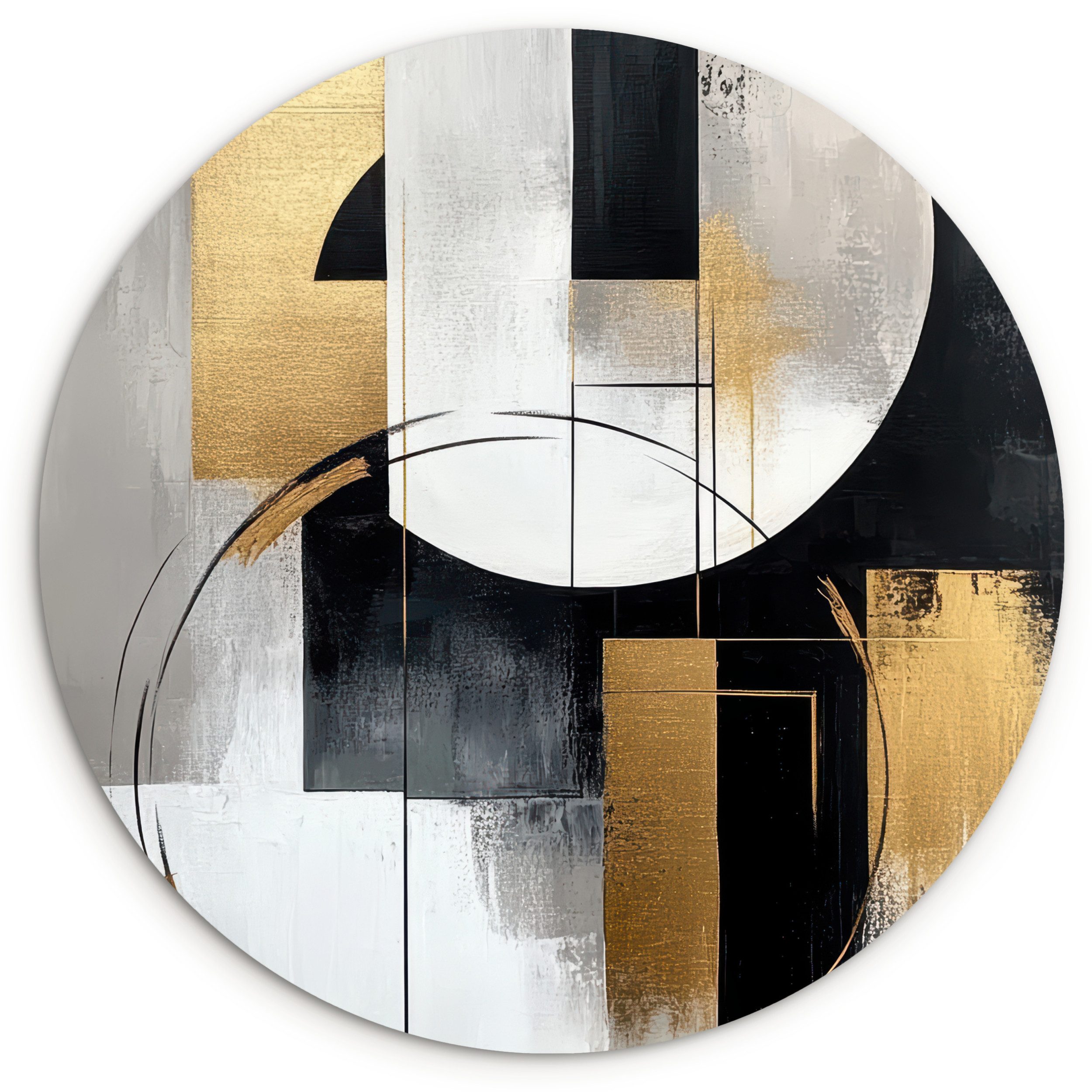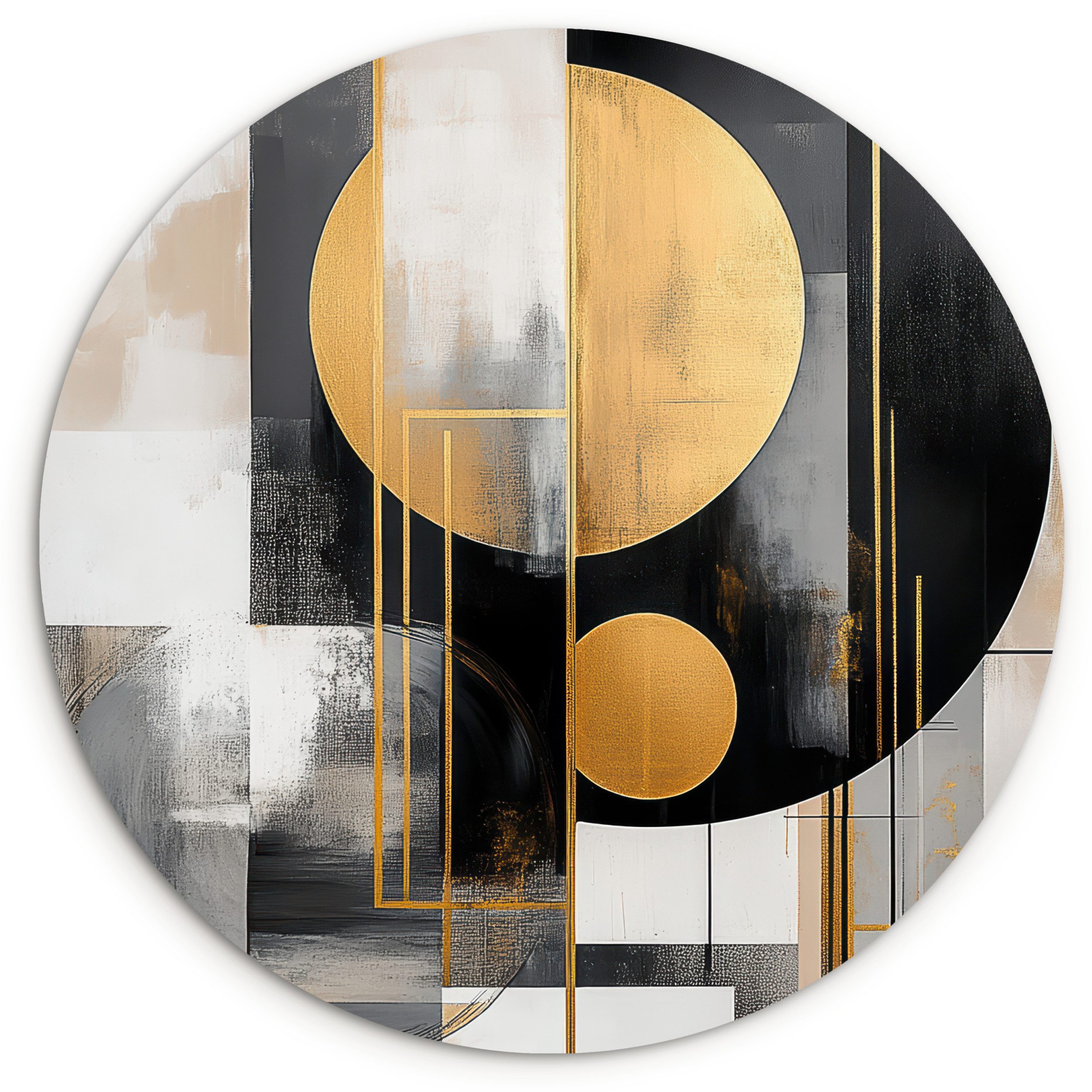 Abstraktes Bild mit verschiedenen Formen in Gold, Grau und Schwarz.