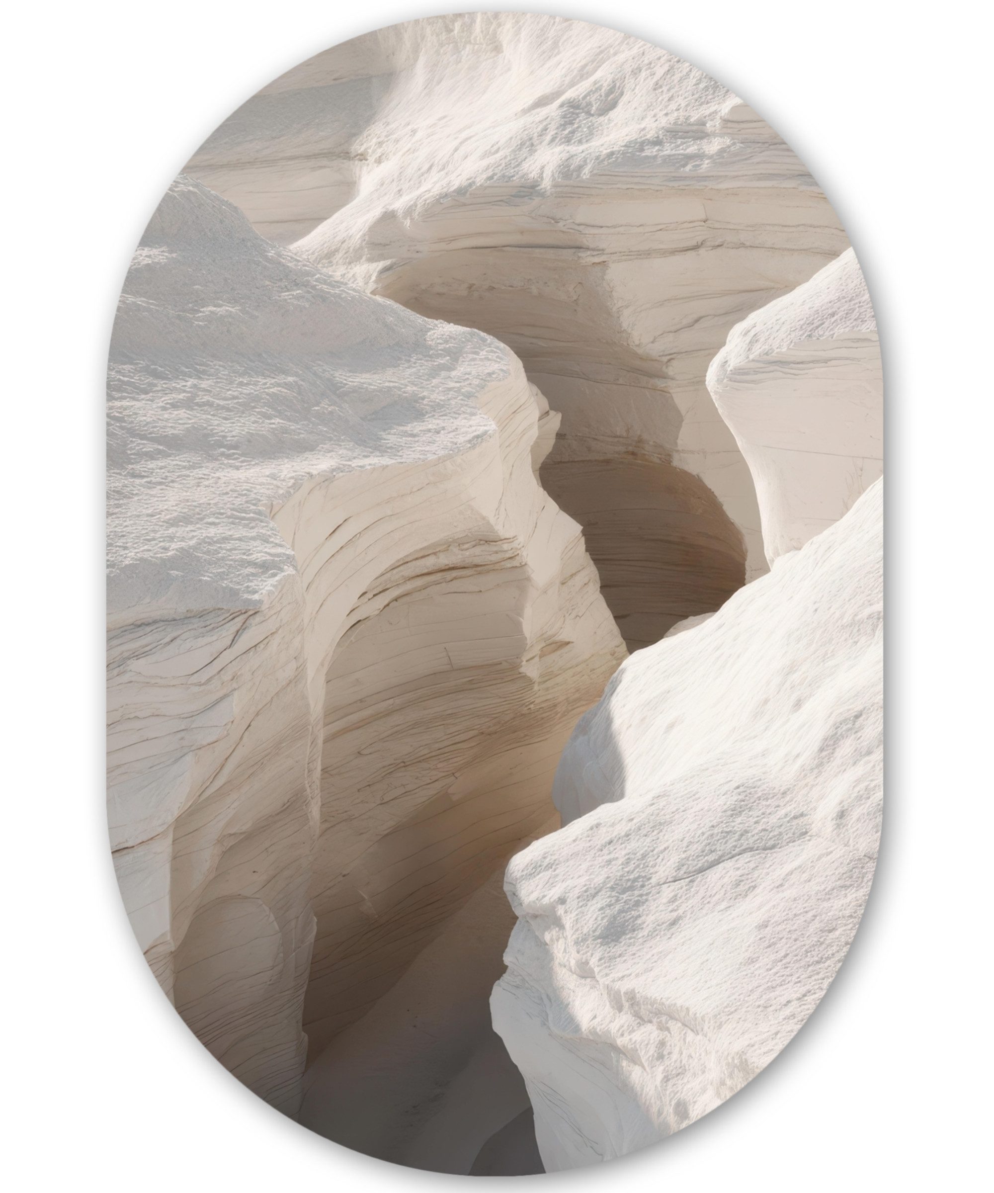 Natürliche weiße Formationen aus Schnee oder Eis bilden einen tiefen Canyon. Das weiche Sonnenlicht enthüllt die subtilen Schichten und Strukturen.Kunstgenre | Modern, Natur, Tiere, Abstrakt, Kinderzimmer |