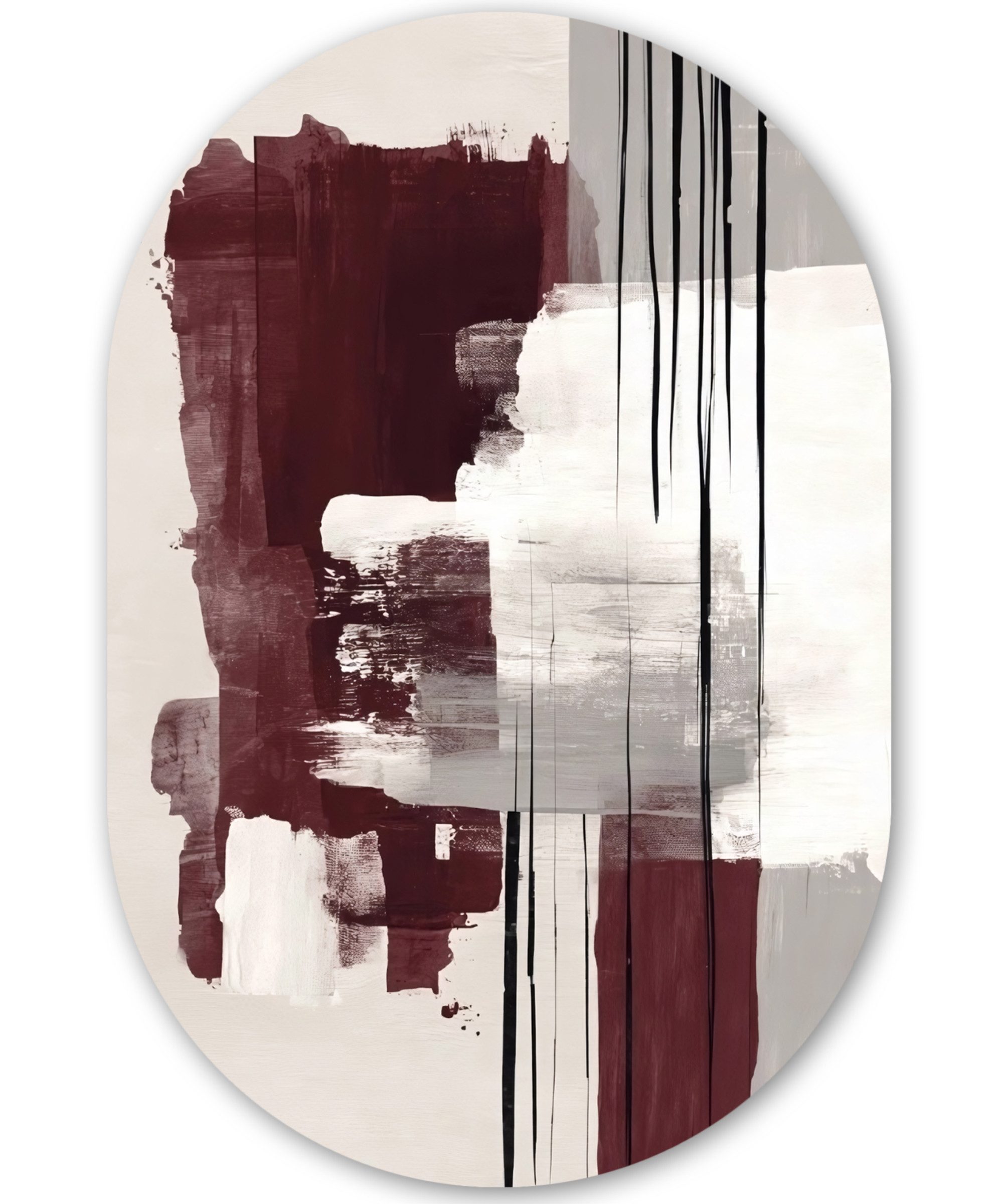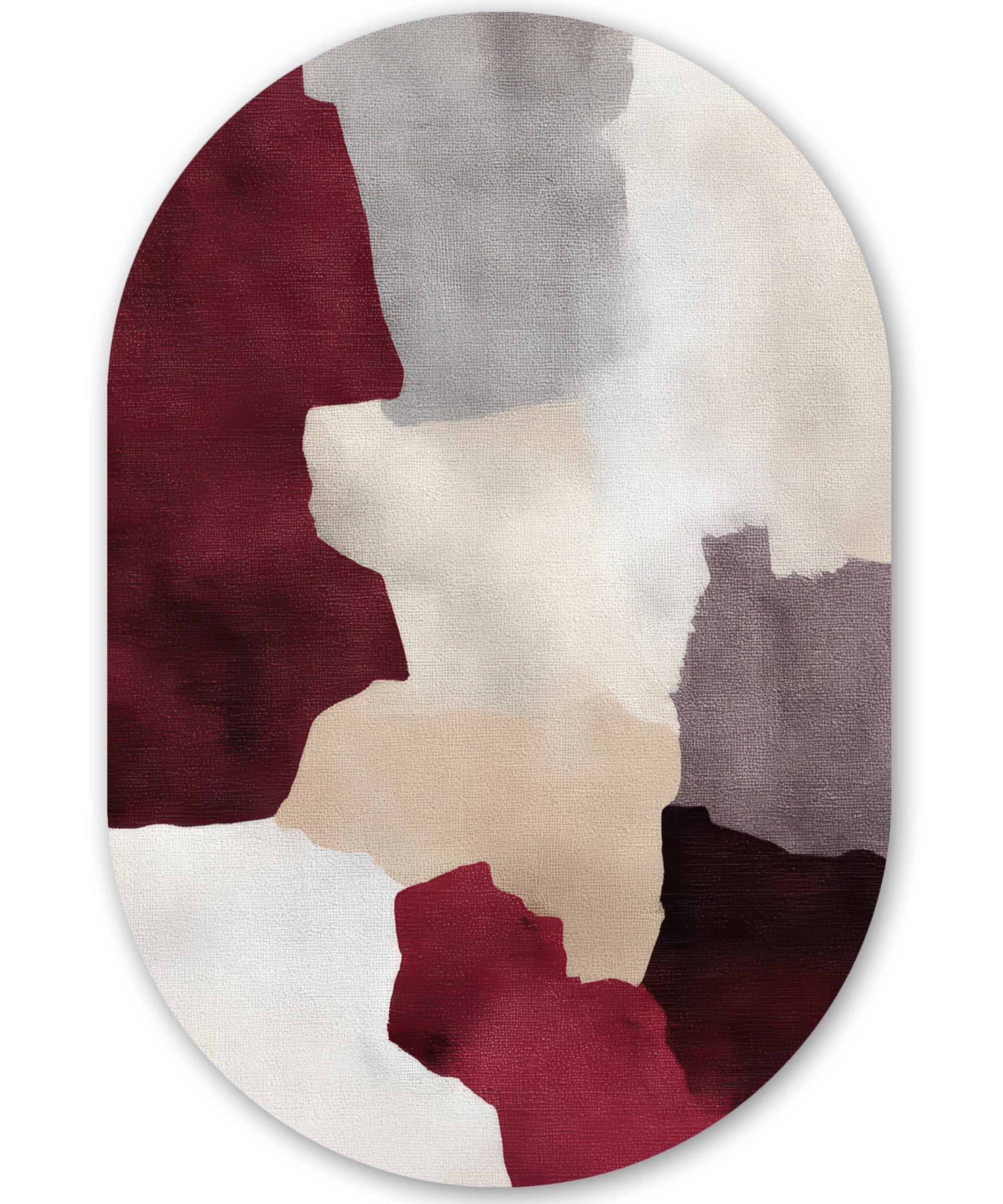 Eine abstrakte Komposition aus sich sanft überlagernden Farbflecken in Burgunderrot, Grau, Beige und Weiß. Die Flecken haben einen fließenden, organischen Charakter.Kunstgenre | Modern, Natur, Tiere, Abstrakt, Kinderzimmer |