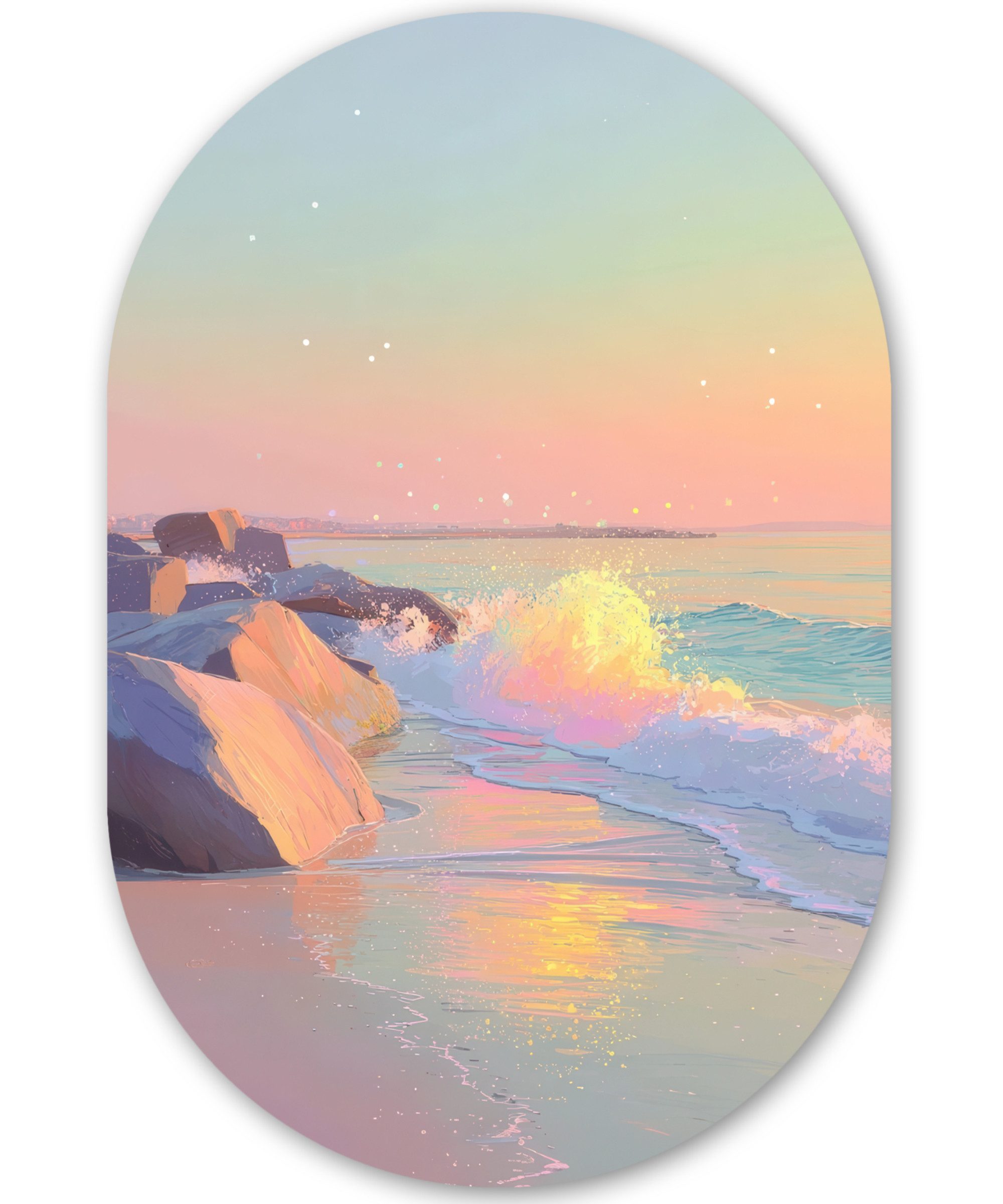 Ein Wandoval strahlt mehr Energie aus als klassische geometrische Formen wie Quadrat oder Rechteck. Durch seine elegante, ovale Form entsteht eine lebendige und wohnliche Atmosphäre. Kombiniert mit dem brillanten Fotodruck ergibt sich ein besonders ausdrucksstarkes und einzigartiges Gesamtbild.