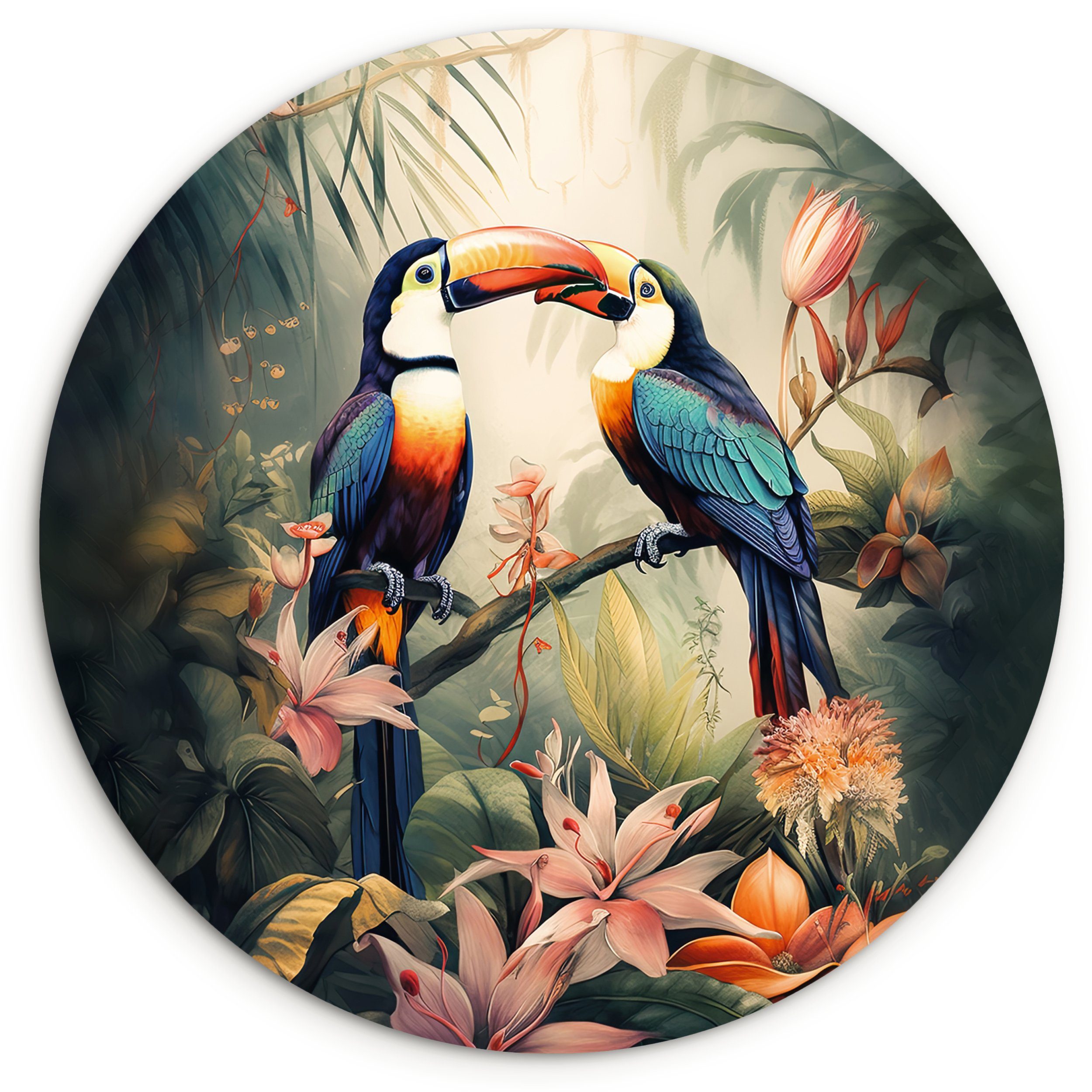 Das Bild zeigt eine Illustration von zwei Tukanen im Dschungel.
