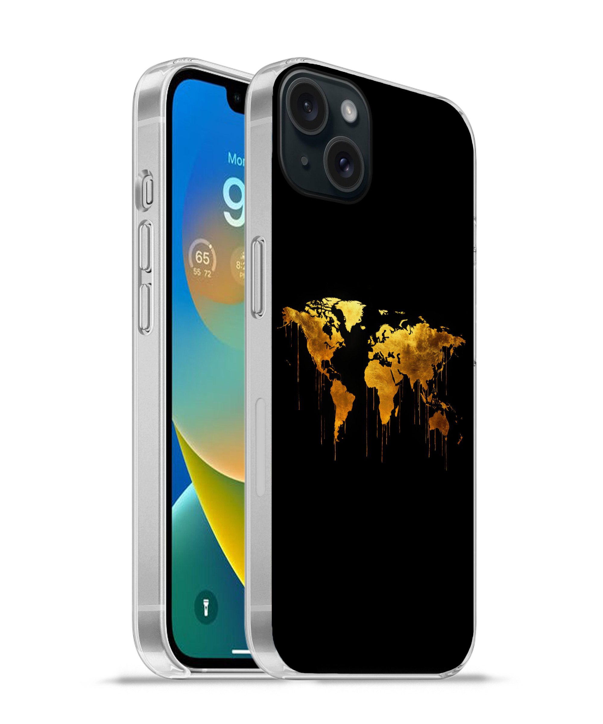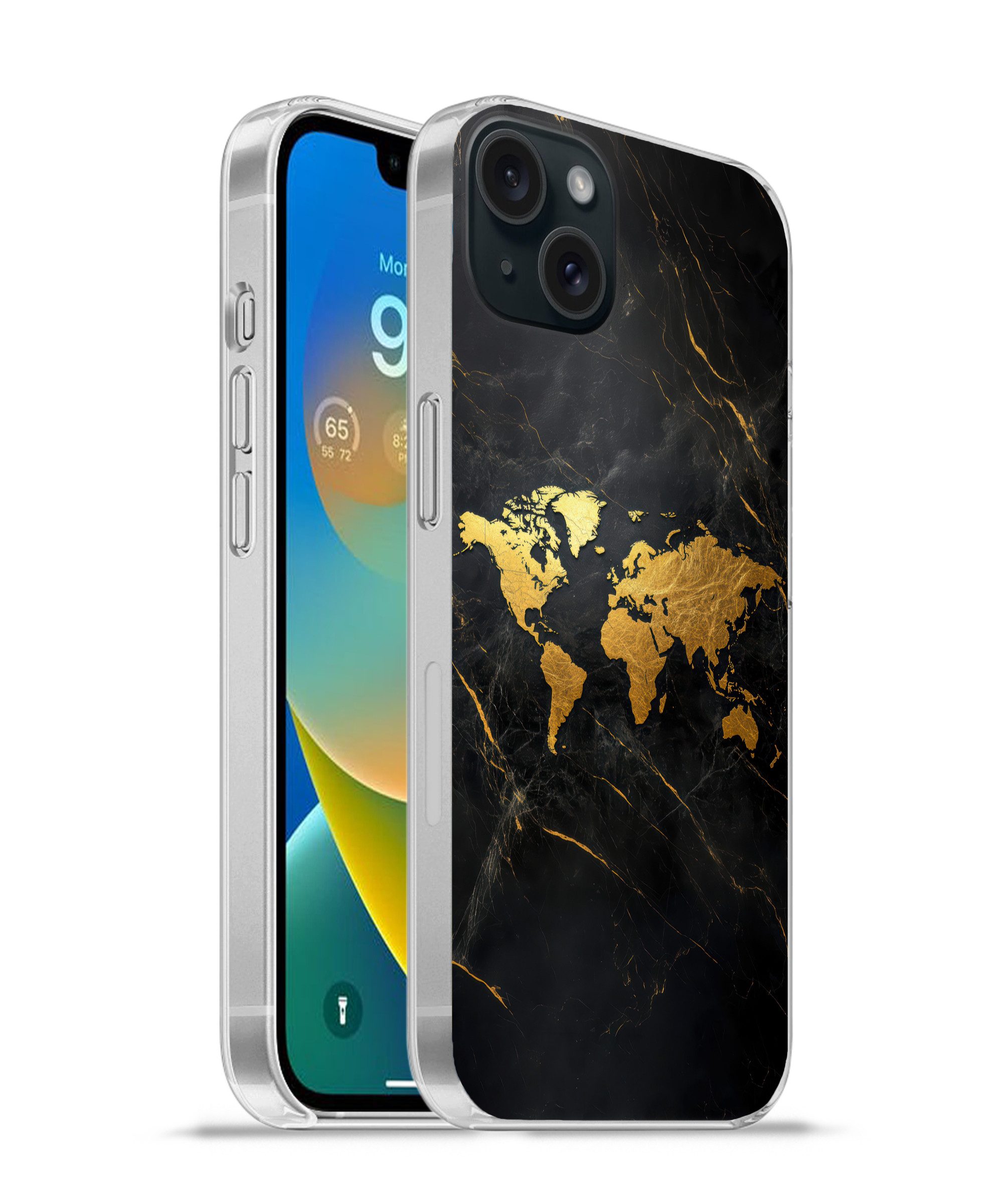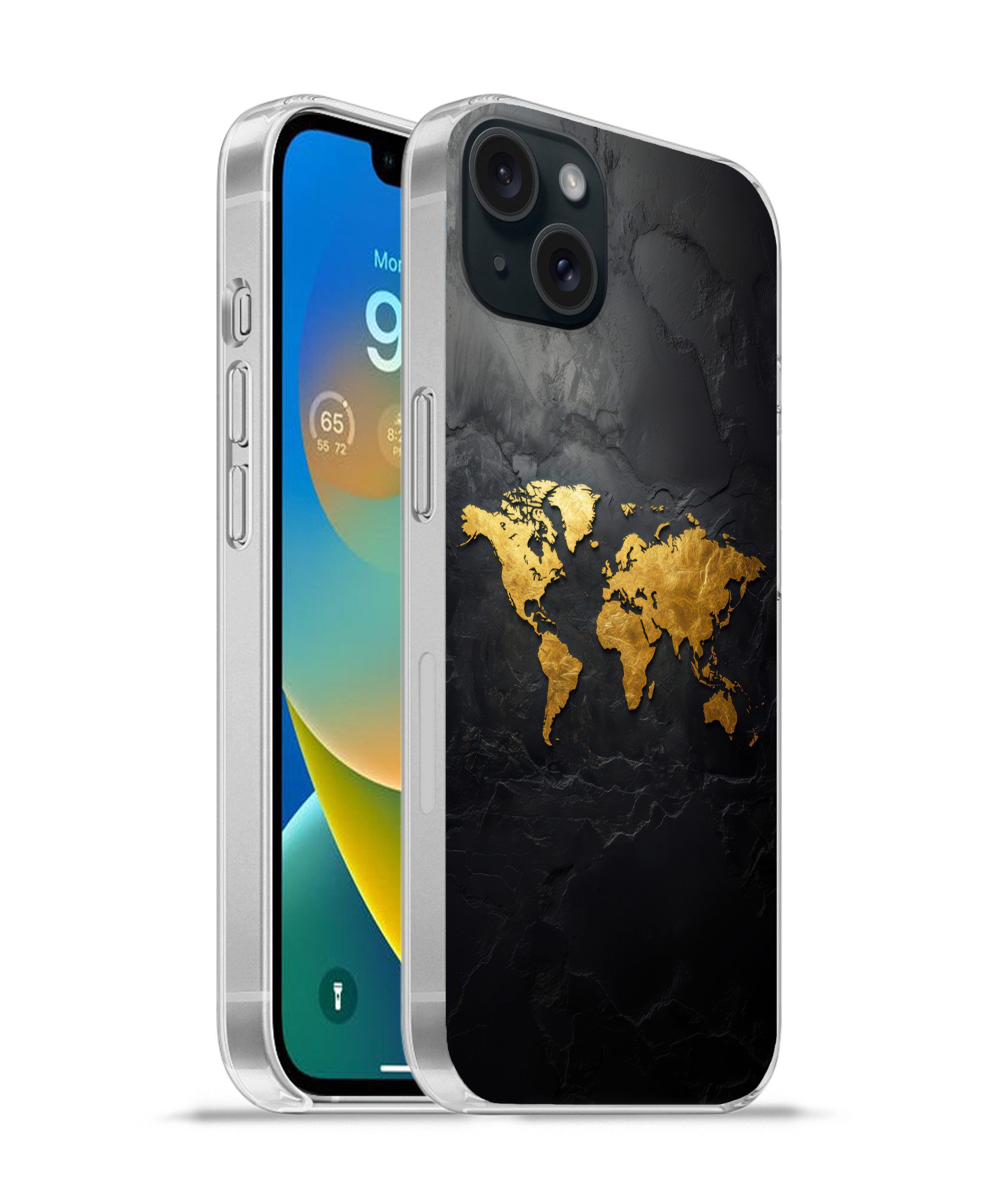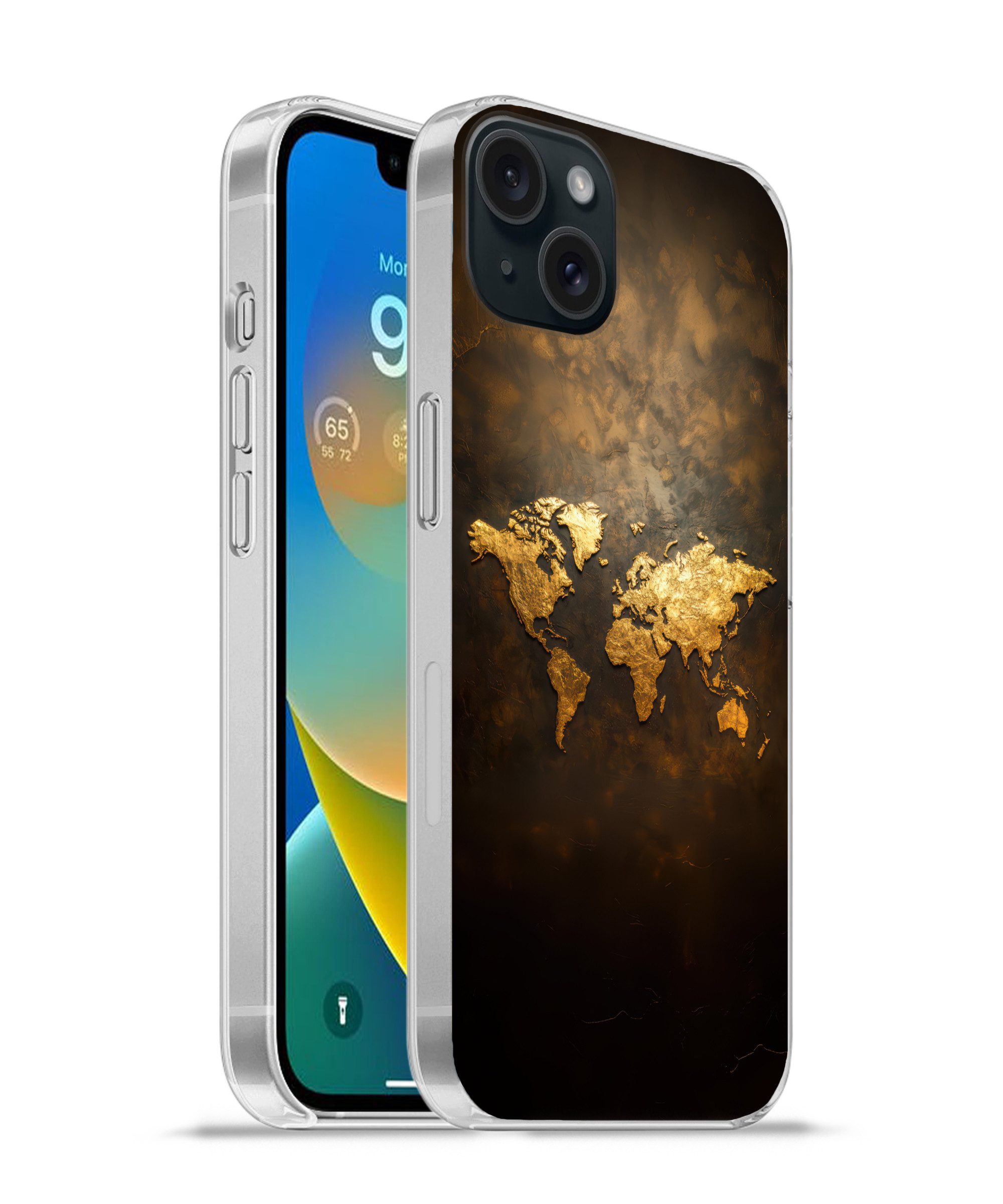 Handyhülle für Apple iPhone 15 Plus Weltkarte - Gold - Rost