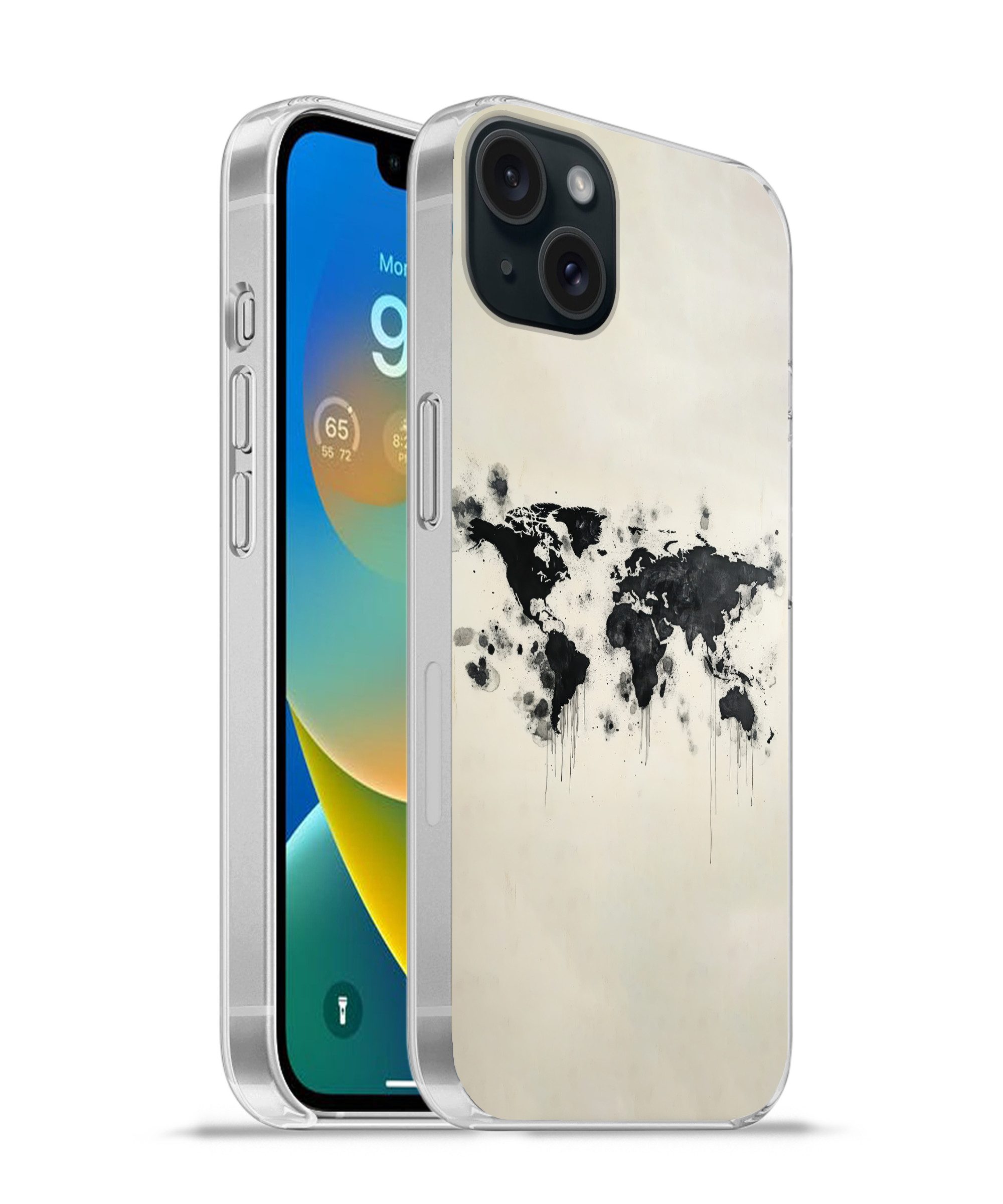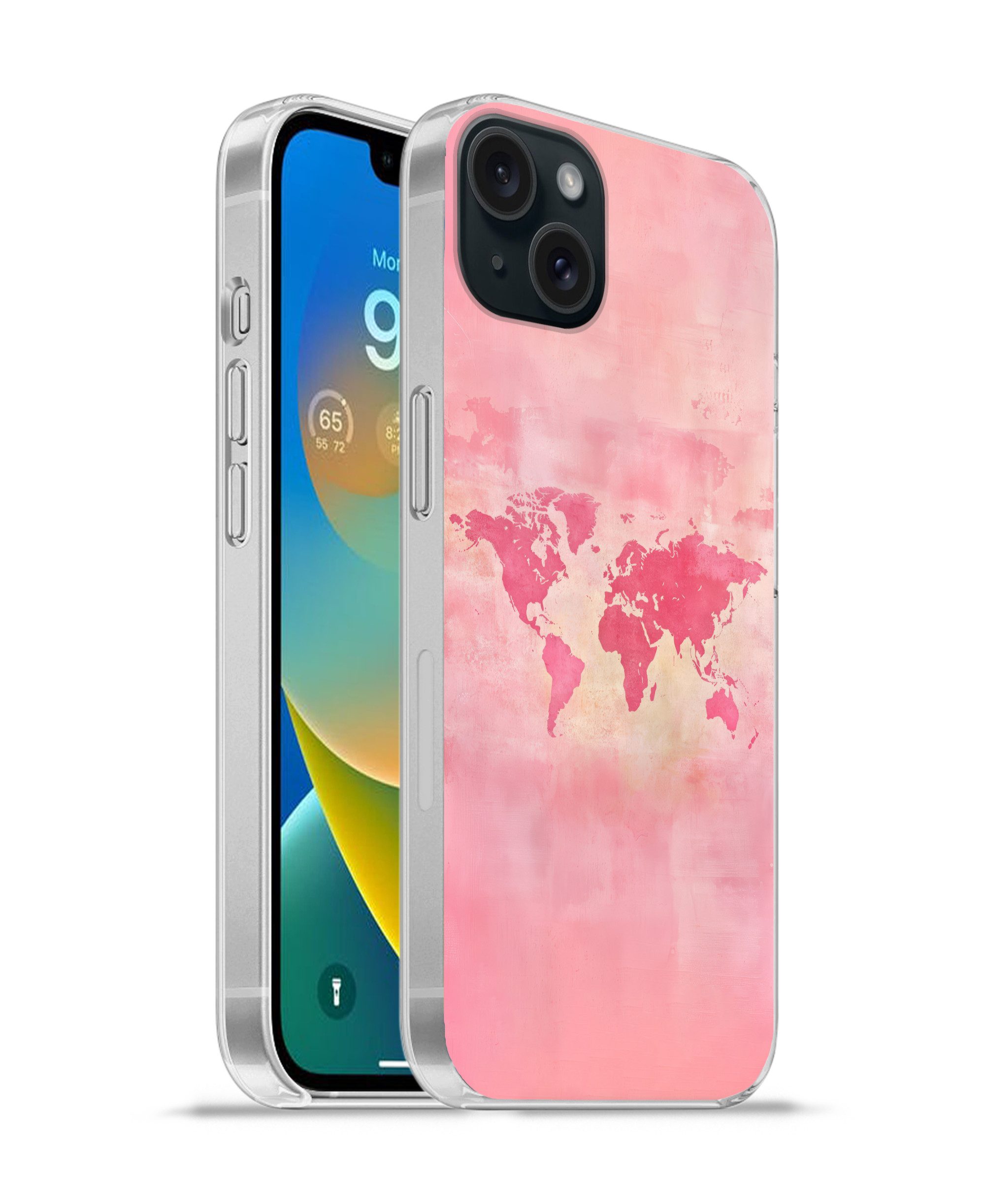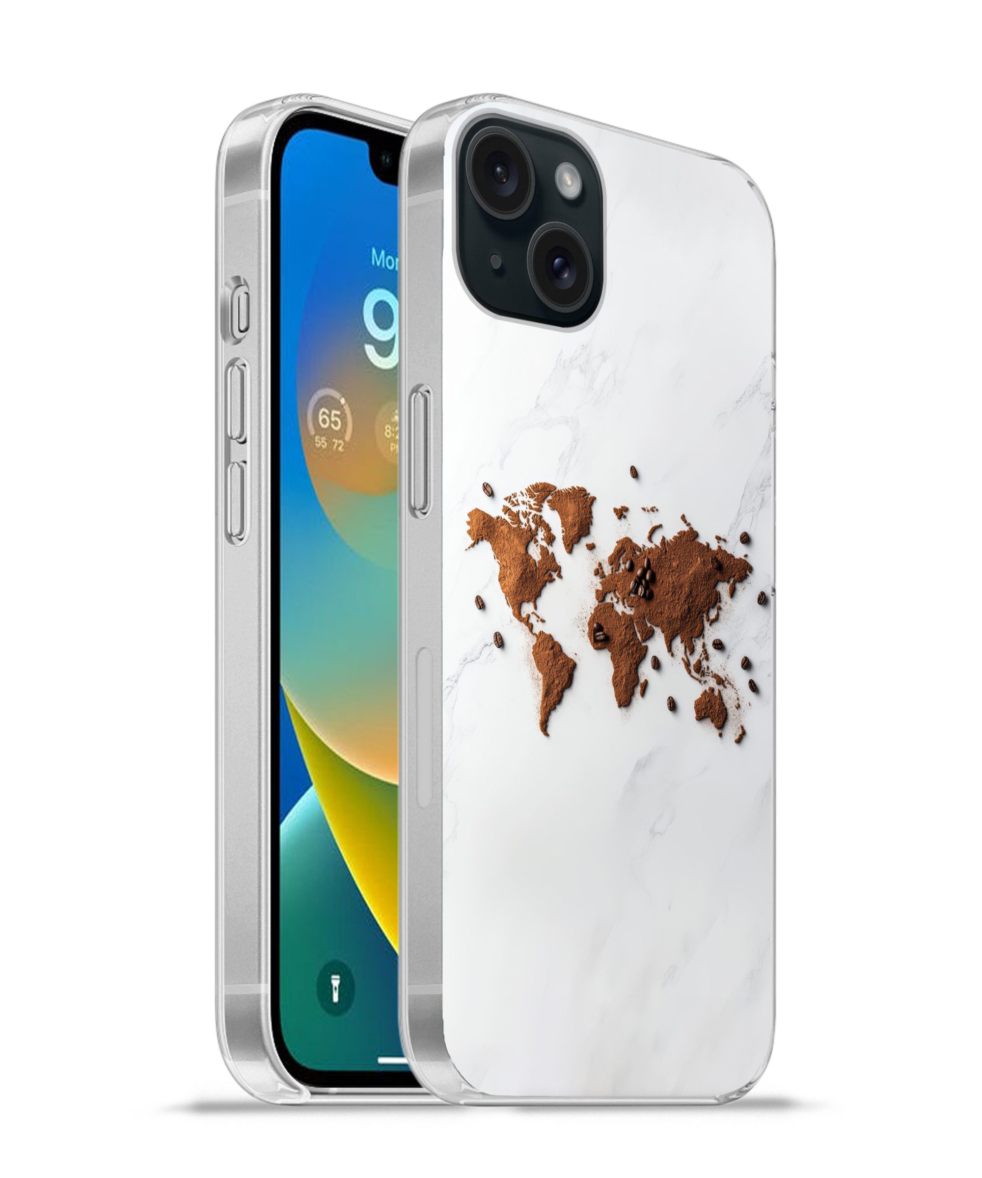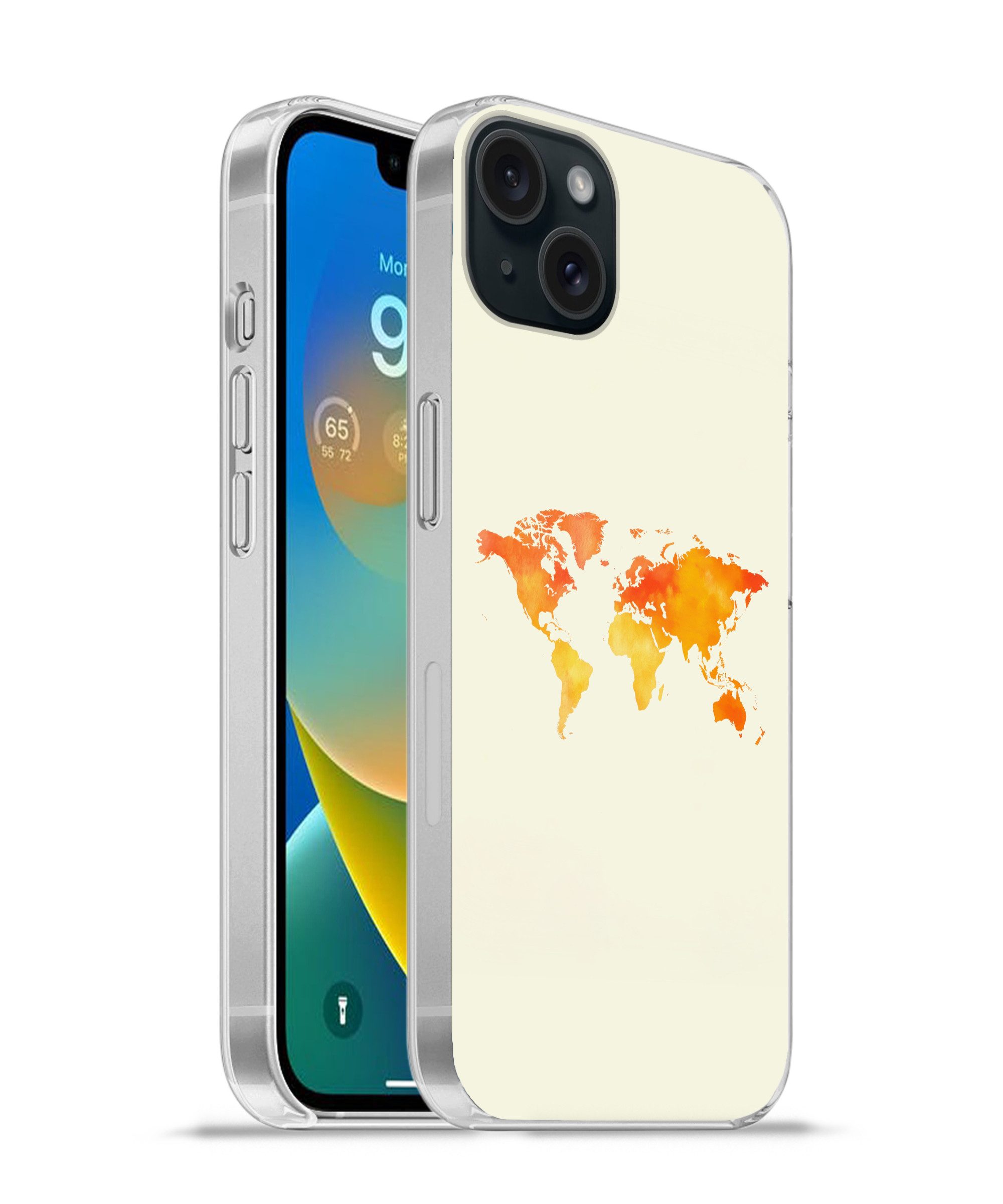 Handyhülle für Apple iPhone 15 Plus Weltkarte - Gold - Rost